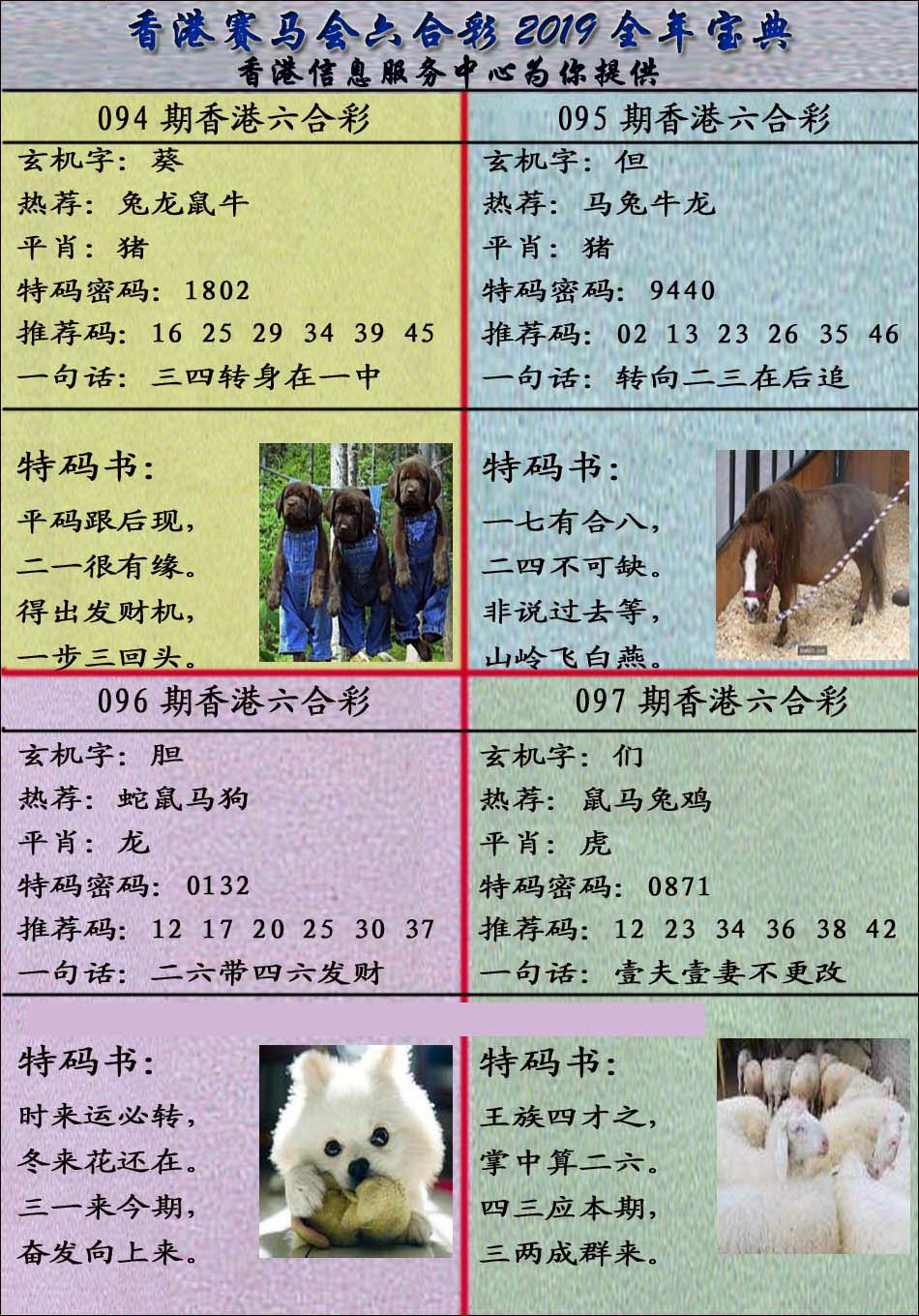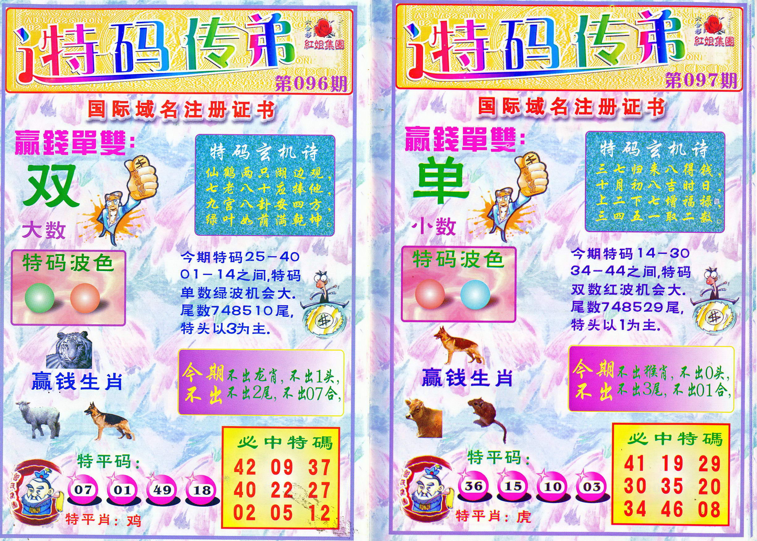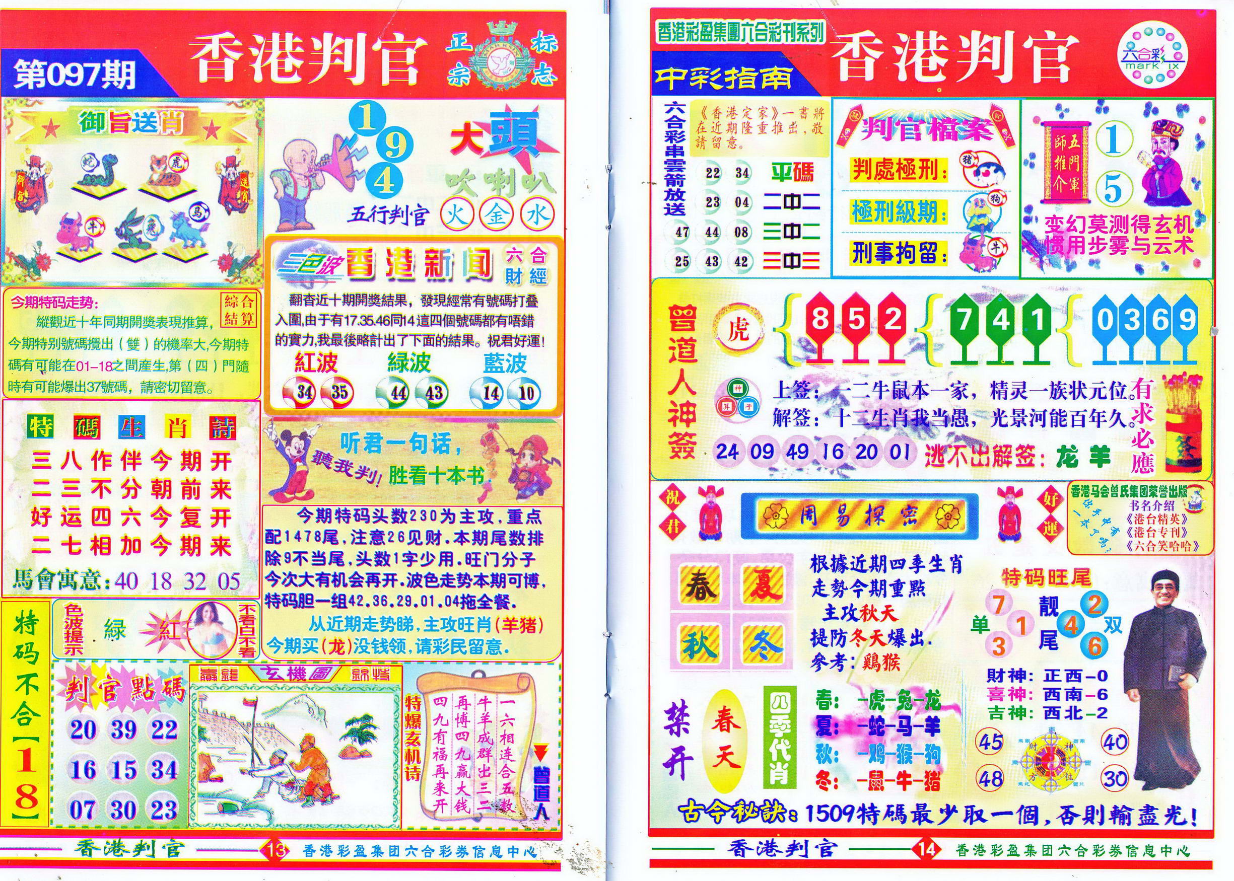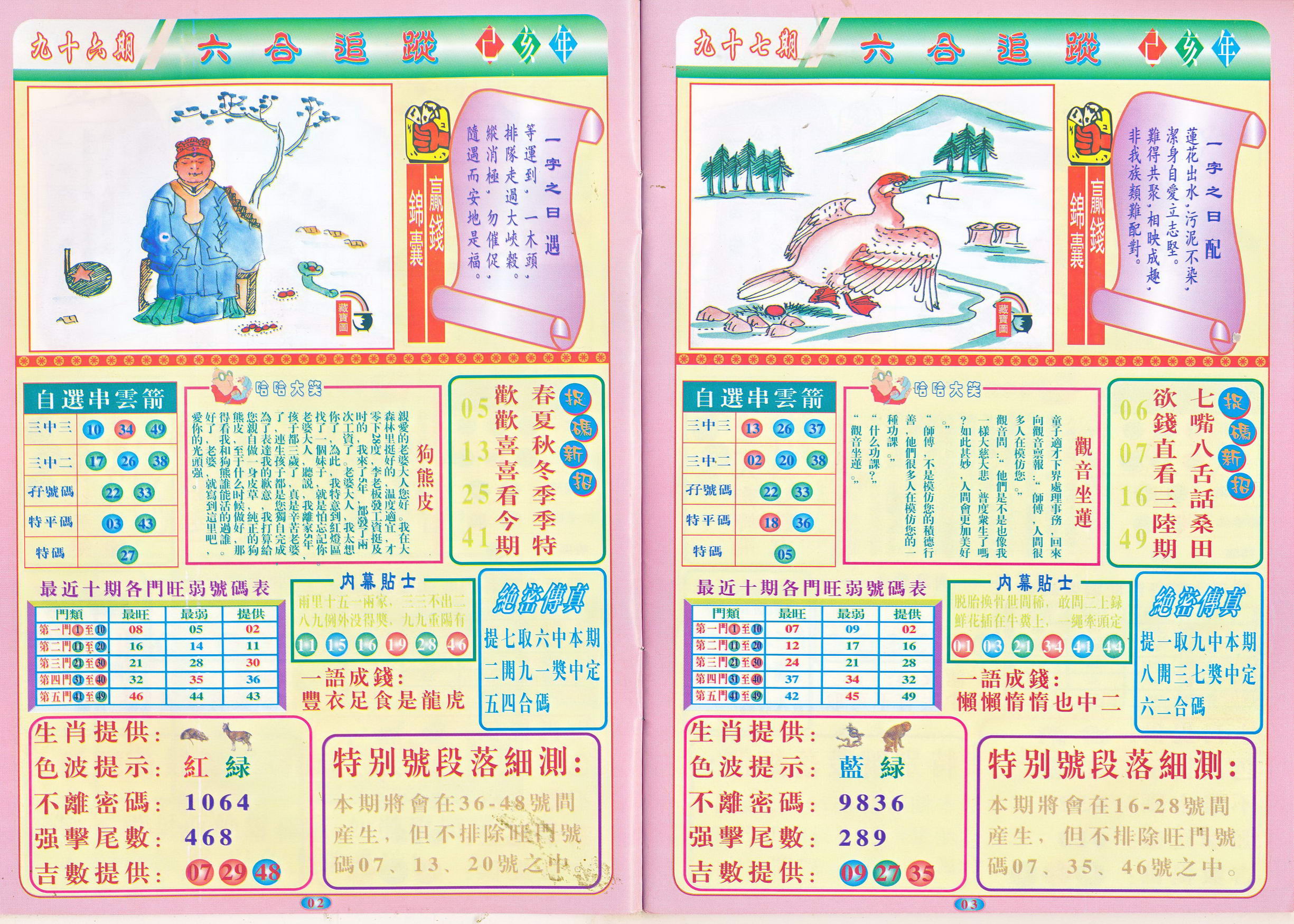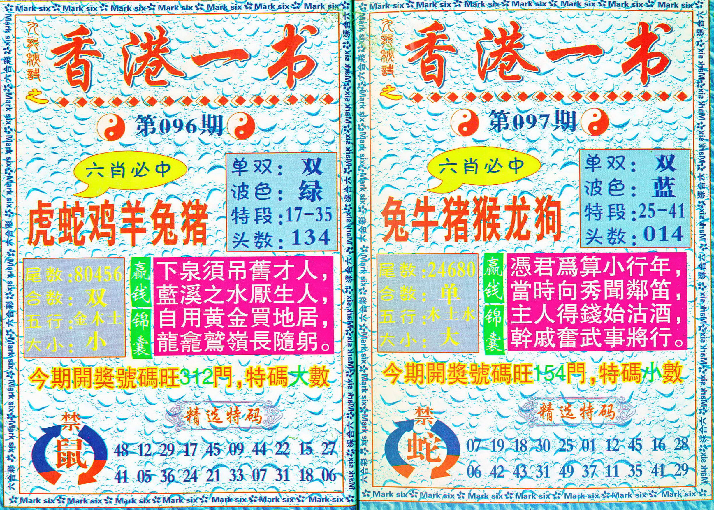 | 1765 | 黄大仙救世报 | 1766 | 香港马会专刊A | 1767 | 香港马会专刊B | 1768 | 赌王心经 |