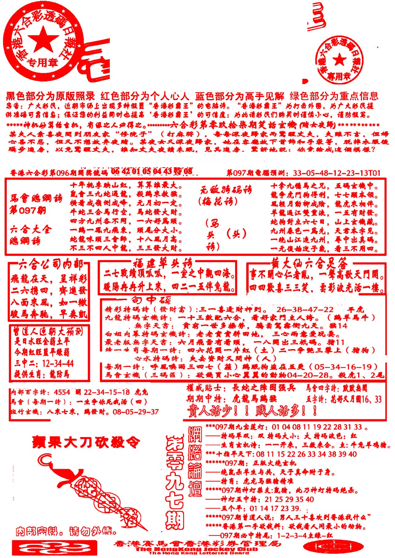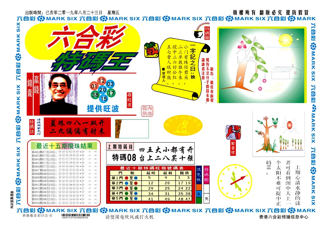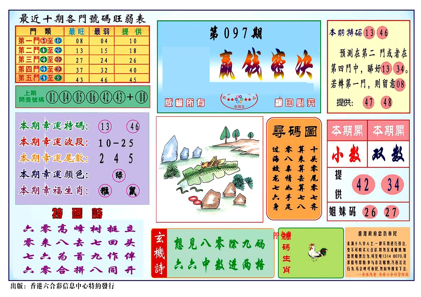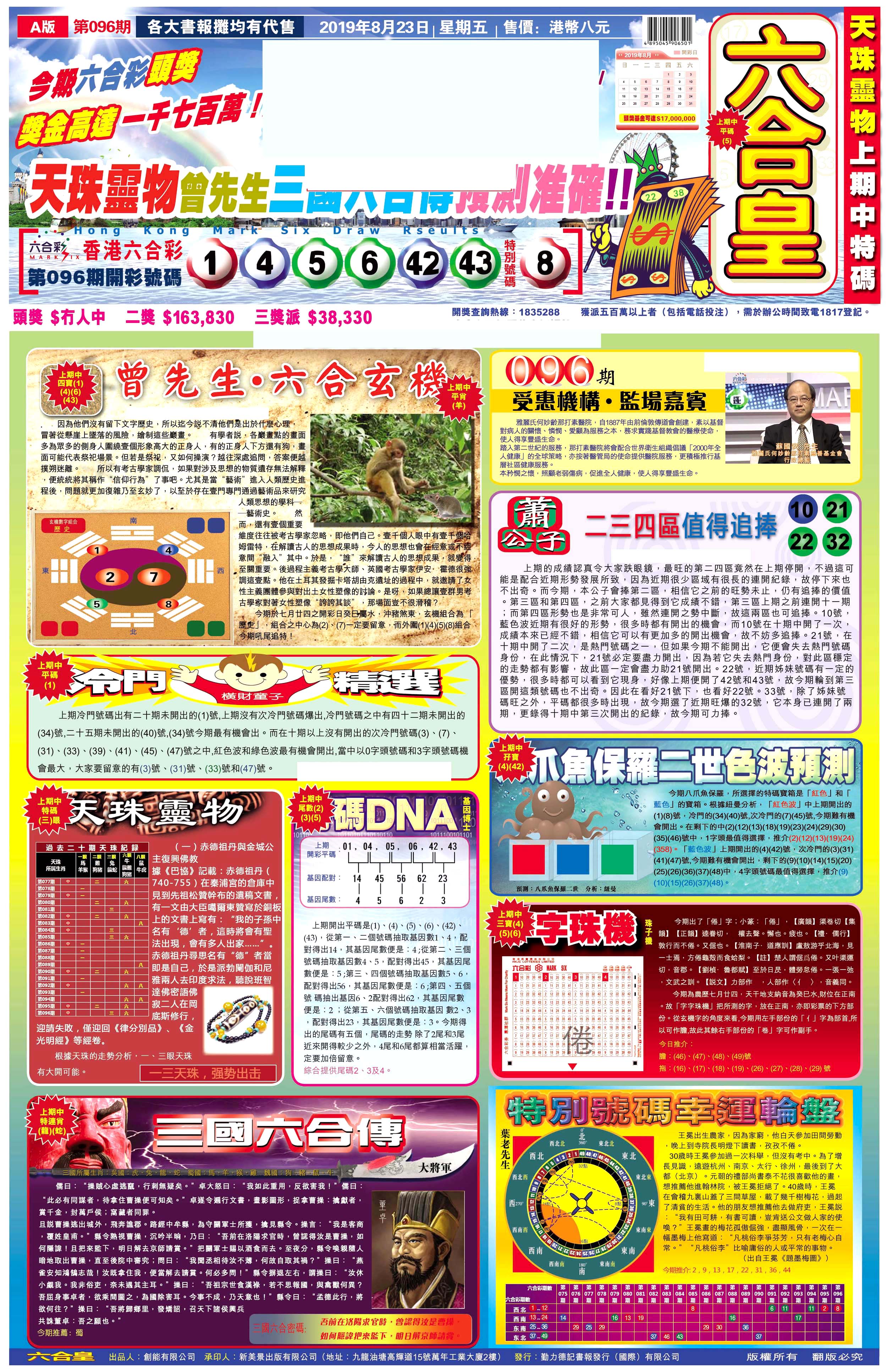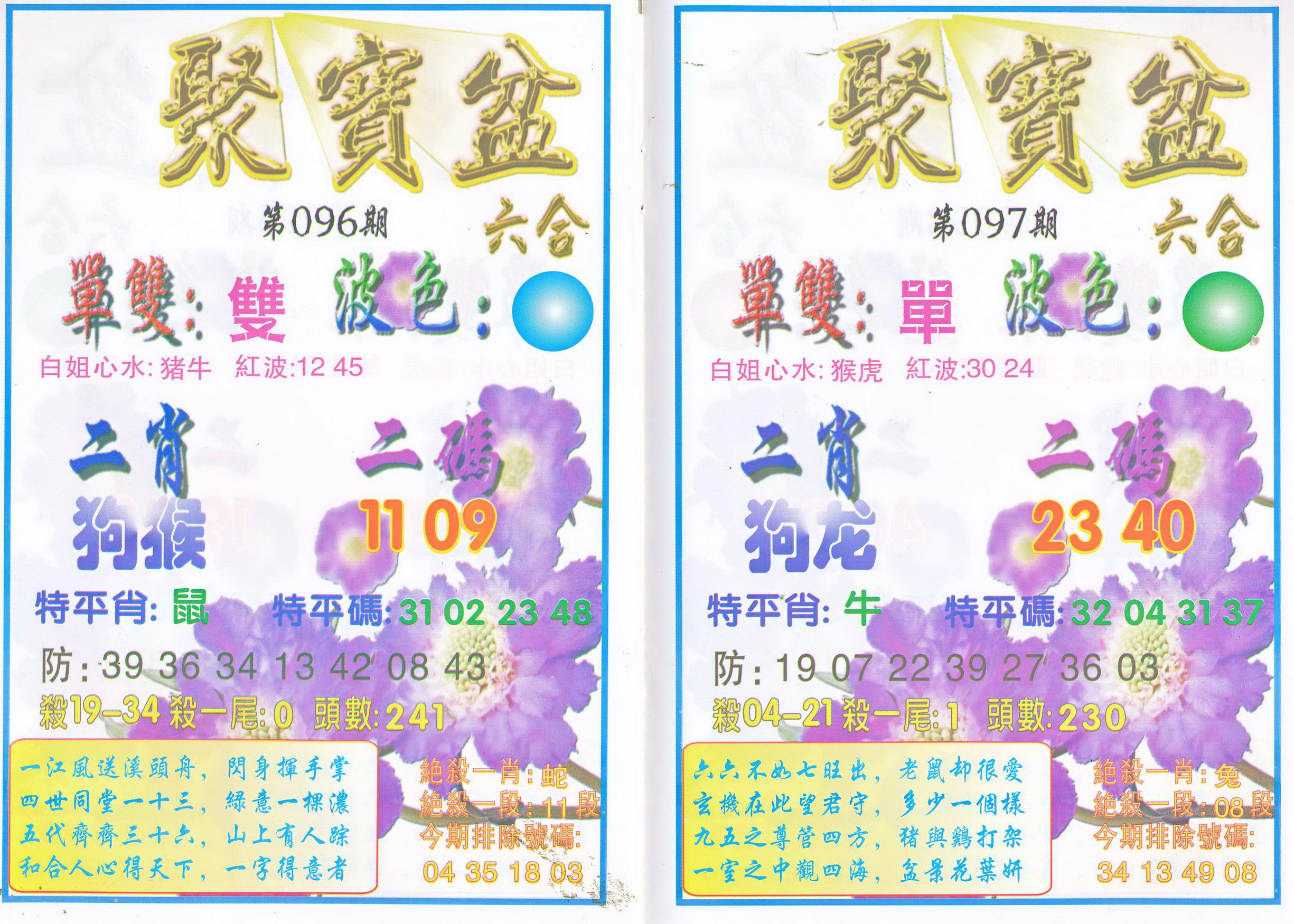 | 1765 | 黄大仙救世报 | 1766 | 香港马会专刊A | 1767 | 香港马会专刊B | 1768 | 赌王心经 |