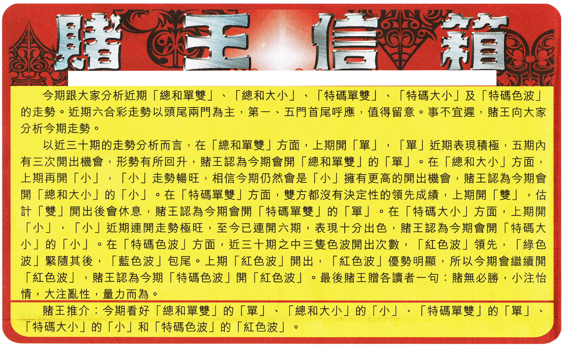 | 211 | 小赌经A | 212 | 小赌经B | 213 | 黄大仙加大版A | 214 | 黄大仙加大版B | |||||||||||||||||||||||||||||||||||||||||||||||||||