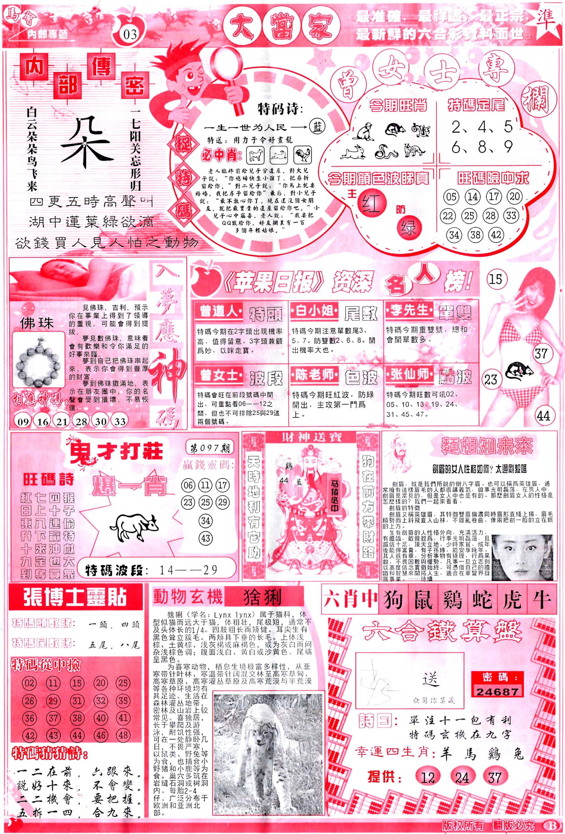 | 233 | 内幕玄机加大版A | 234 | 内幕玄机加大版B | 235 | 六合心经A | 236 | 六合心经B | |||||||||||||||||||||||||||||||||||||||||||||||||||