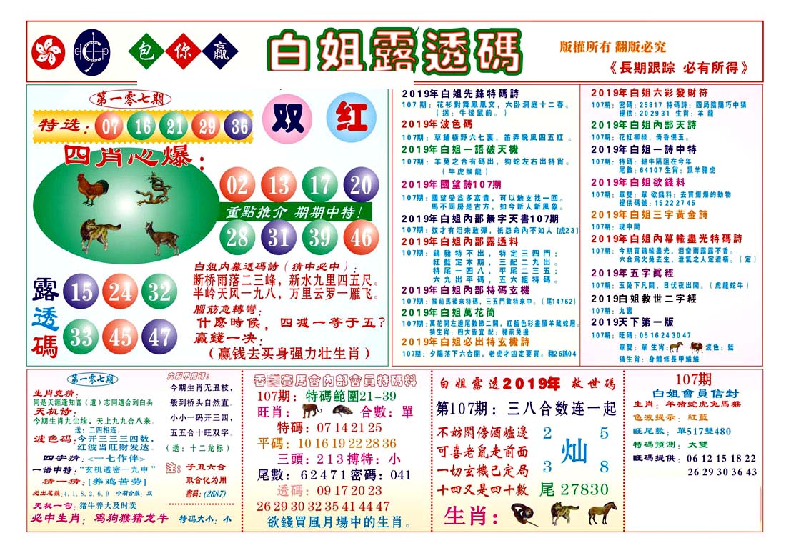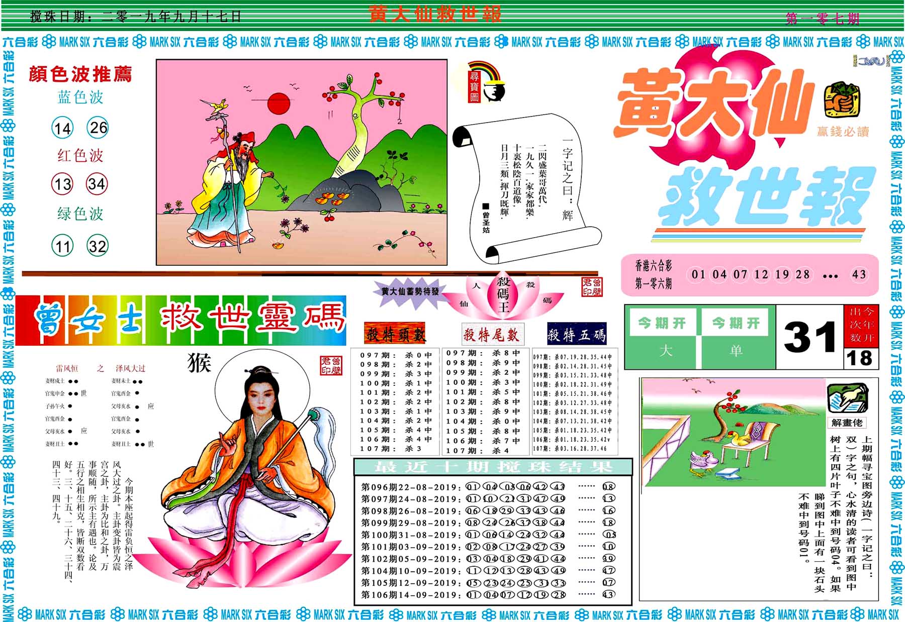 | 019 | 黄大仙救世报A | 020 | 黄大仙救世报B | 021 | 香港黄大仙报A | 022 | 香港黄大仙报B | |||||||||||||||||||||||||||||||||||||||||||||||||||