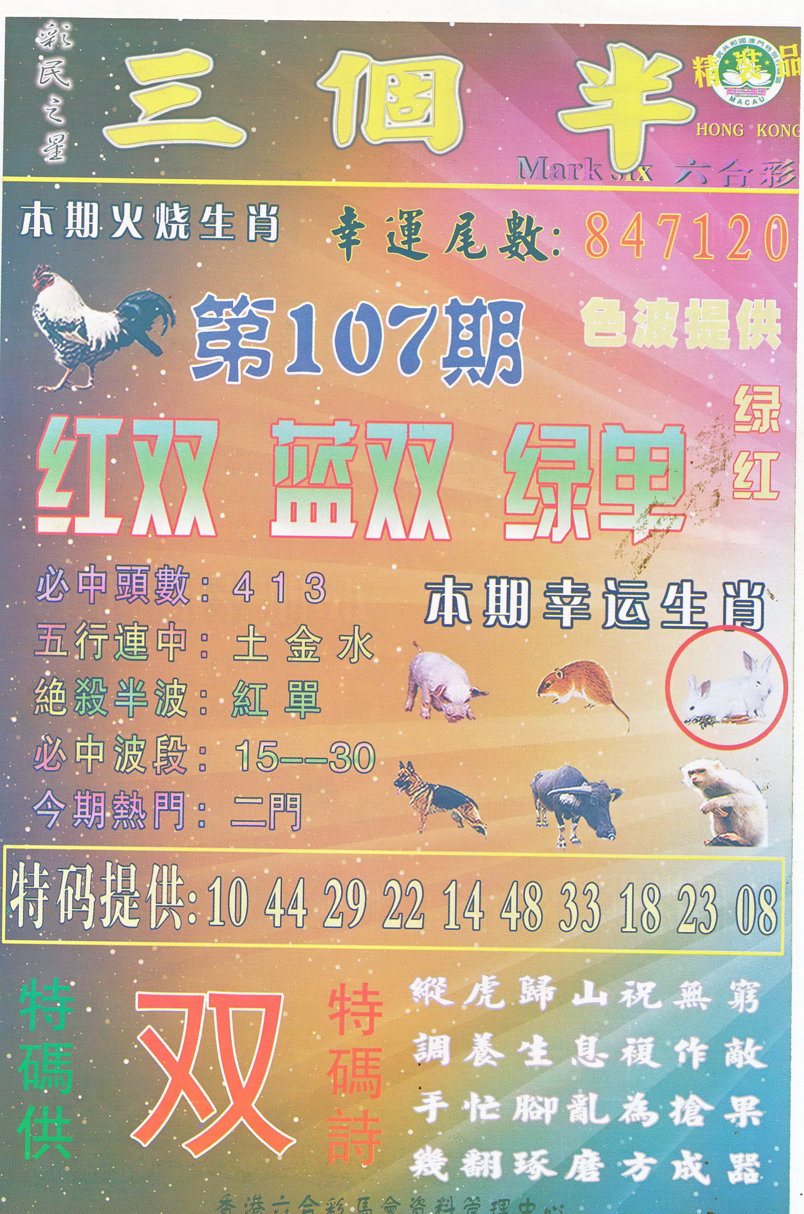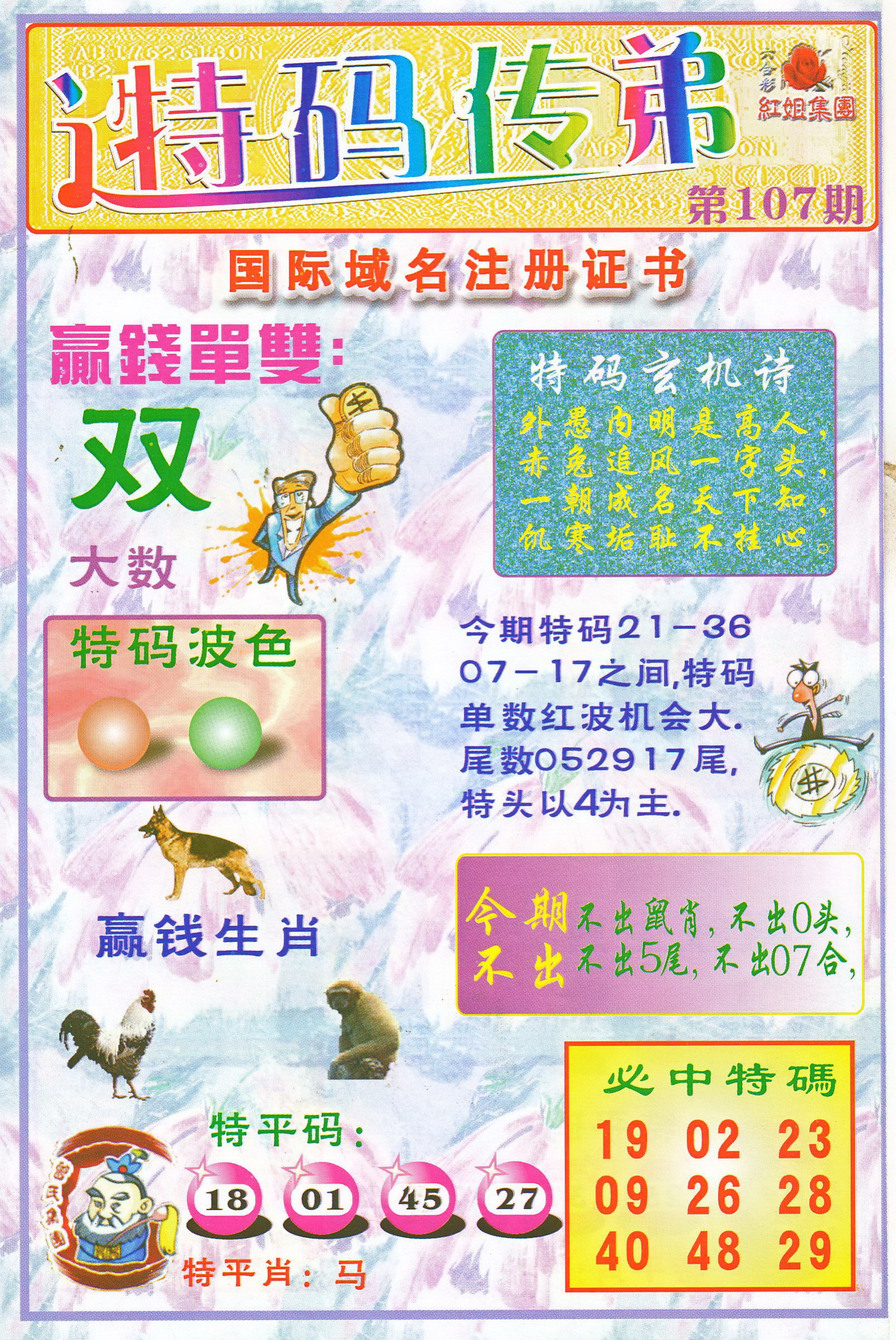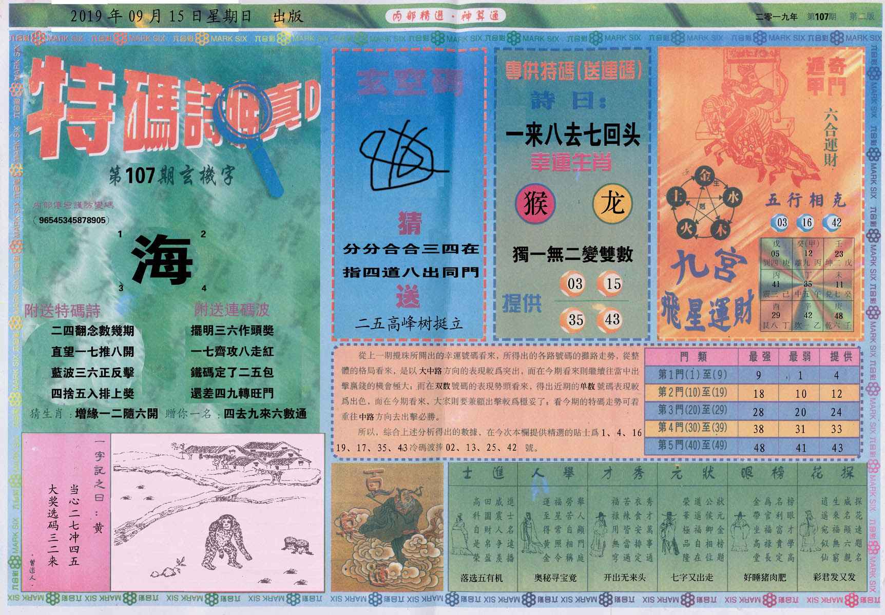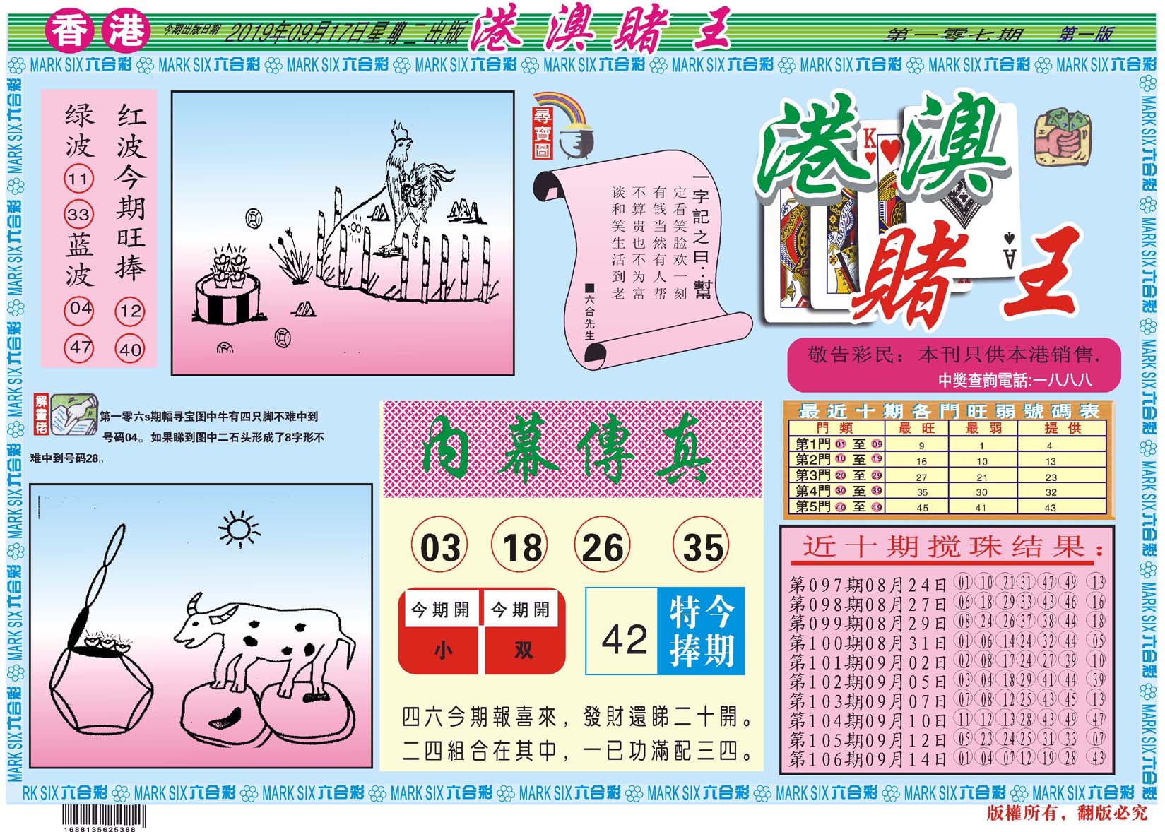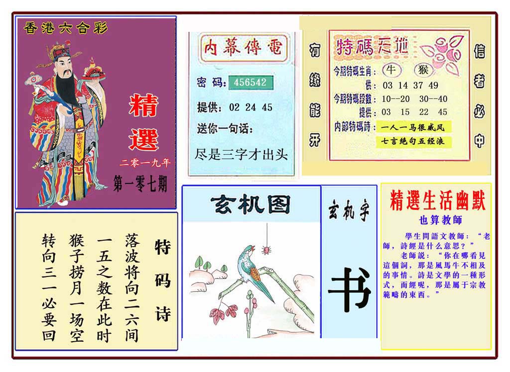 | 1765 | 黄大仙救世报 | 1766 | 香港马会专刊A | 1767 | 香港马会专刊B | 1768 | 赌王心经 |
