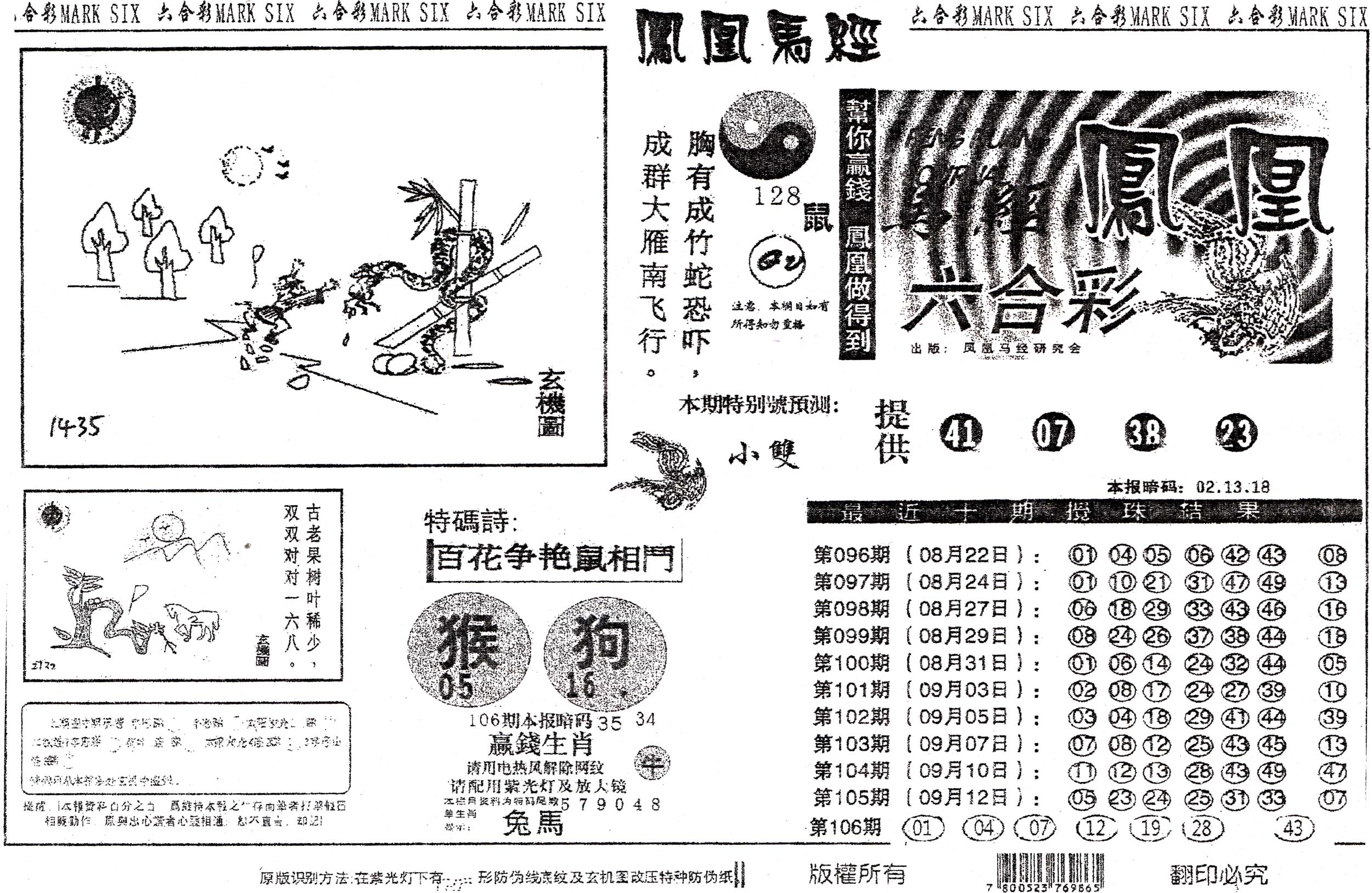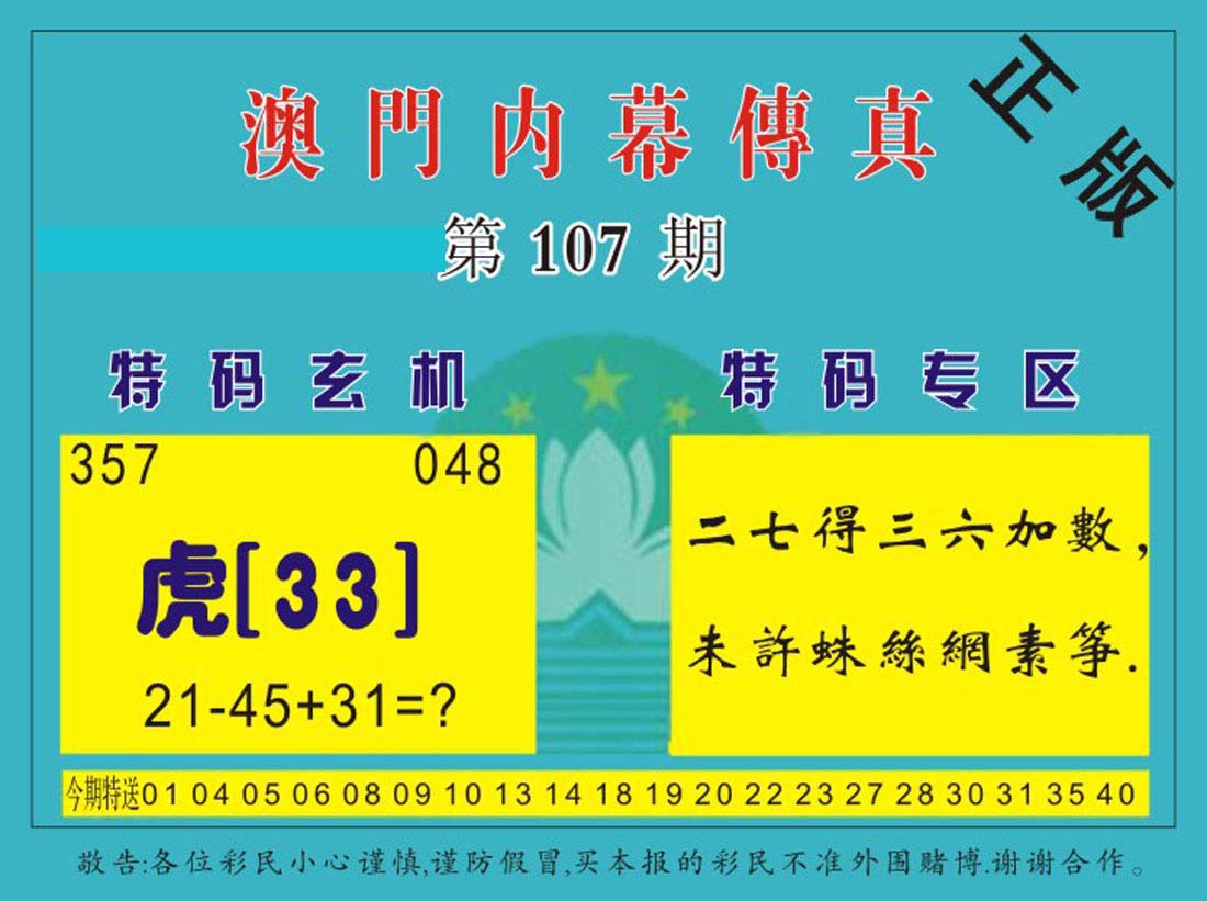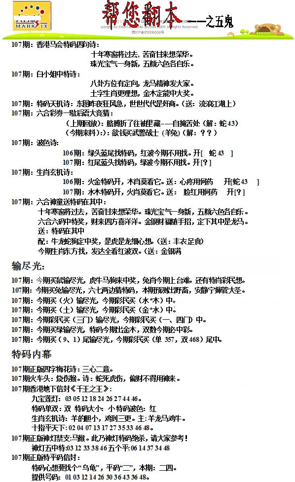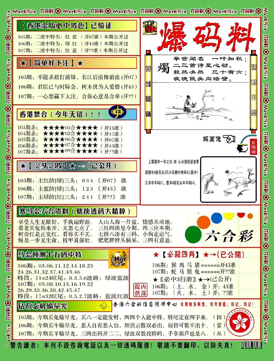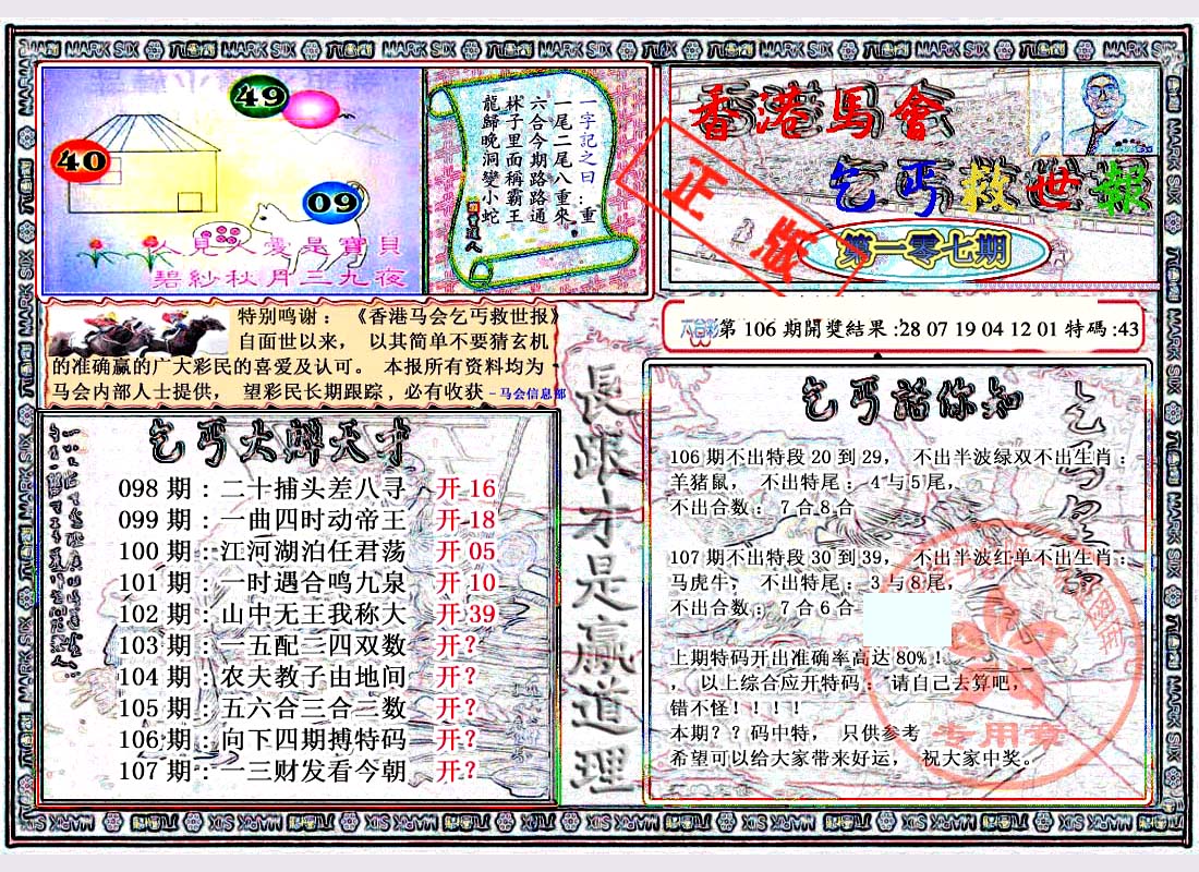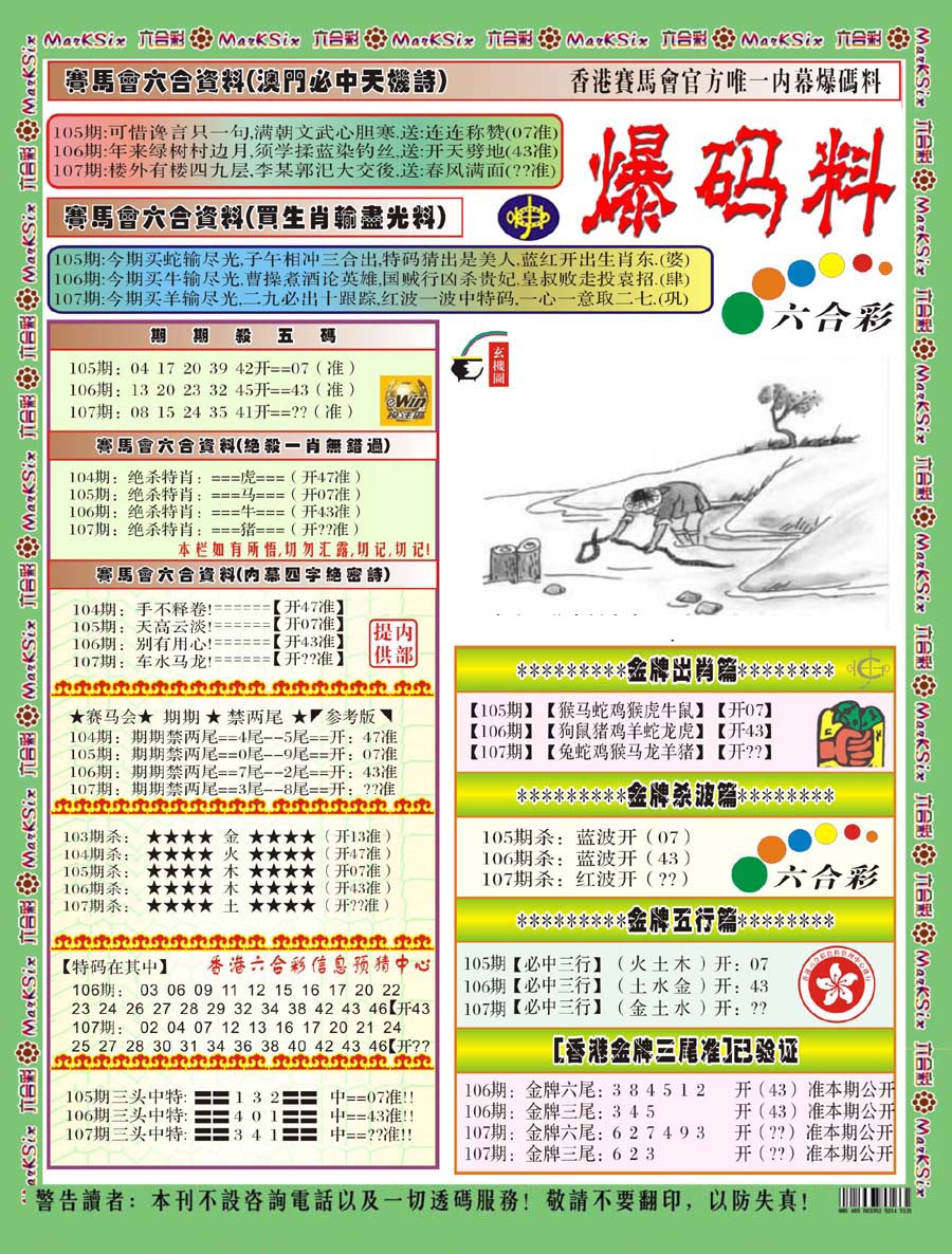 | 1336 | 统一玄机报 | 1337 | 正宗青龙五鬼报A | 1338 | 正宗青龙五鬼报B | 1339 | 美女六肖报 | |||||||||||||||||||||||||||||||||||||||||||||||||||