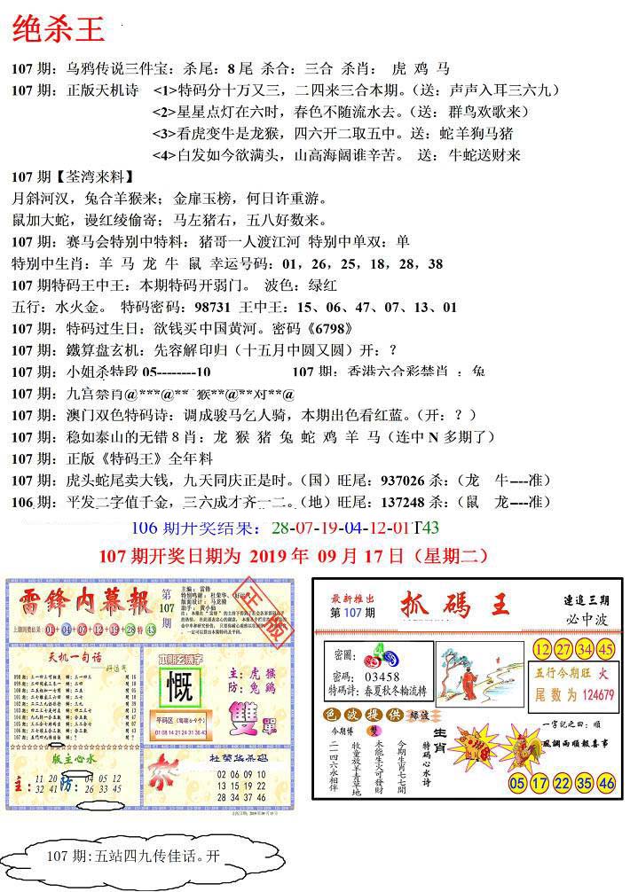 | 1659 | 另二代孔明报 | 1660 | 马经平特图 | 1661 | 杀杀杀A | 1662 | 杀杀杀B | |||||||||||||||||||||||||||||||||||||||||||||||||||