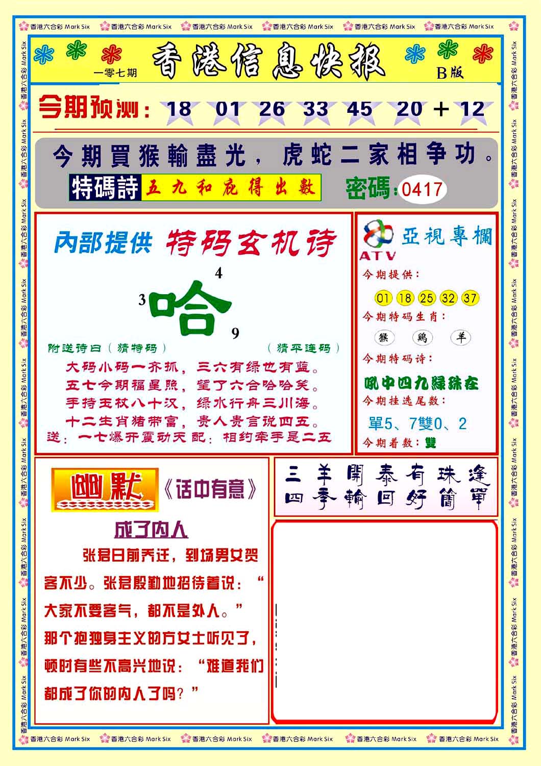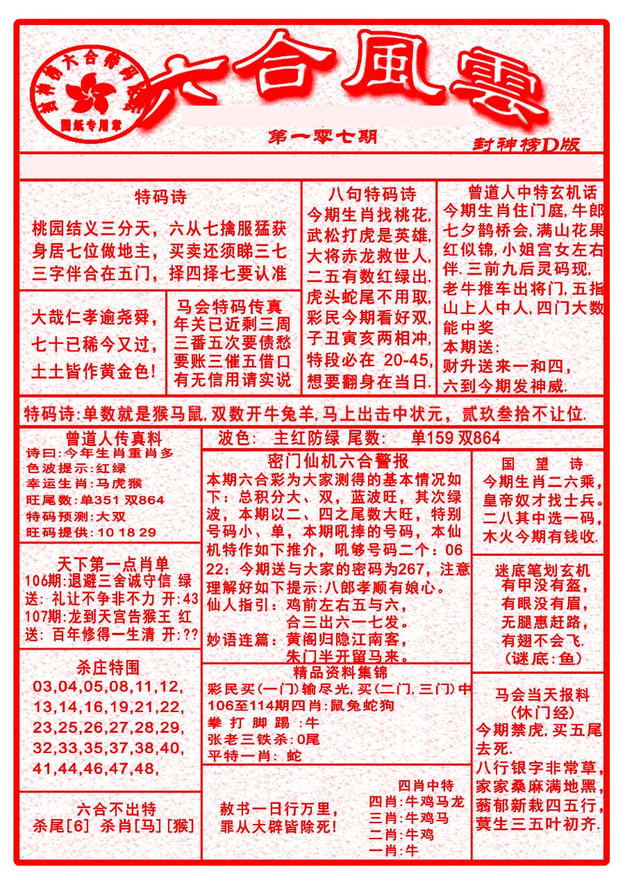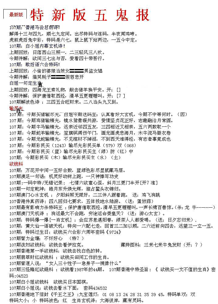 | 063 | 六合禅机A | 064 | 六合禅机B | 069 | 特 新 报A | 070 | 特 新 报B | |||||||||||||||||||||||||||||||||||||||||||||||||||