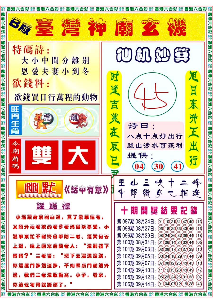 | 065 | 香港神算 | 066 | 澳门三合图 | 067 | 台湾神算通 | 068 | 六彩阴阳图 | |||||||||||||||||||||||||||||||||||||||||||||||||||