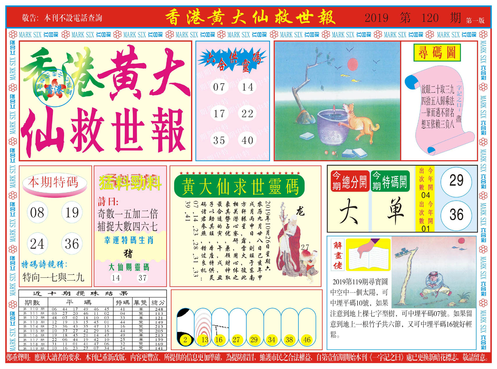 | 019 | 黄大仙救世报A | 020 | 黄大仙救世报B | 021 | 香港黄大仙报A | 022 | 香港黄大仙报B | |||||||||||||||||||||||||||||||||||||||||||||||||||