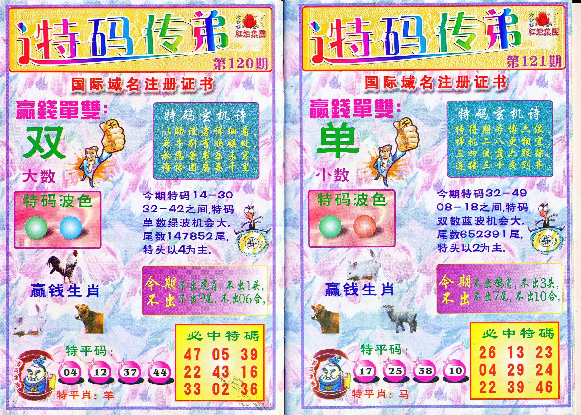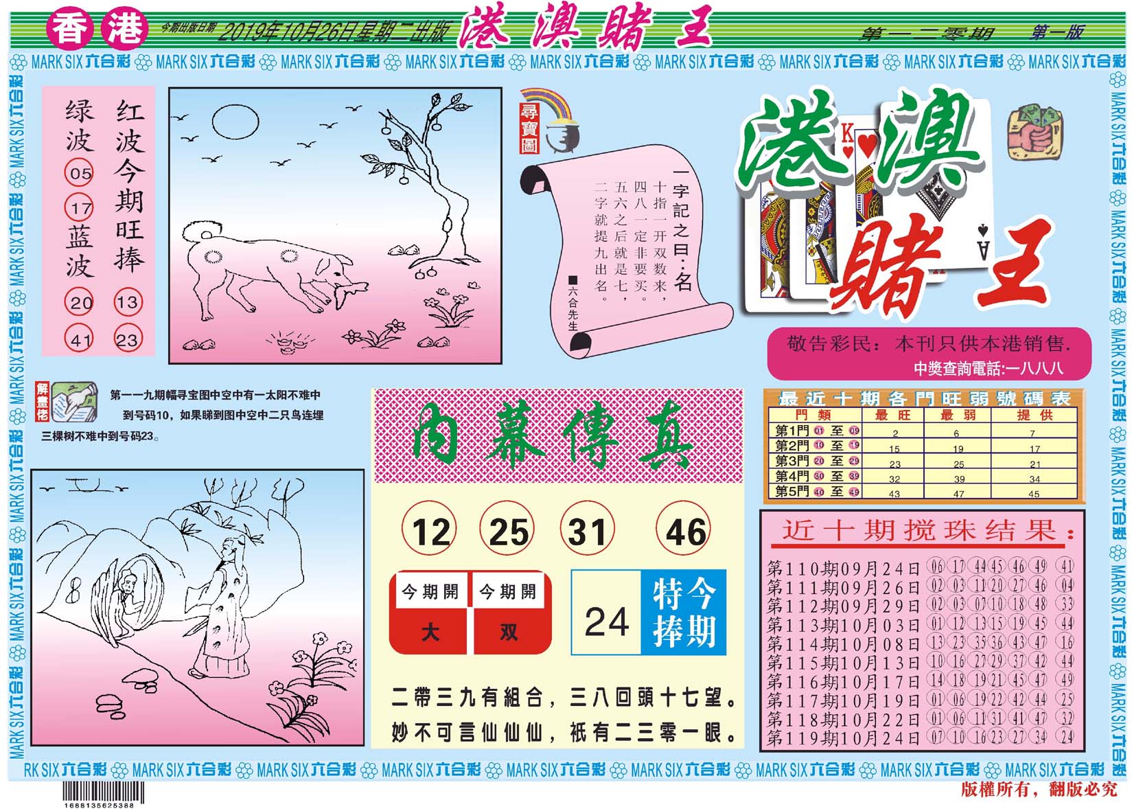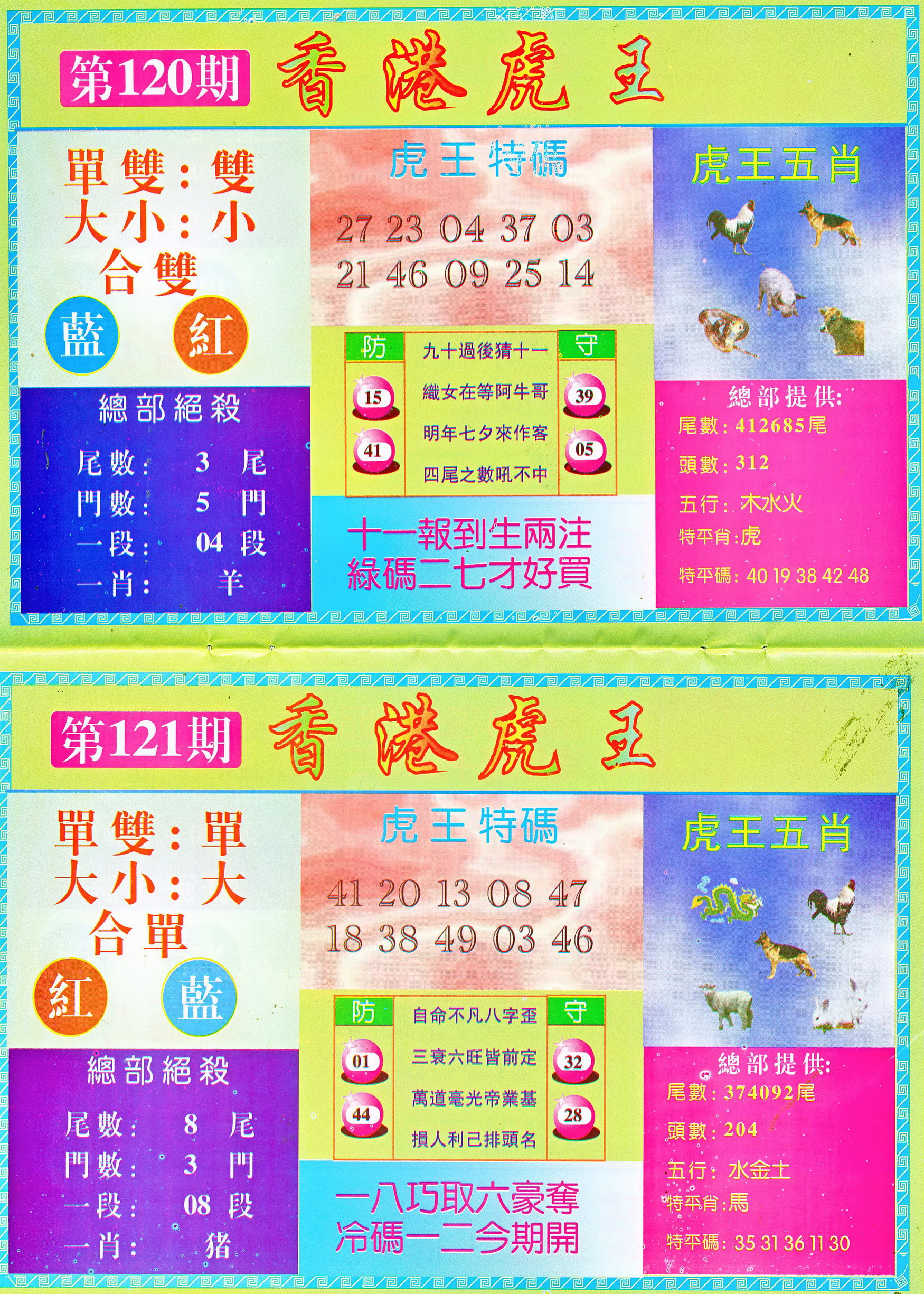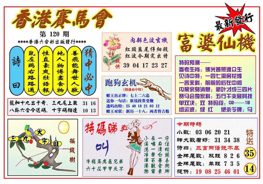 | 1765 | 黄大仙救世报 | 1766 | 香港马会专刊A | 1767 | 香港马会专刊B | 1768 | 赌王心经 |