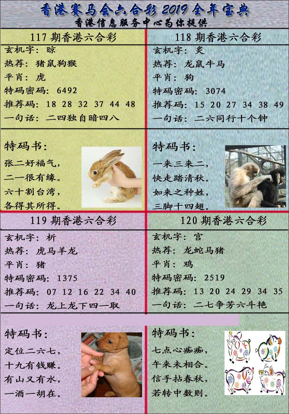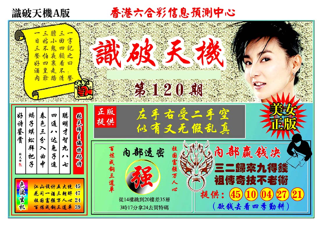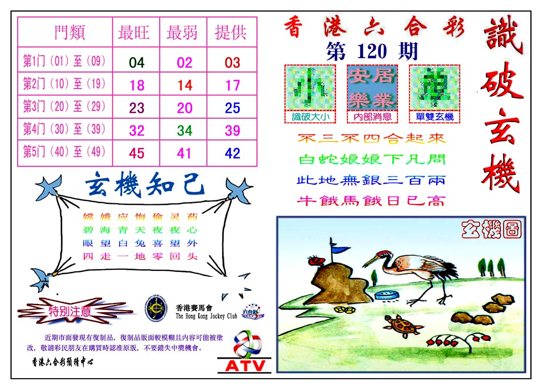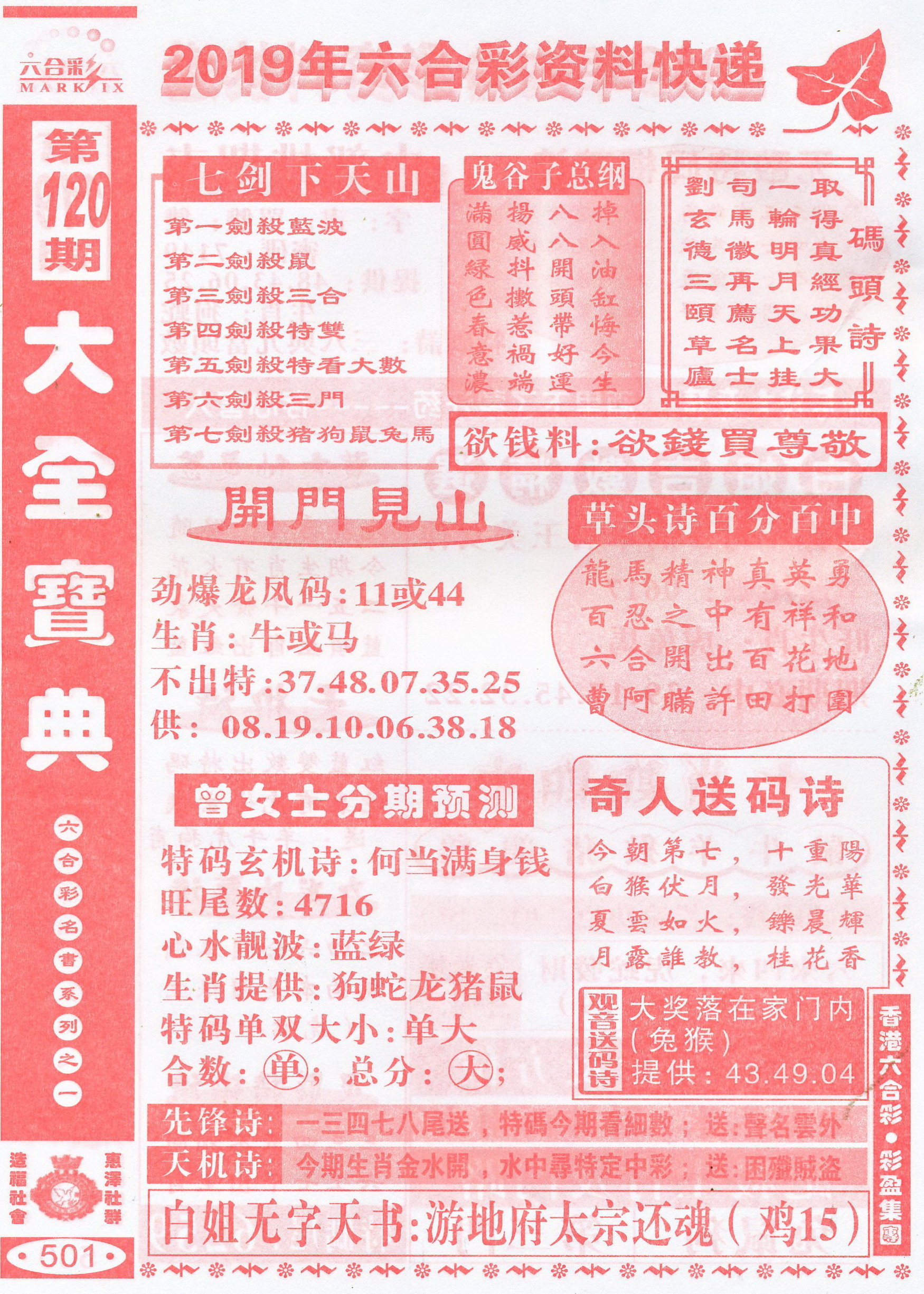 | 1765 | 黄大仙救世报 | 1766 | 香港马会专刊A | 1767 | 香港马会专刊B | 1768 | 赌王心经 |