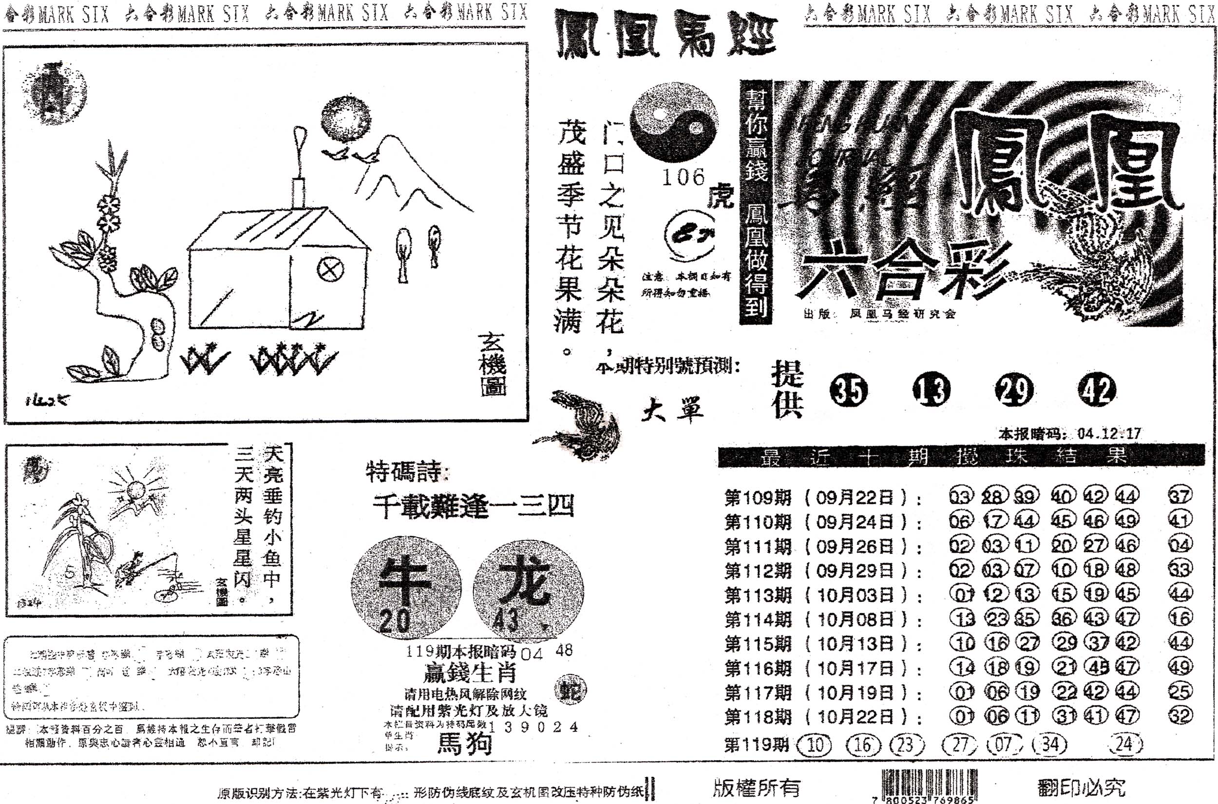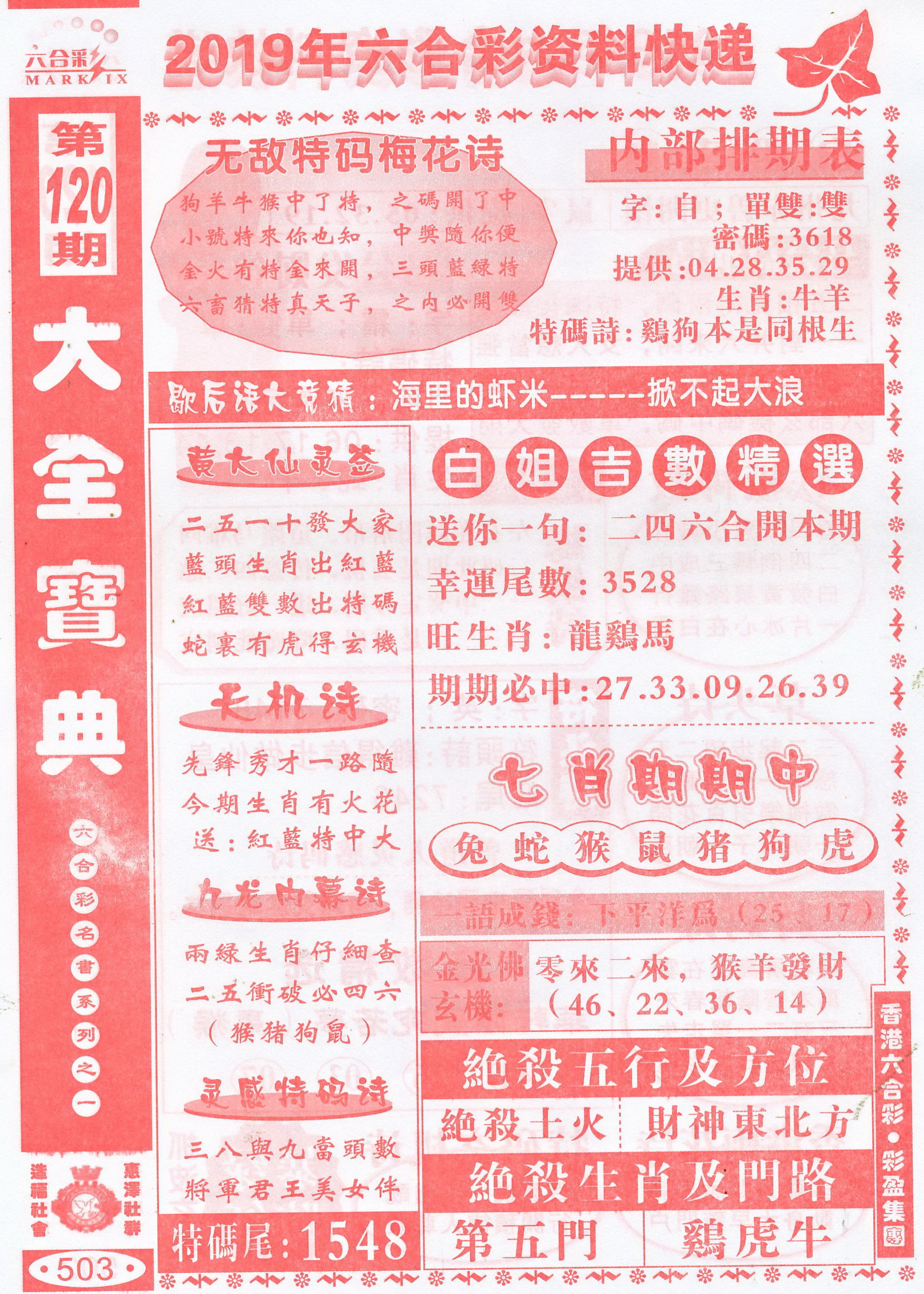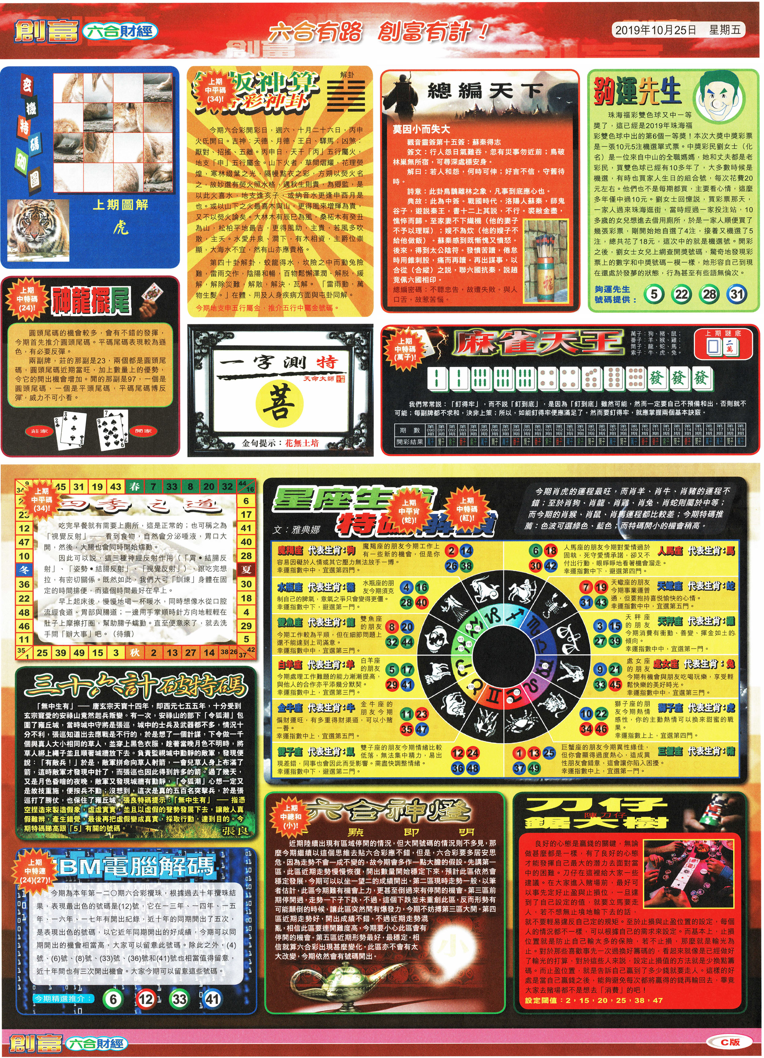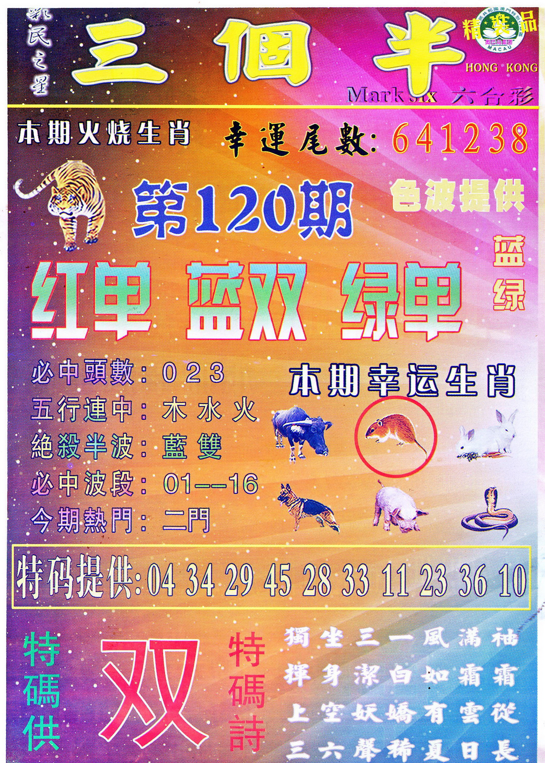 | 1765 | 黄大仙救世报 | 1766 | 香港马会专刊A | 1767 | 香港马会专刊B | 1768 | 赌王心经 |