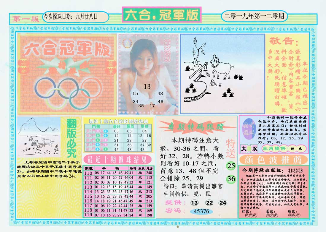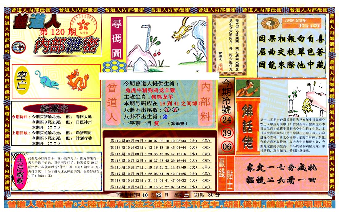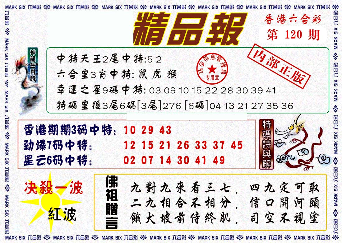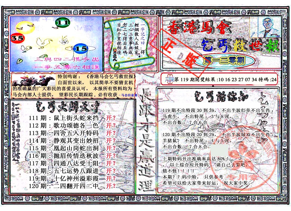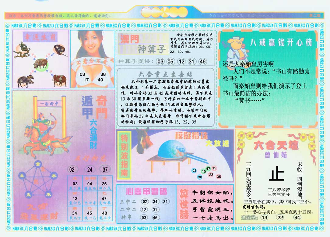 | 1336 | 统一玄机报 | 1337 | 正宗青龙五鬼报A | 1338 | 正宗青龙五鬼报B | 1339 | 美女六肖报 | |||||||||||||||||||||||||||||||||||||||||||||||||||