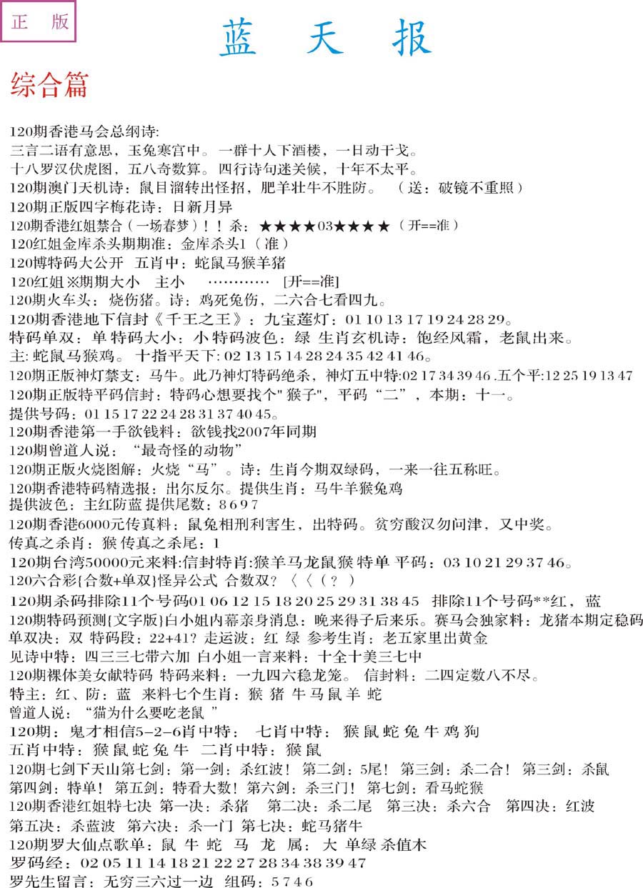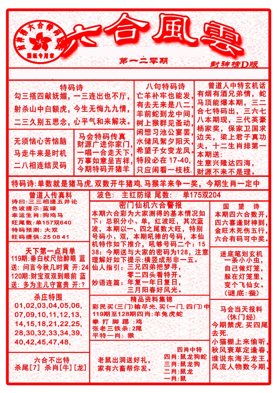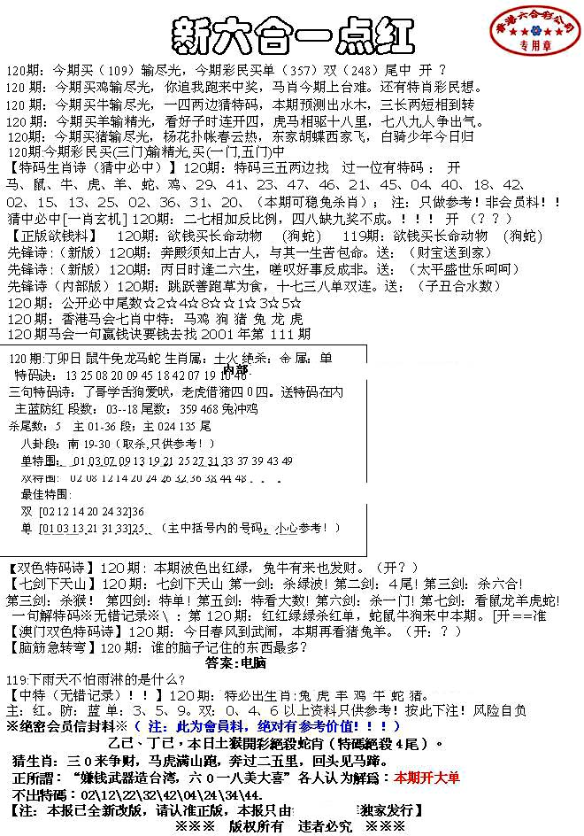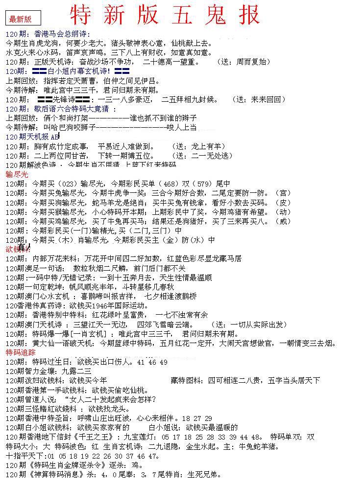 | 063 | 六合禅机A | 064 | 六合禅机B | 069 | 特 新 报A | 070 | 特 新 报B | |||||||||||||||||||||||||||||||||||||||||||||||||||