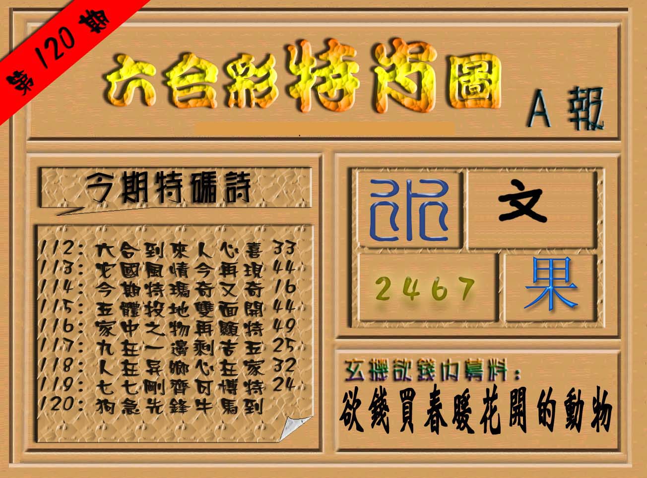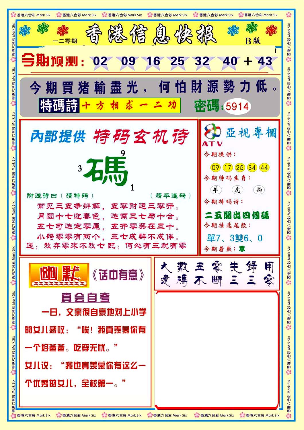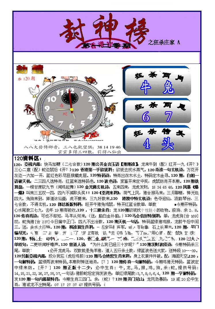 | 063 | 六合禅机A | 064 | 六合禅机B | 069 | 特 新 报A | 070 | 特 新 报B | |||||||||||||||||||||||||||||||||||||||||||||||||||