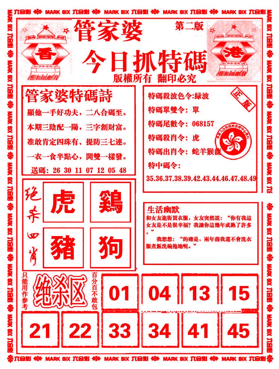 | 1700 | 冚家富贵B | 1701 | 管家婆财经版 | 1702 | 管家婆新传密 | 1703 | 香港三八婆密报 | |||||||||||||||||||||||||||||||||||||||||||||||||||