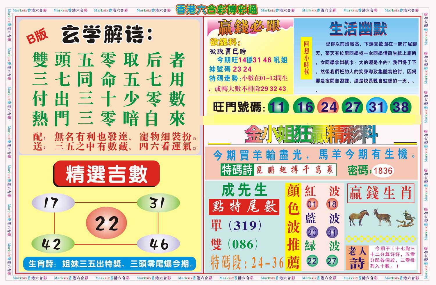 | 840 | 白小姐马经 | 841 | 白姐一点通 | 842 | 帖士玄机A | 843 | 帖士玄机B | |||||||||||||||||||||||||||||||||||||||||||||||||||
