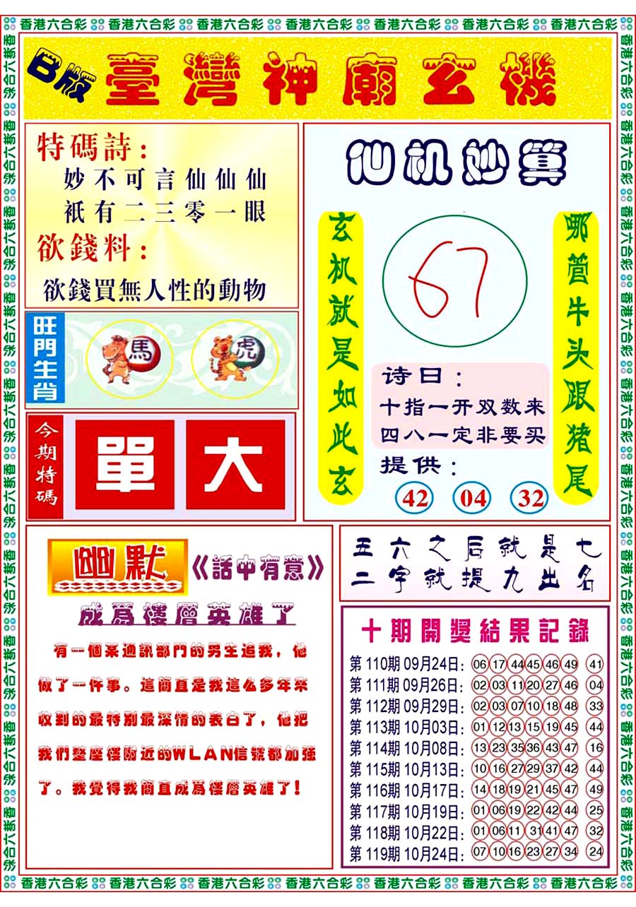 | 065 | 香港神算 | 066 | 澳门三合图 | 067 | 台湾神算通 | 068 | 六彩阴阳图 | |||||||||||||||||||||||||||||||||||||||||||||||||||