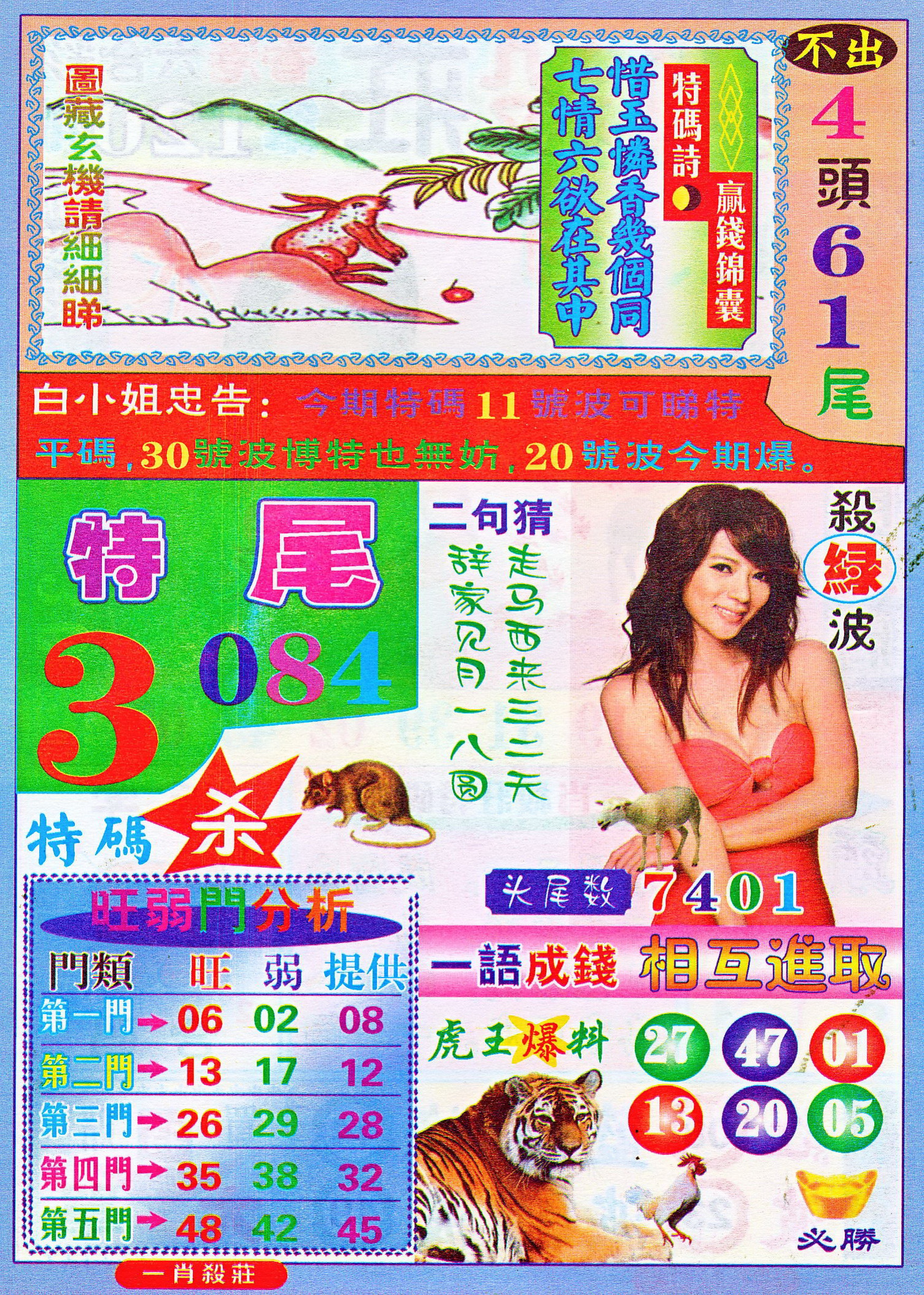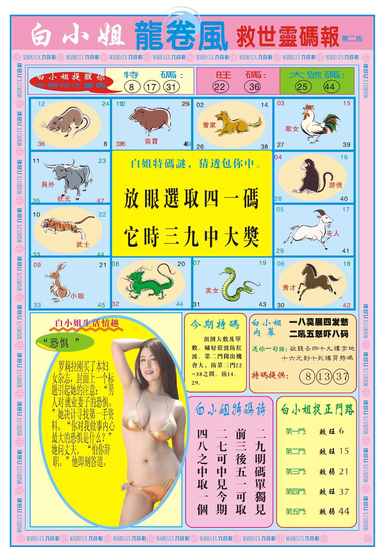 | 801 | 白小姐特刊 | 802 | 白小姐彩讯 | 803 | 白姐生肖a | 803a | 白姐生肖B | |||||||||||||||||||||||||||||||||||||||||||||||||||