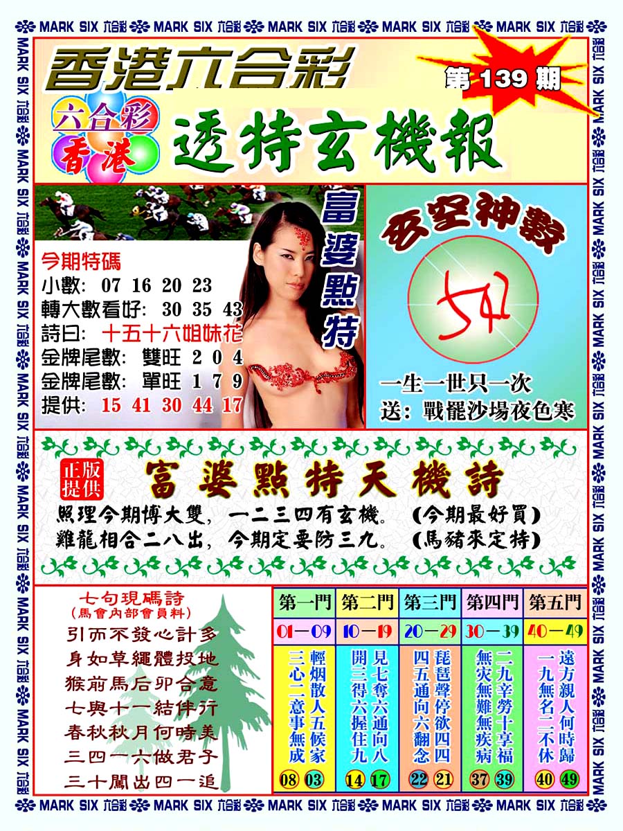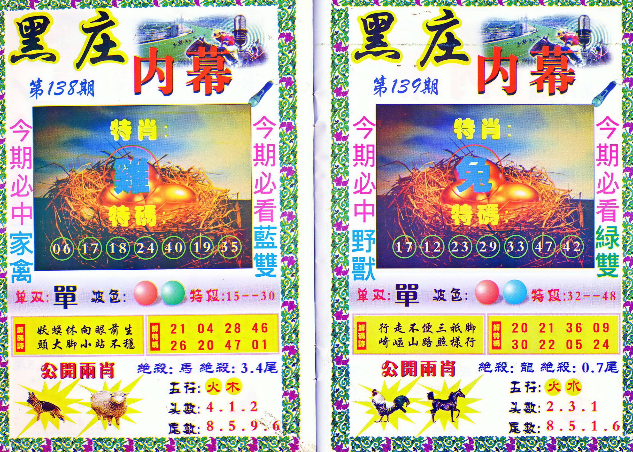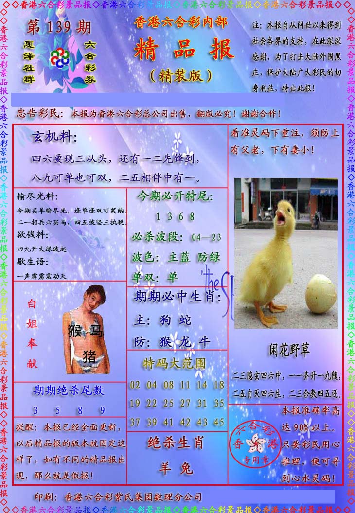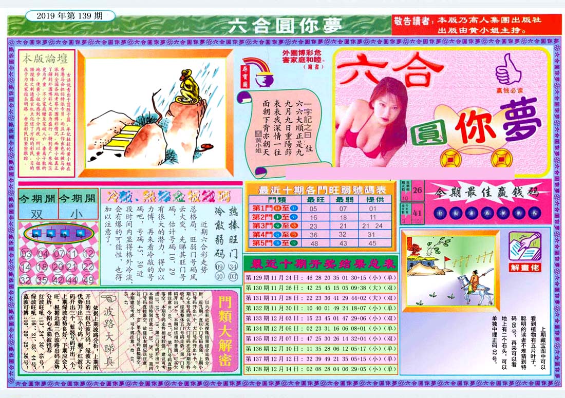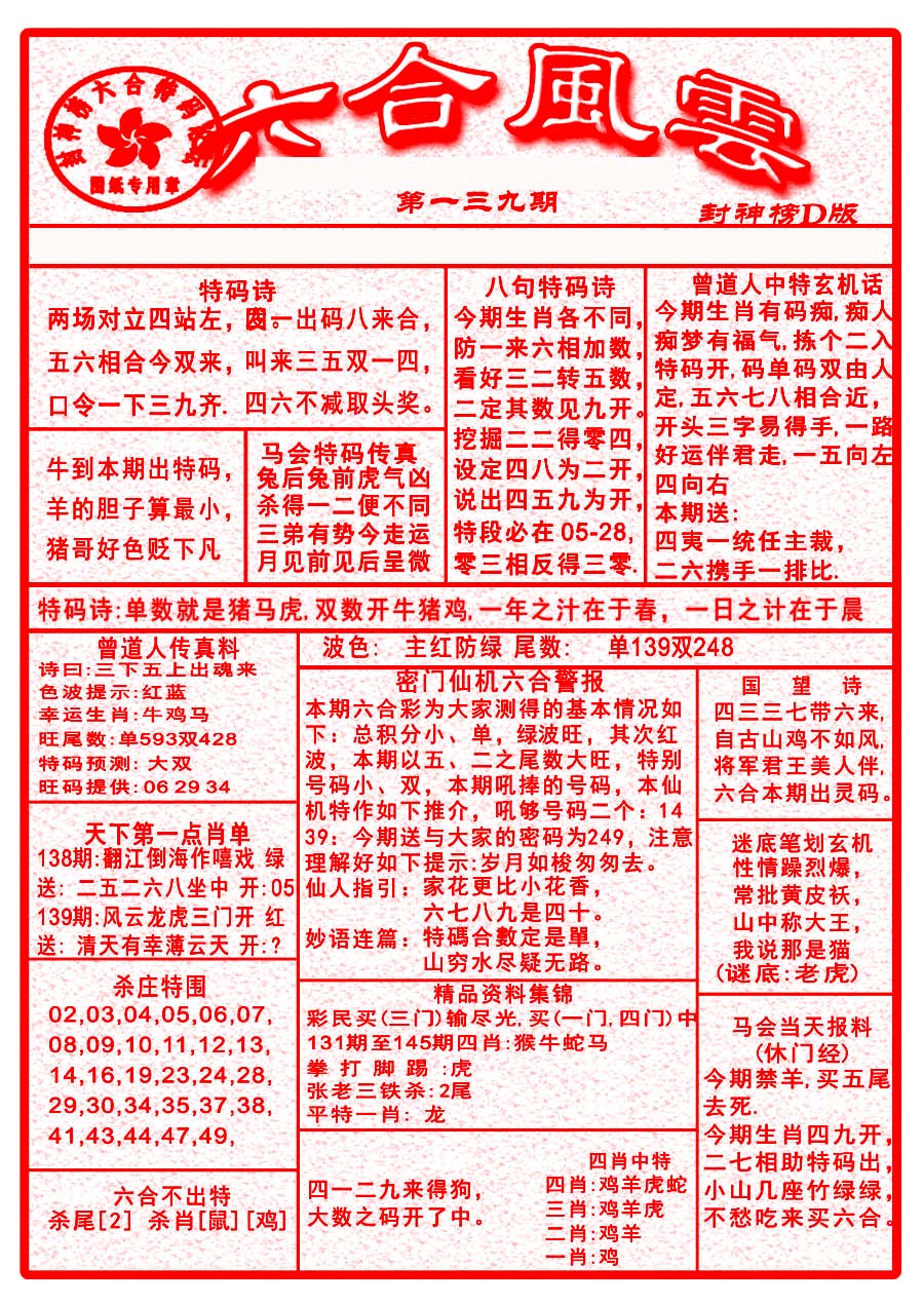 | 1336 | 统一玄机报 | 1337 | 正宗青龙五鬼报A | 1338 | 正宗青龙五鬼报B | 1339 | 美女六肖报 | |||||||||||||||||||||||||||||||||||||||||||||||||||