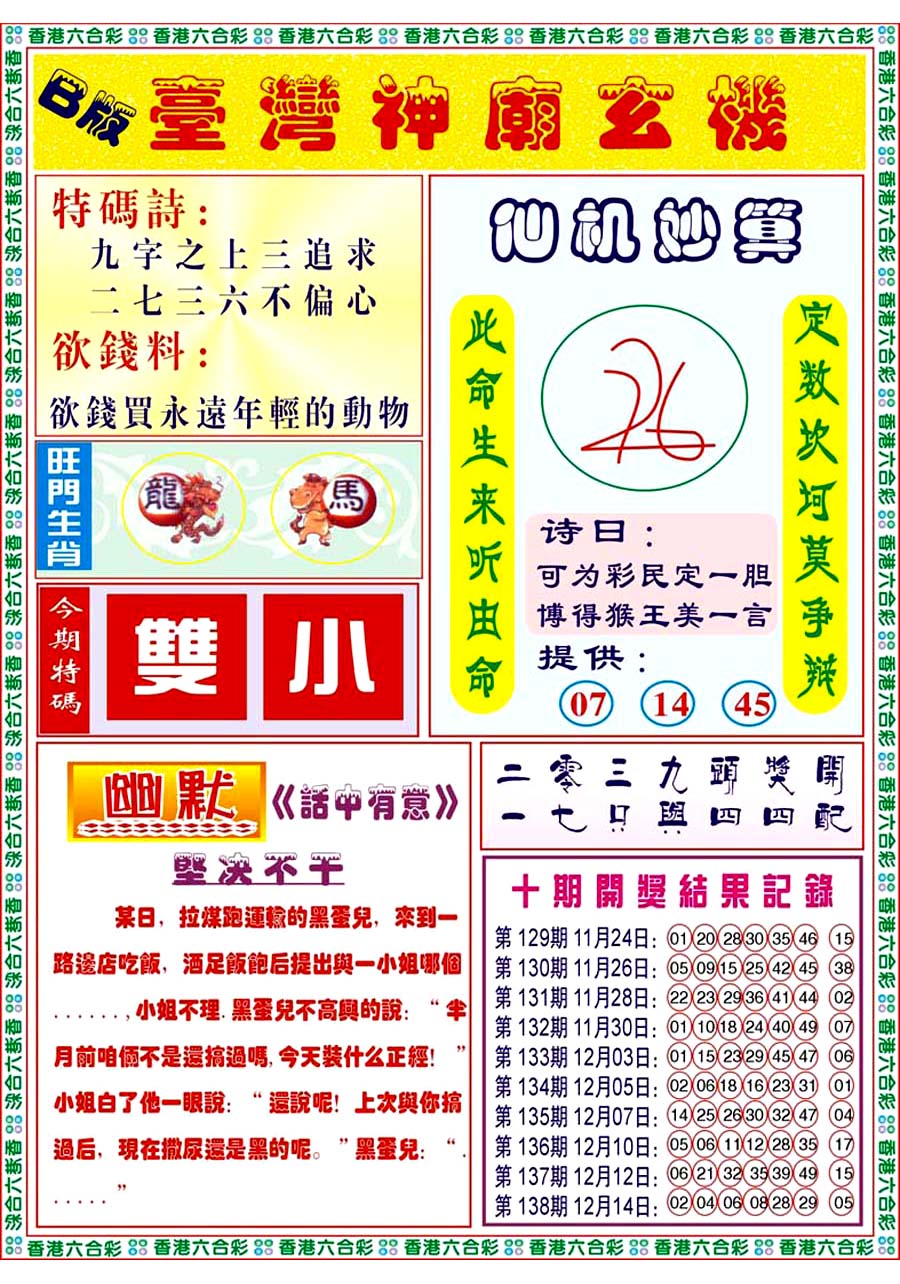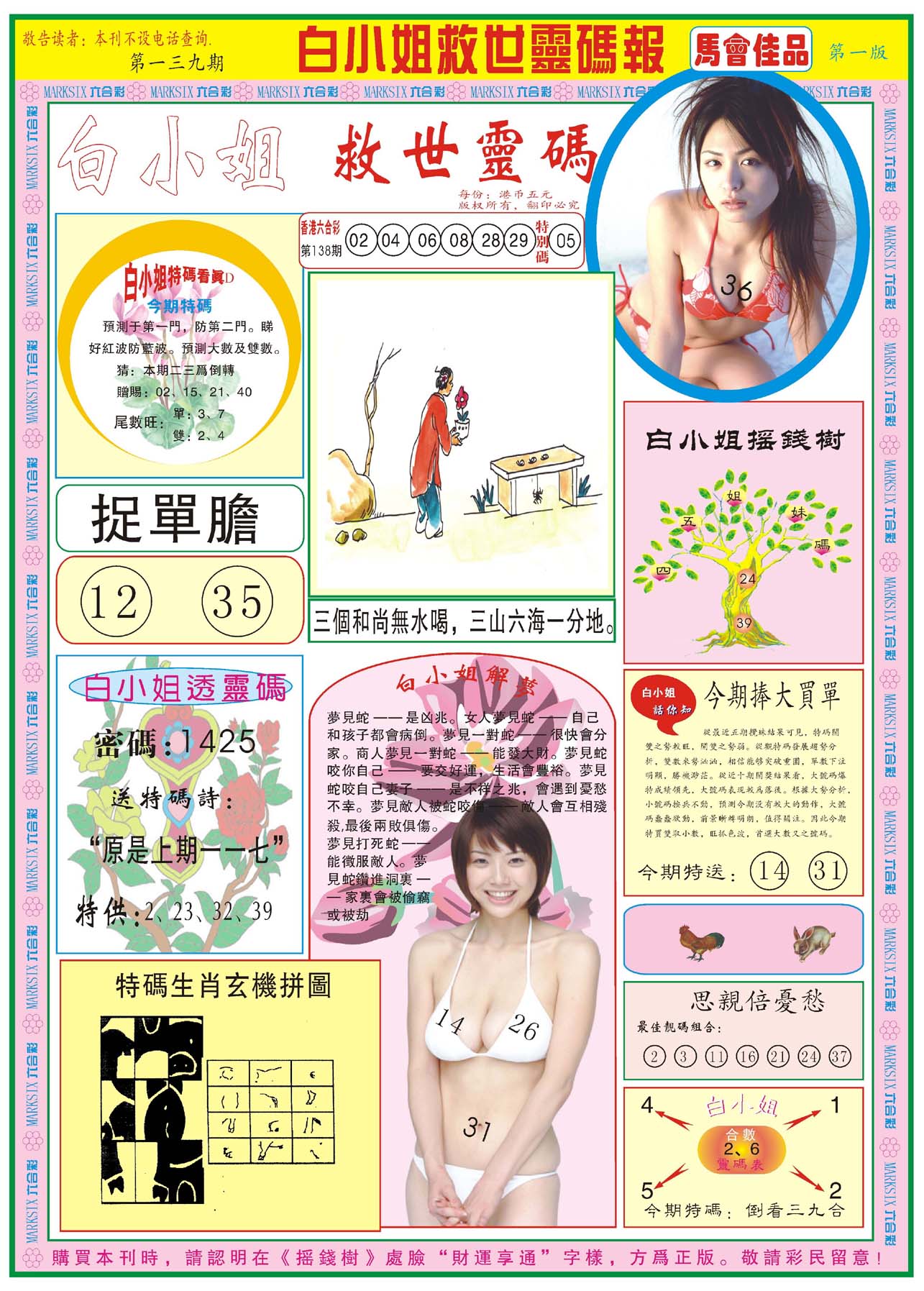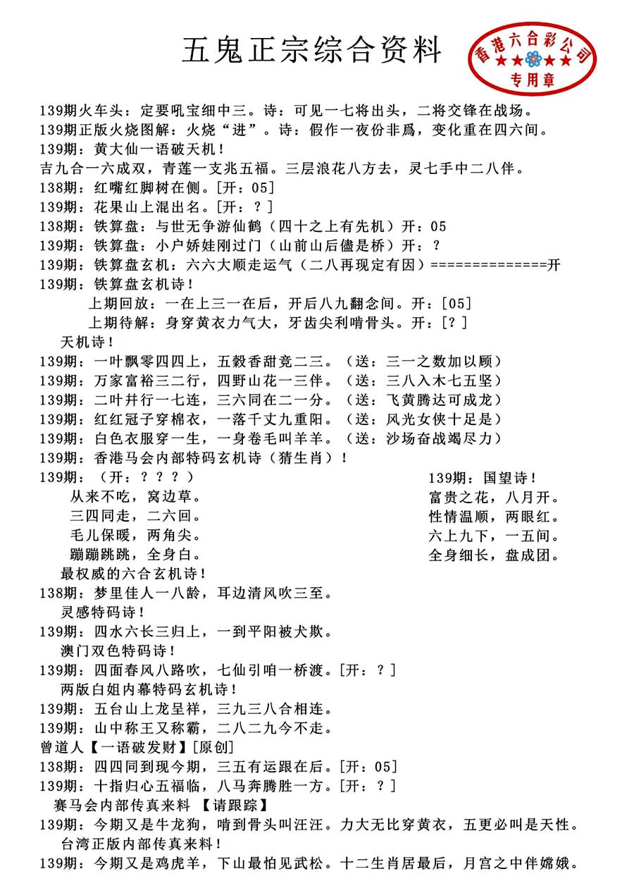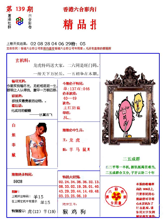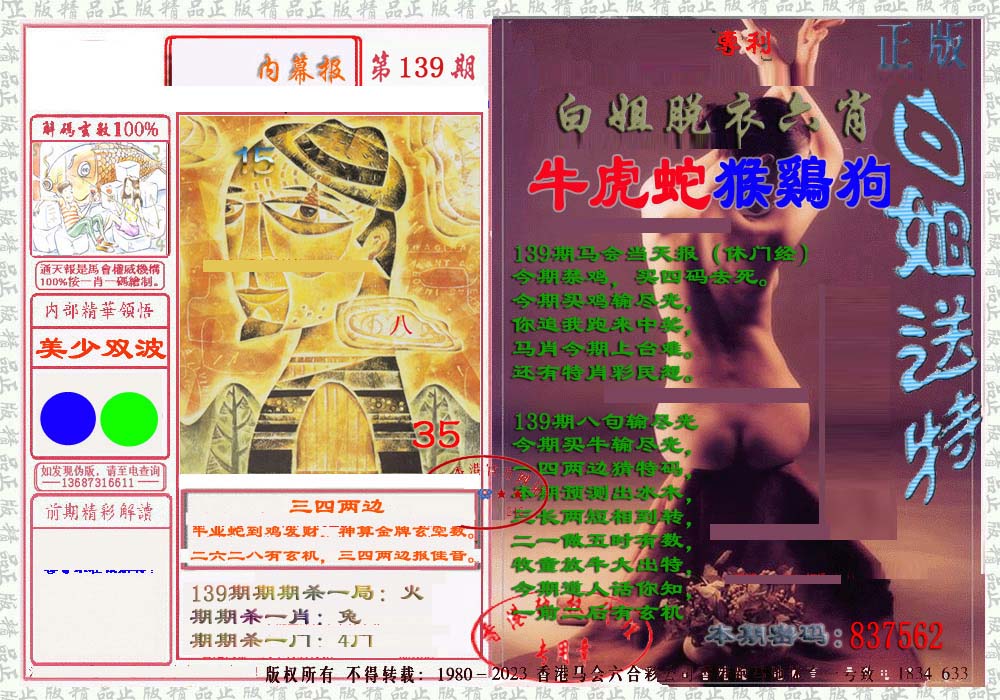 | 1336 | 统一玄机报 | 1337 | 正宗青龙五鬼报A | 1338 | 正宗青龙五鬼报B | 1339 | 美女六肖报 | |||||||||||||||||||||||||||||||||||||||||||||||||||