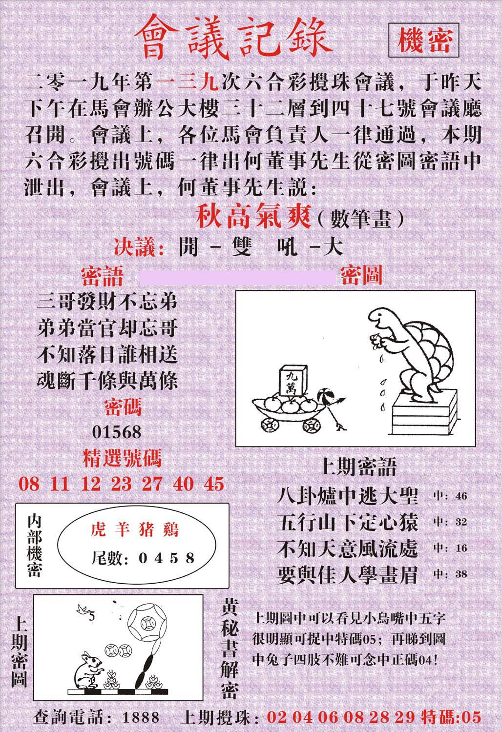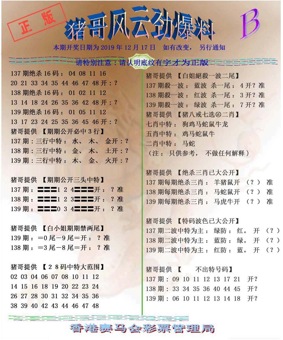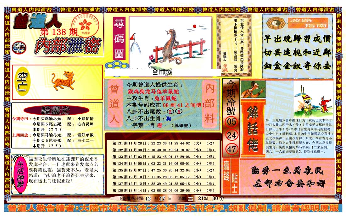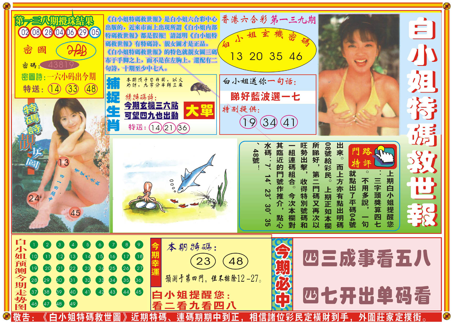 | 1336 | 统一玄机报 | 1337 | 正宗青龙五鬼报A | 1338 | 正宗青龙五鬼报B | 1339 | 美女六肖报 | |||||||||||||||||||||||||||||||||||||||||||||||||||