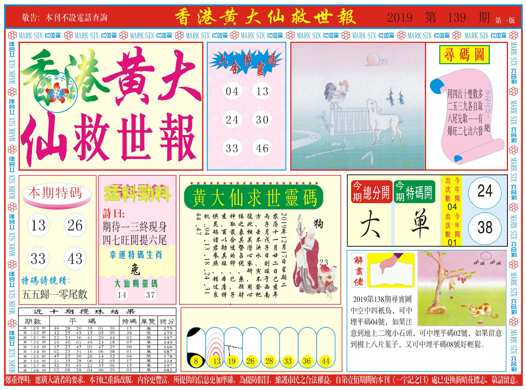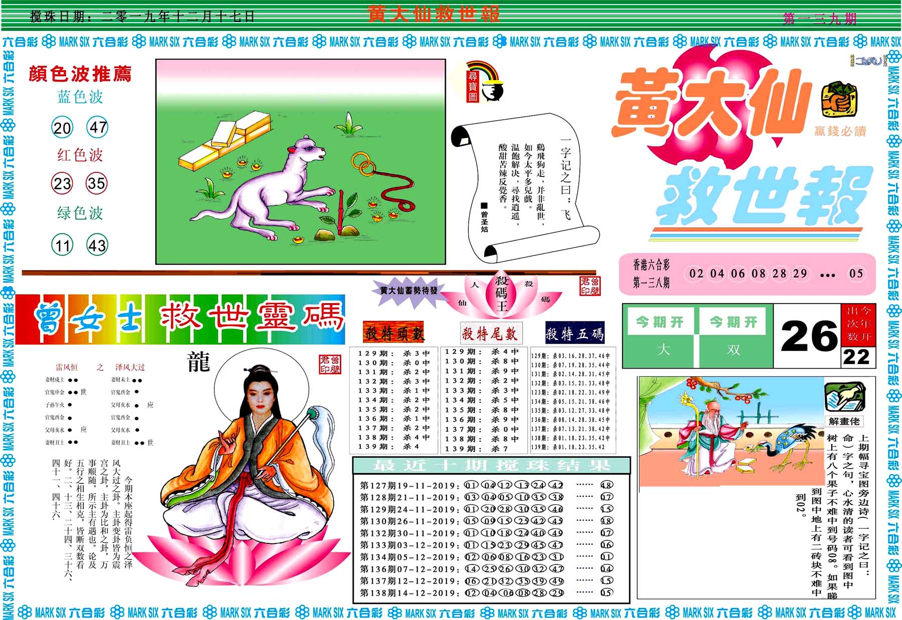 | 019 | 黄大仙救世报A | 020 | 黄大仙救世报B | 021 | 香港黄大仙报A | 022 | 香港黄大仙报B | |||||||||||||||||||||||||||||||||||||||||||||||||||