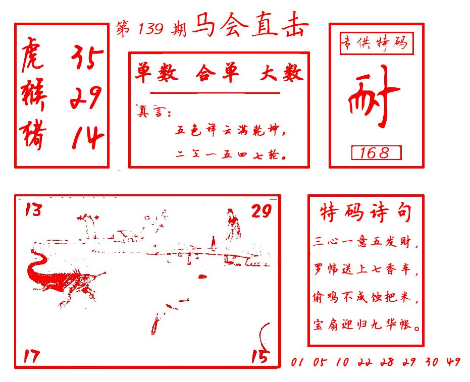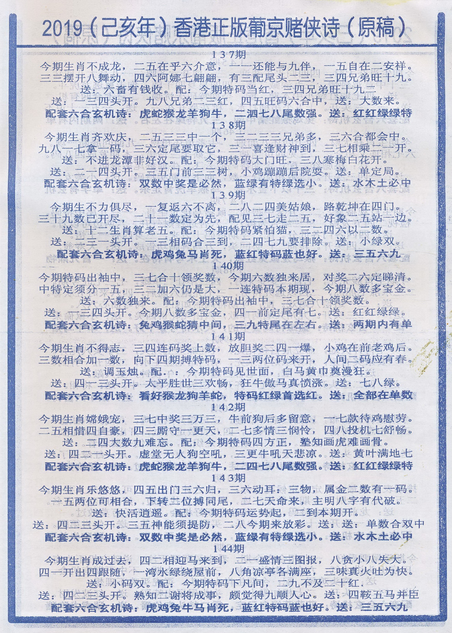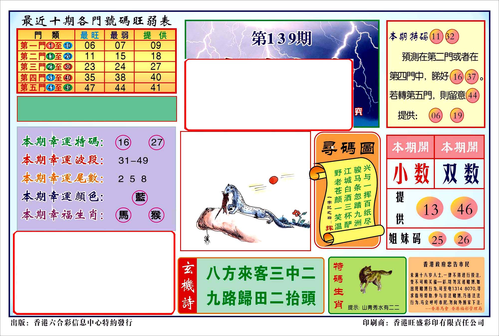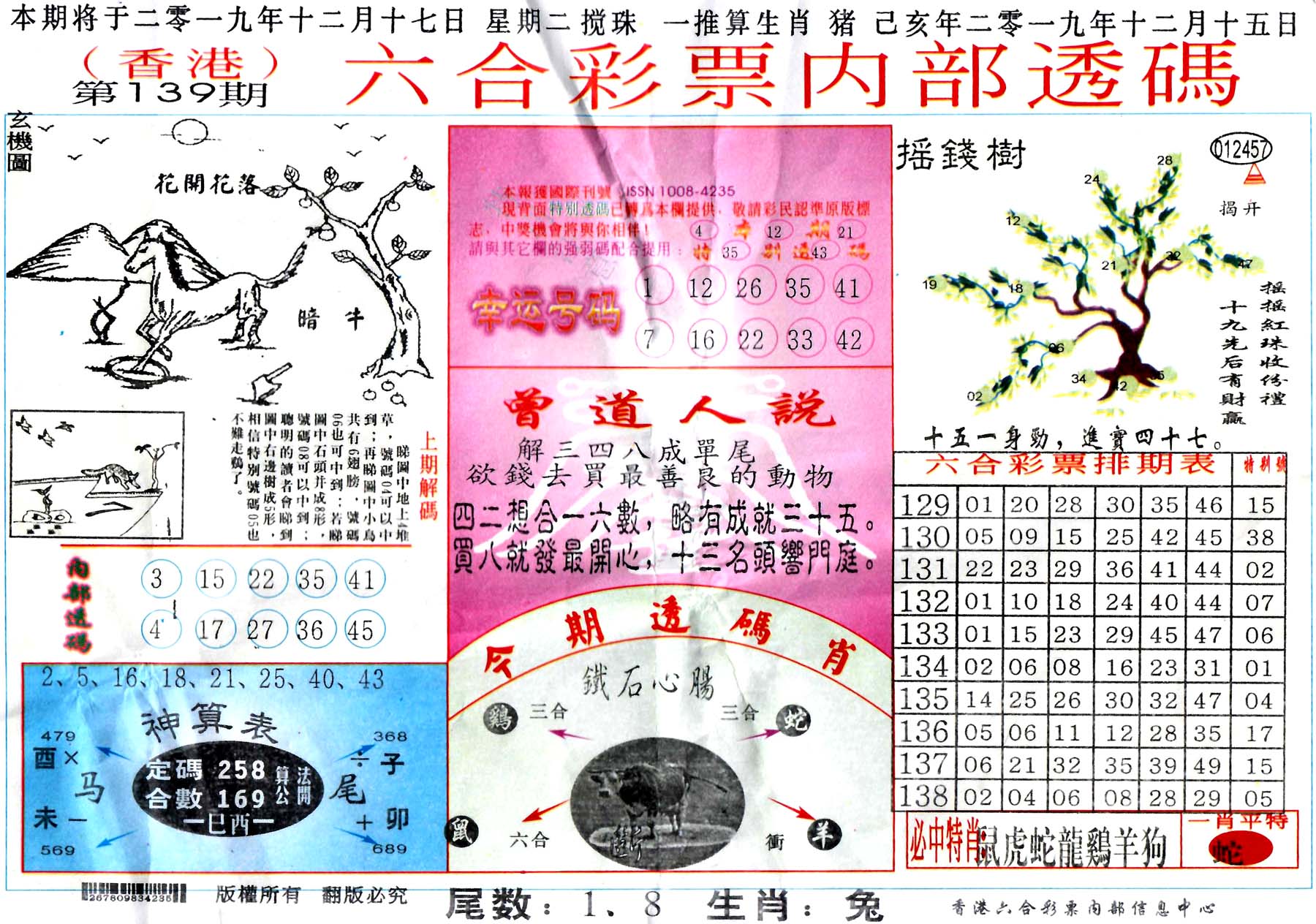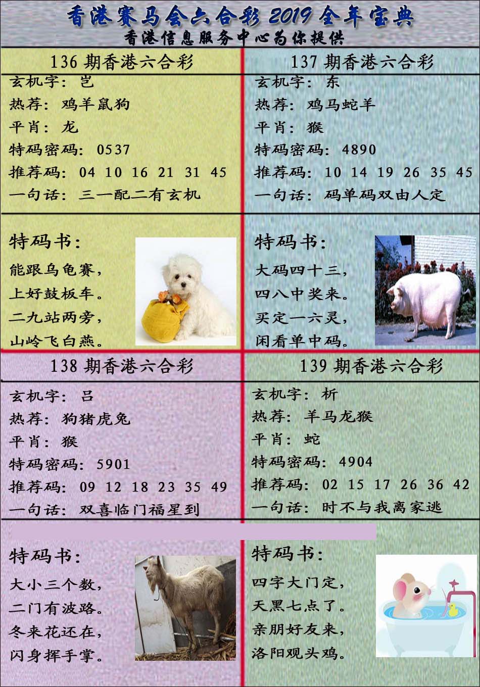 | 1765 | 黄大仙救世报 | 1766 | 香港马会专刊A | 1767 | 香港马会专刊B | 1768 | 赌王心经 |