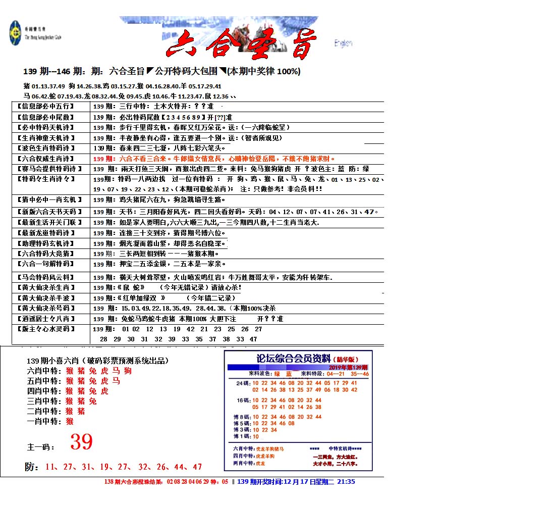 | 039 | 六合内部玄机A | 040 | 六合内部玄机B | 041 | 内部精选神算通A | 042 | 内部精选神算通B | |||||||||||||||||||||||||||||||||||||||||||||||||||