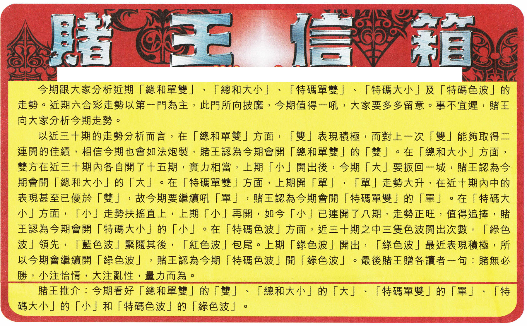 | 211 | 小赌经A | 212 | 小赌经B | 213 | 黄大仙加大版A | 214 | 黄大仙加大版B | |||||||||||||||||||||||||||||||||||||||||||||||||||