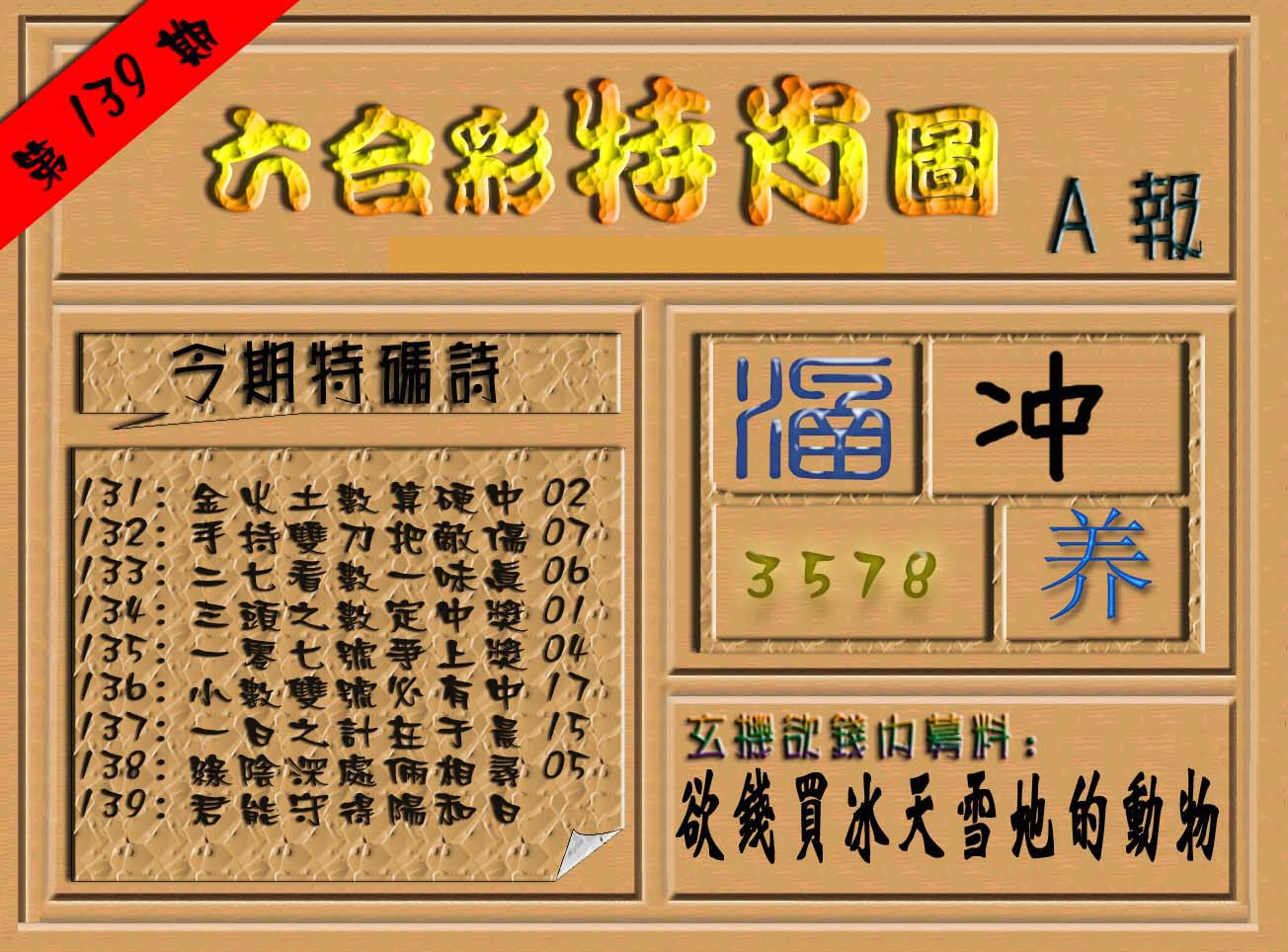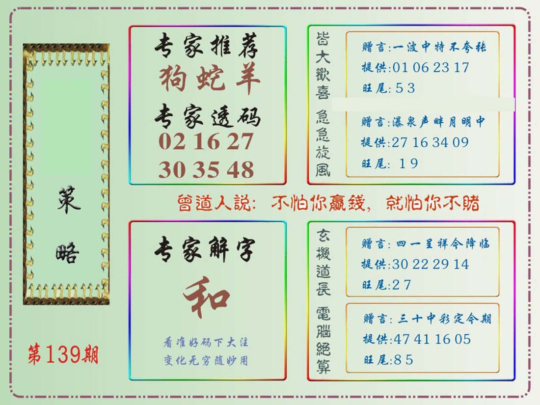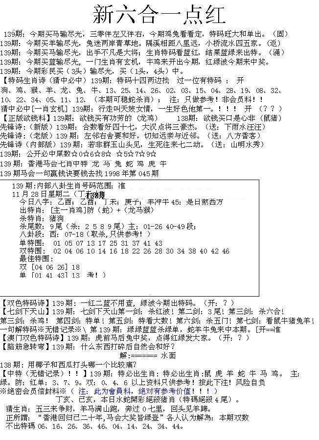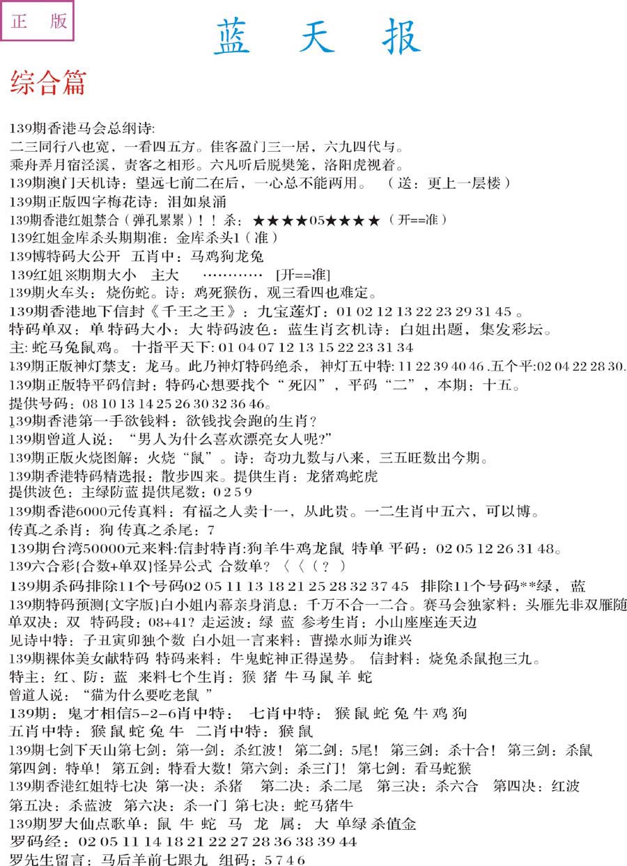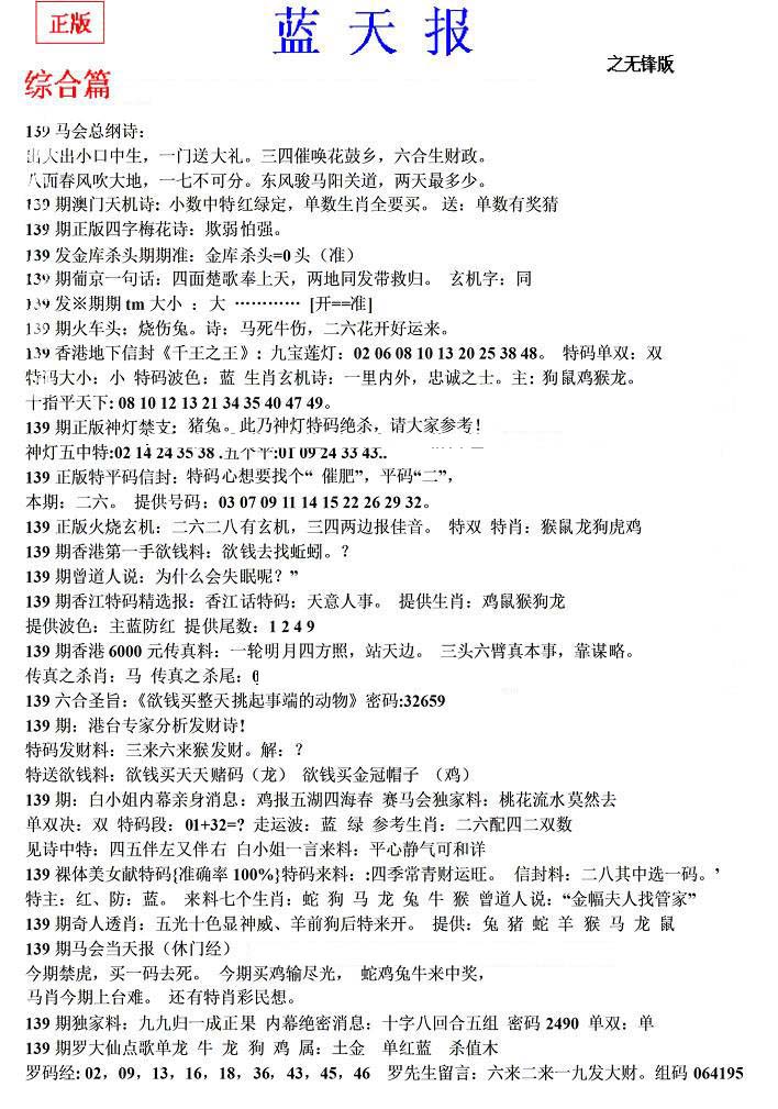 | 063 | 六合禅机A | 064 | 六合禅机B | 069 | 特 新 报A | 070 | 特 新 报B | |||||||||||||||||||||||||||||||||||||||||||||||||||