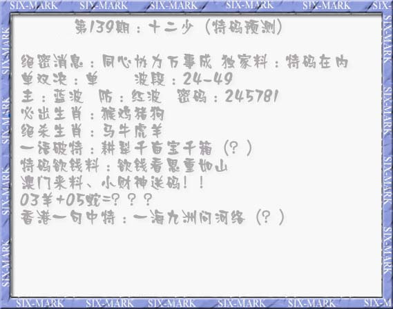 | 233 | 内幕玄机加大版A | 234 | 内幕玄机加大版B | 235 | 六合心经A | 236 | 六合心经B | |||||||||||||||||||||||||||||||||||||||||||||||||||