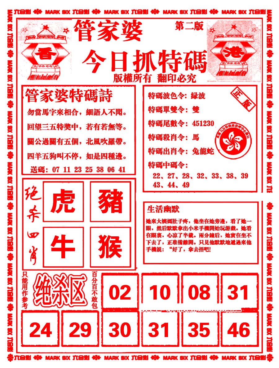 | 441 | 六合解霸A | 442 | 六合解霸B | 445 | 白姐特新刊A | 446 | 白姐特新刊B | |||||||||||||||||||||||||||||||||||||||||||||||||||