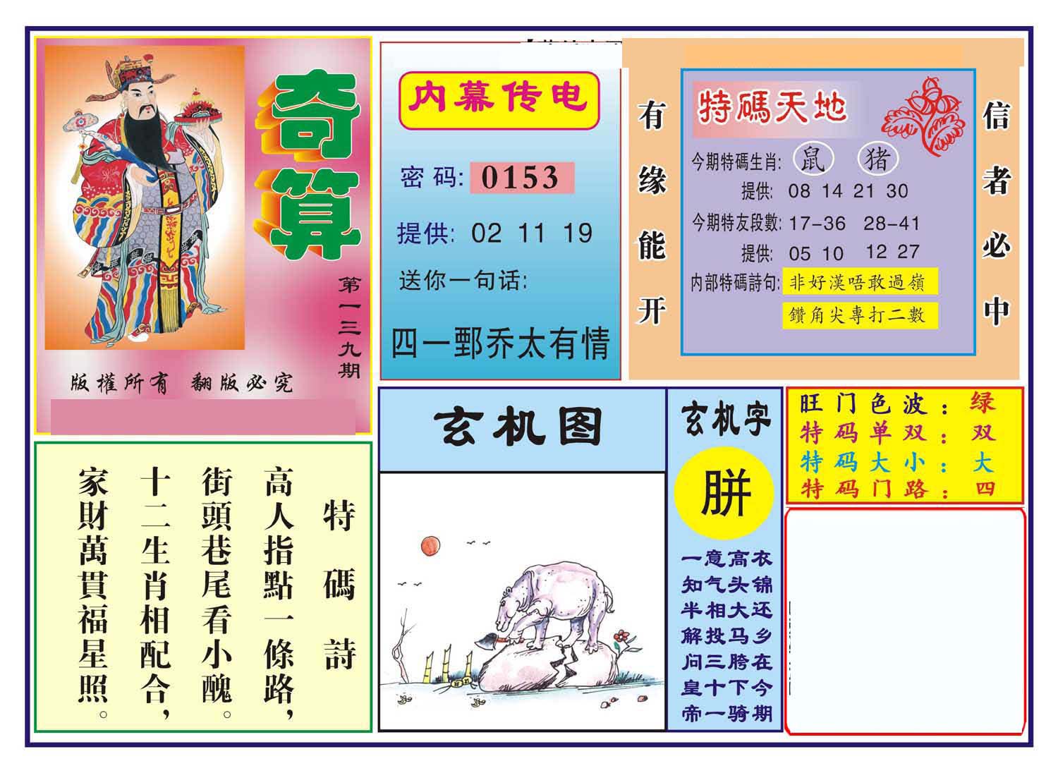 | 1708 | 内幕B | 1709 | 奇迹A | 1710 | 奇迹B | 1715 | 中特玄机料 | |||||||||||||||||||||||||||||||||||||||||||||||||||
