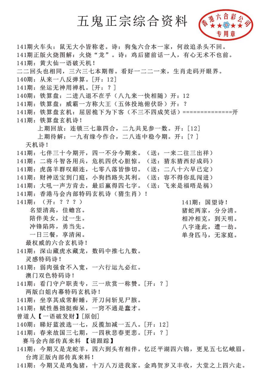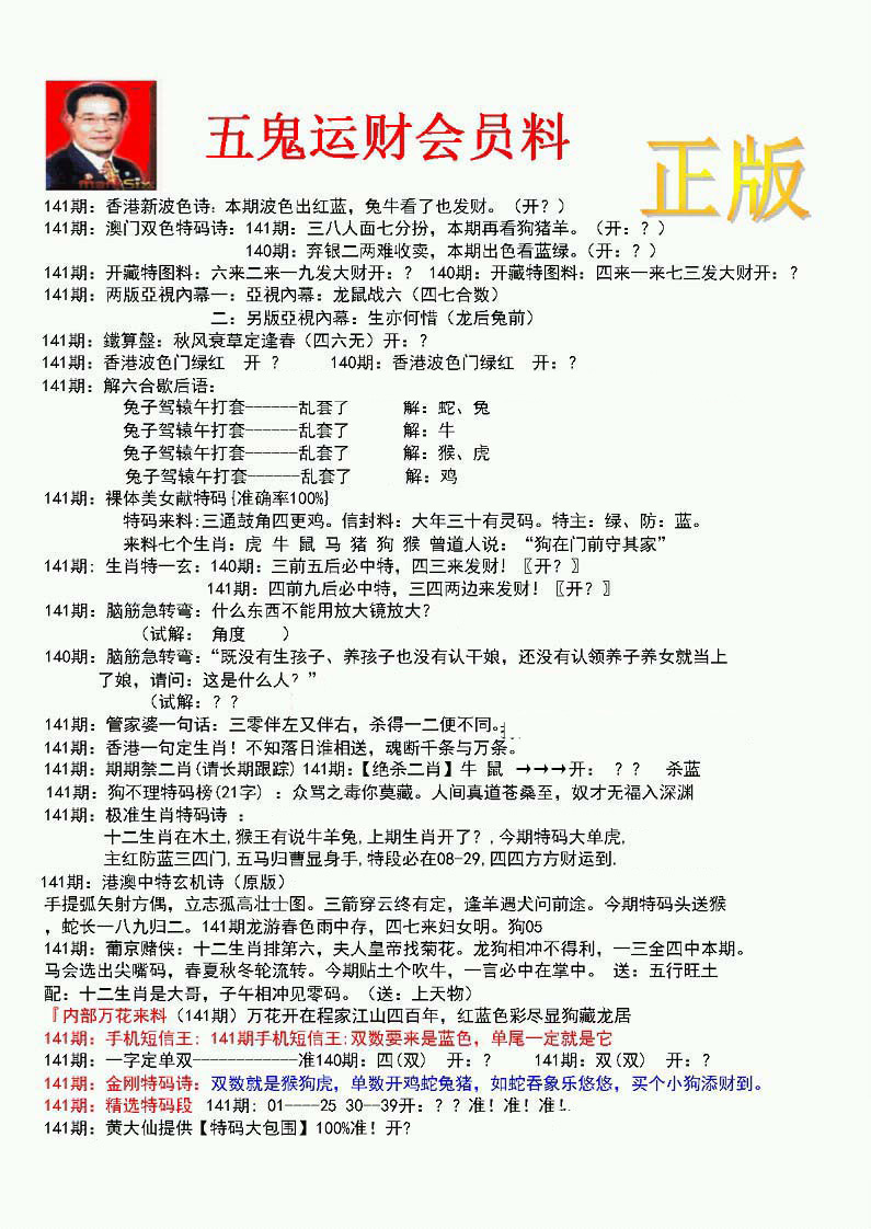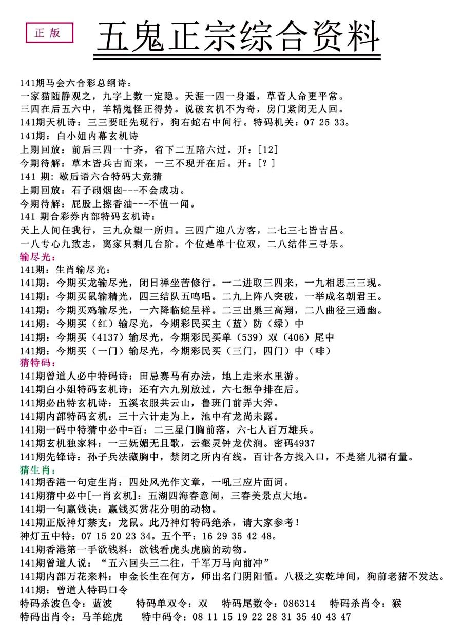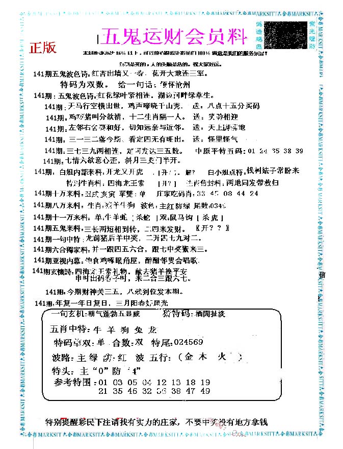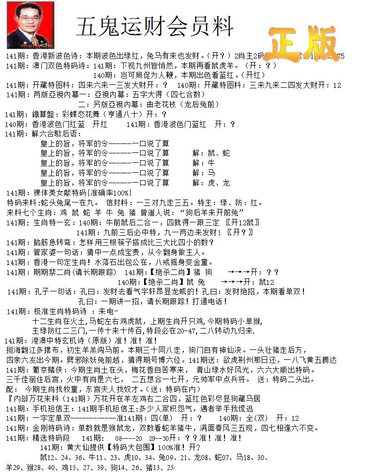 | 1401 | 正版2800信封 | 1402 | 特码内幕A | 1403 | 特码内幕B | 1404 | 五鬼正宗综合资料A | |||||||||||||||||||||||||||||||||||||||||||||||||||