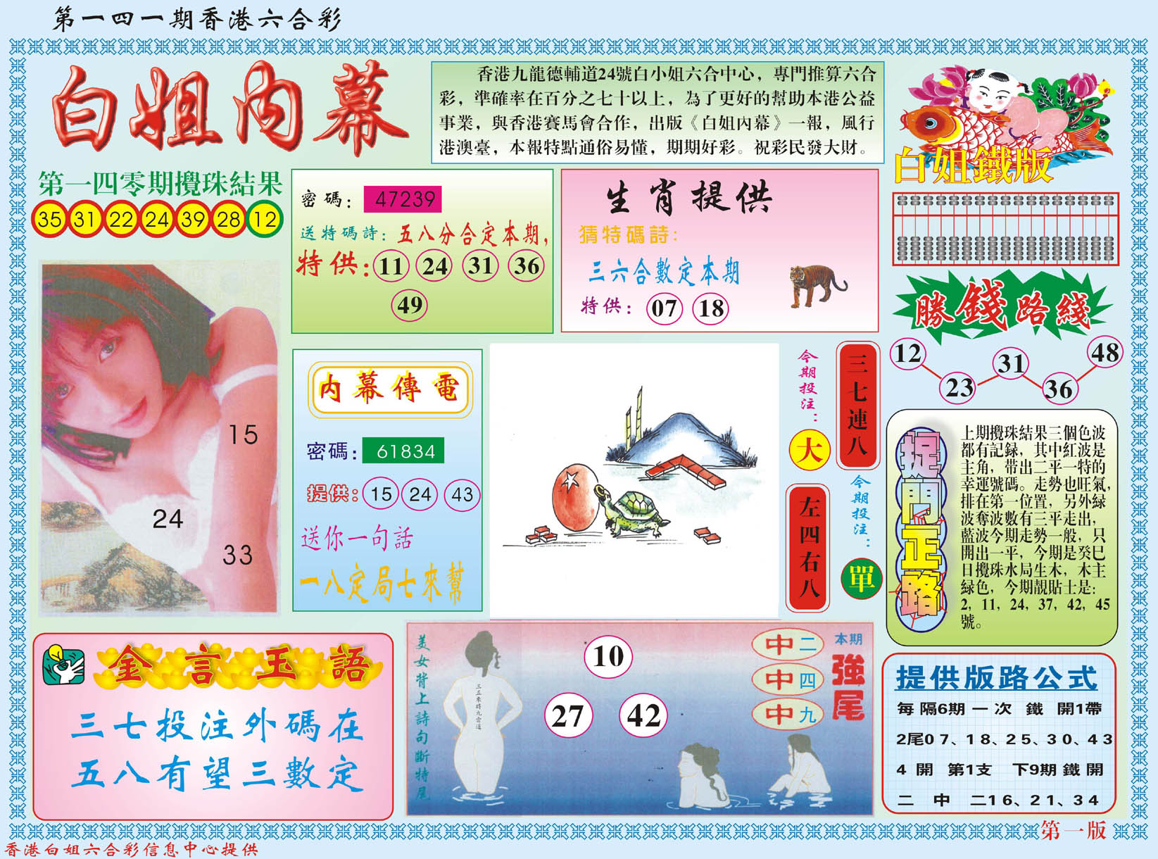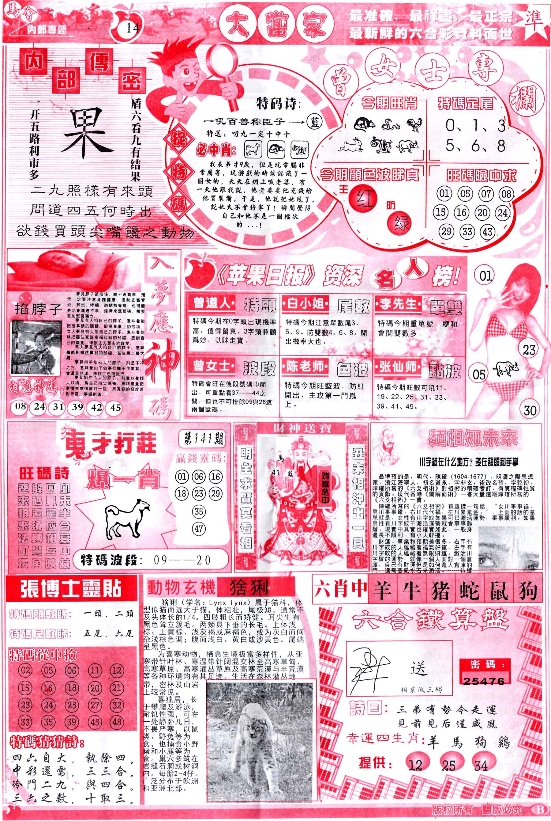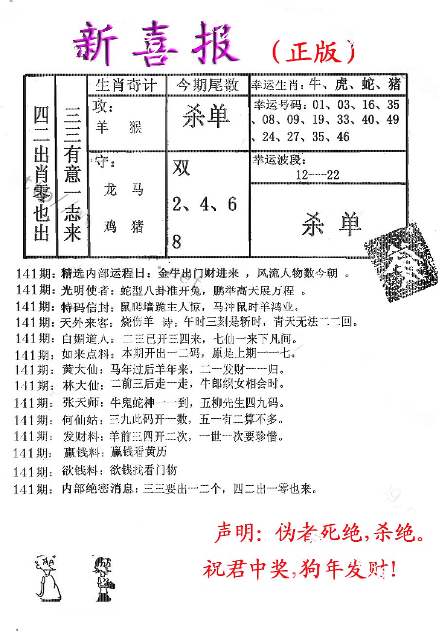 | 1401 | 正版2800信封 | 1402 | 特码内幕A | 1403 | 特码内幕B | 1404 | 五鬼正宗综合资料A | |||||||||||||||||||||||||||||||||||||||||||||||||||