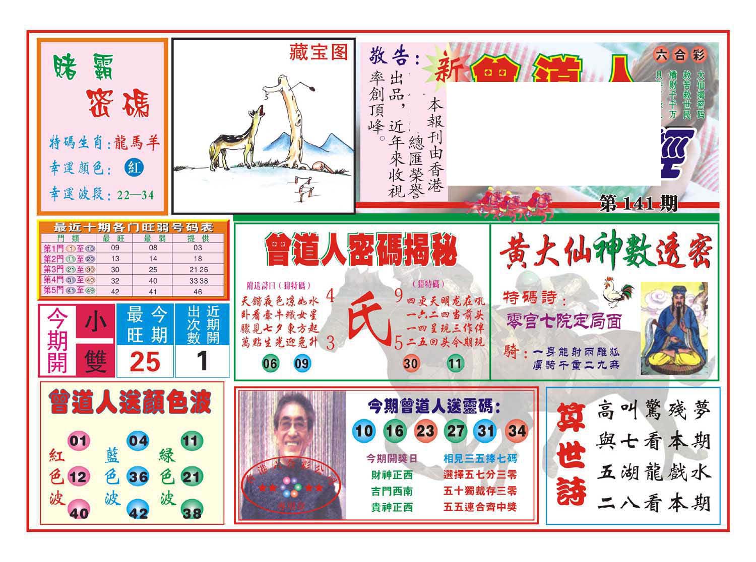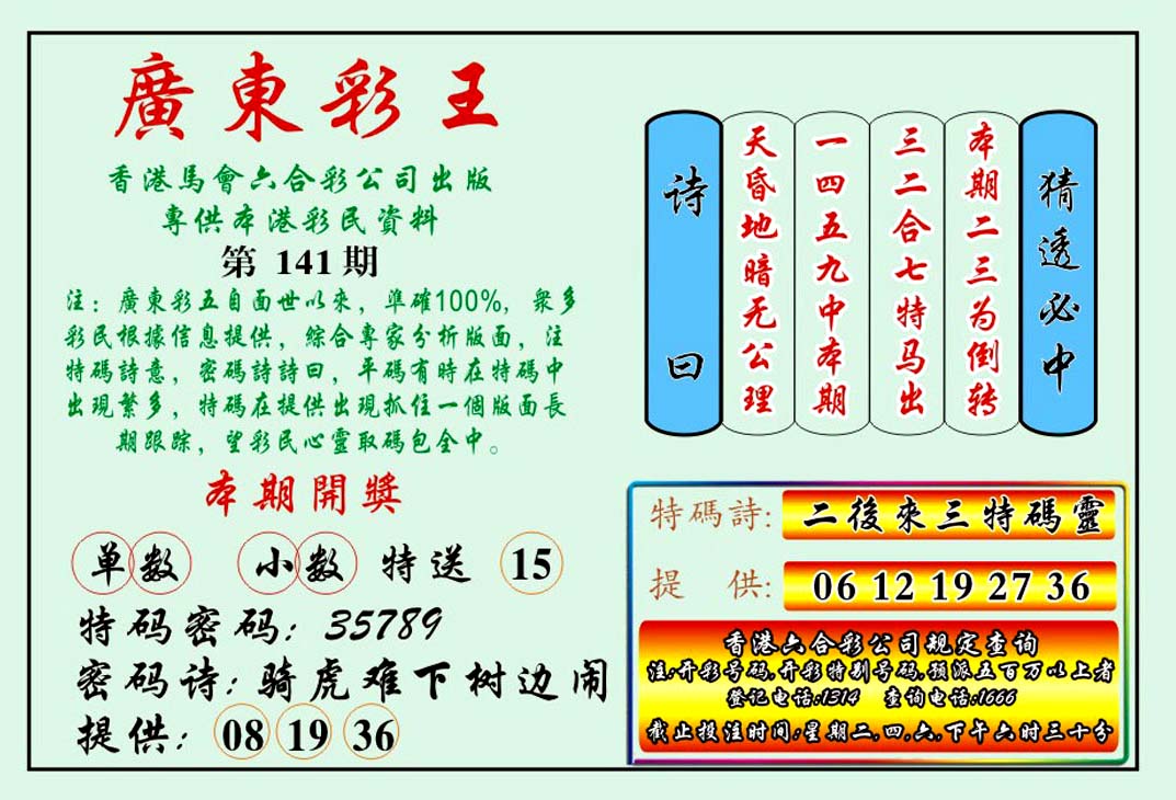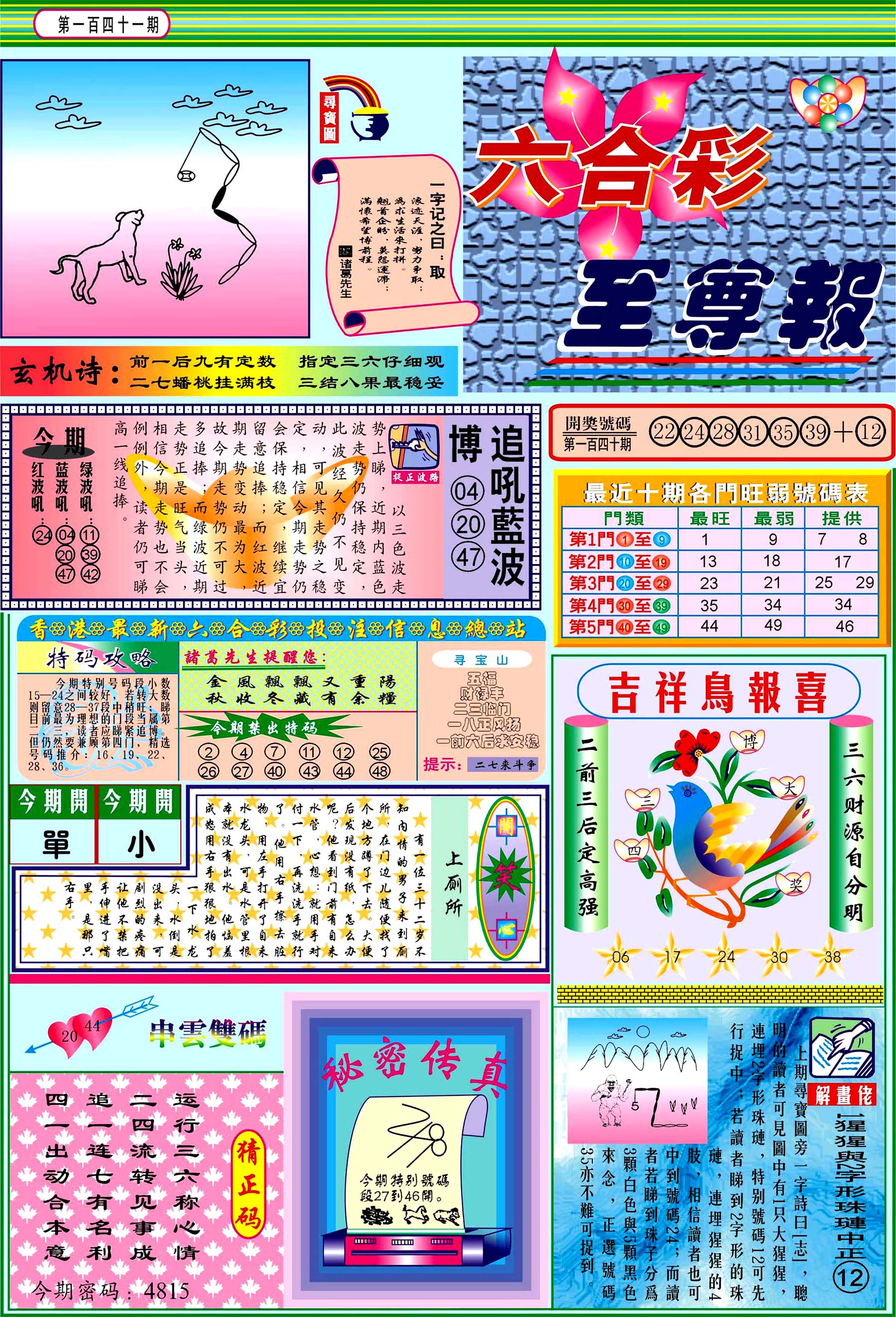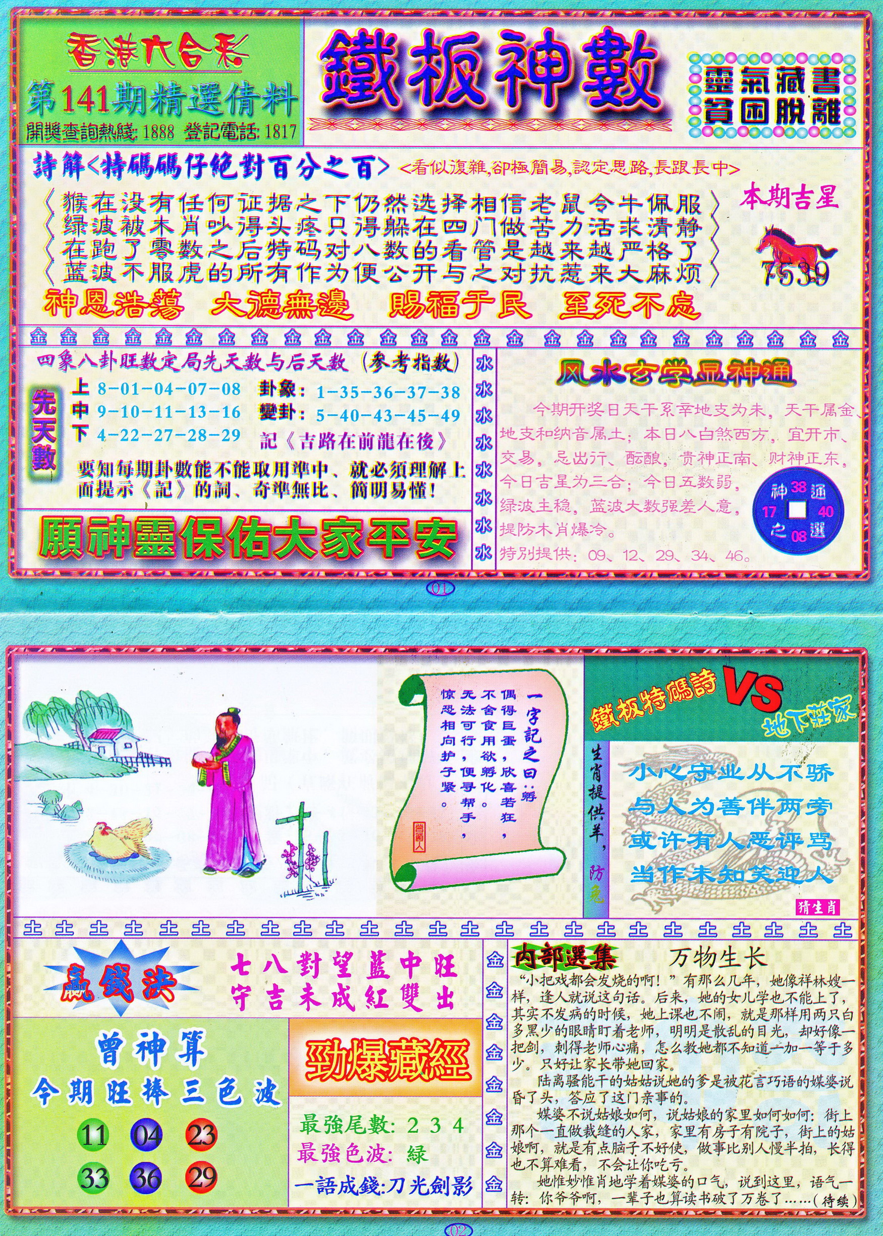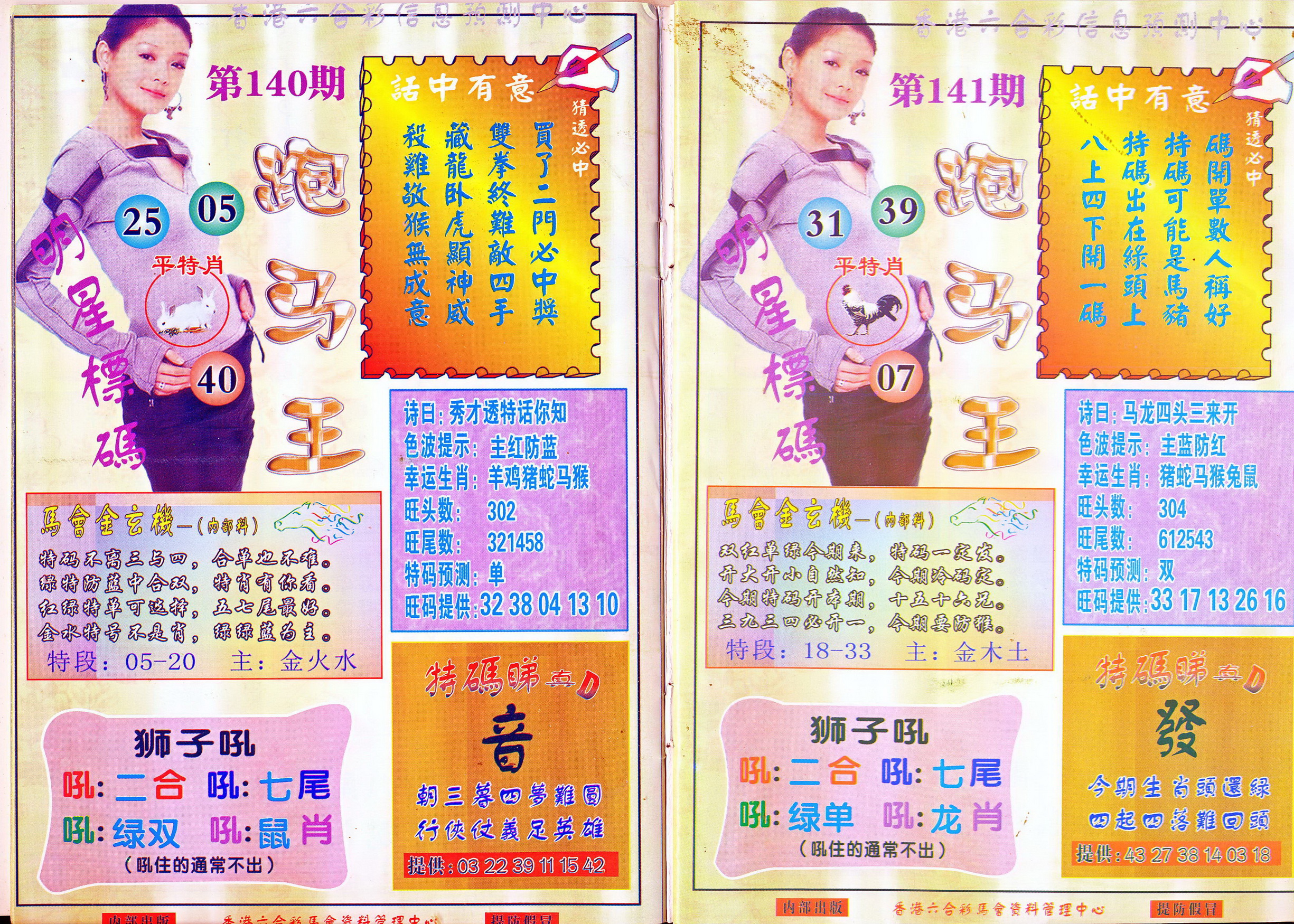 | 1765 | 黄大仙救世报 | 1766 | 香港马会专刊A | 1767 | 香港马会专刊B | 1768 | 赌王心经 |