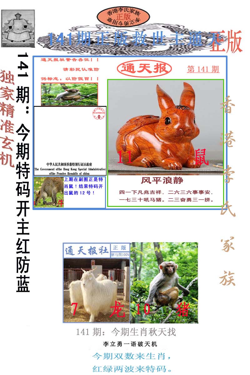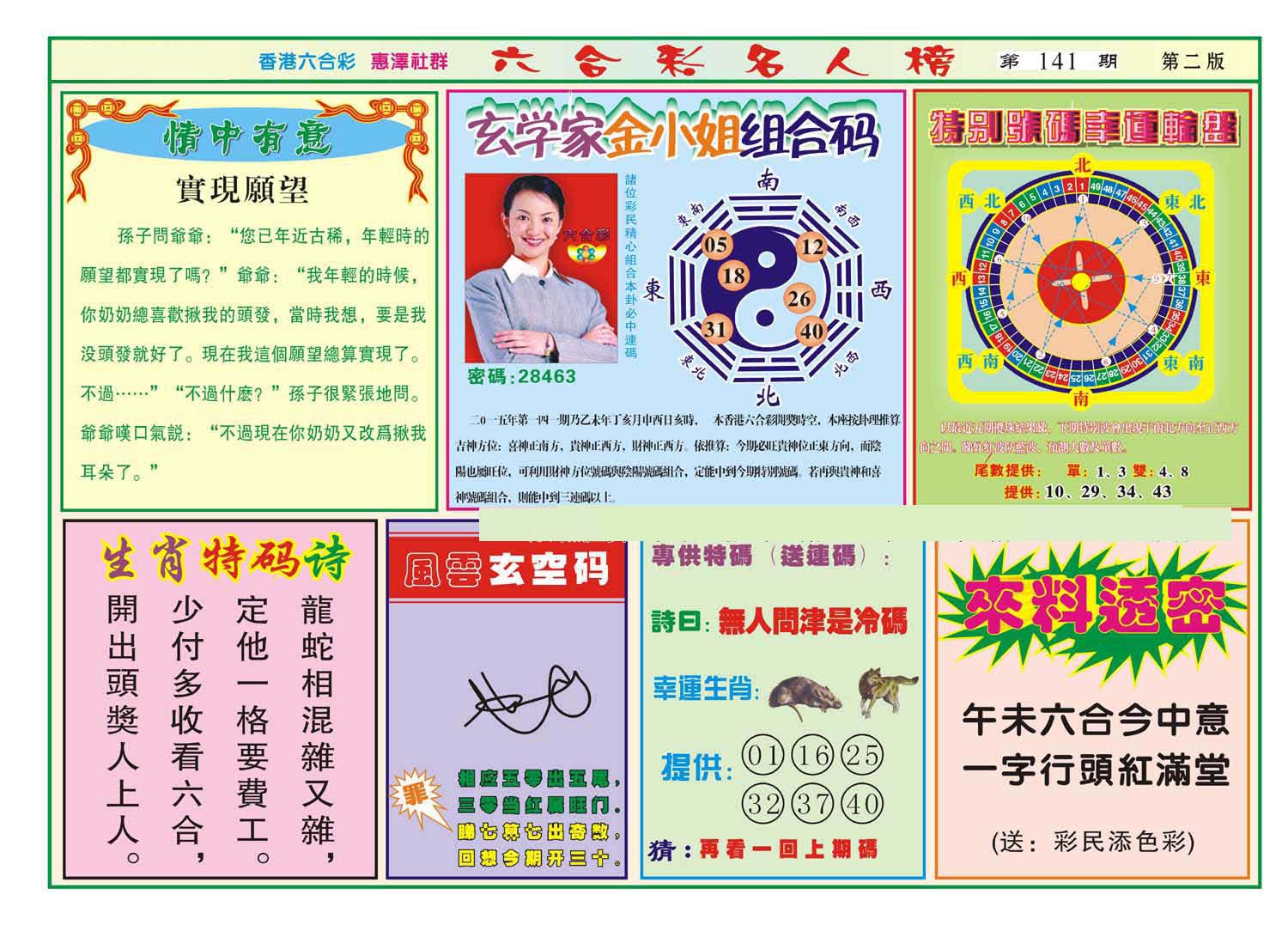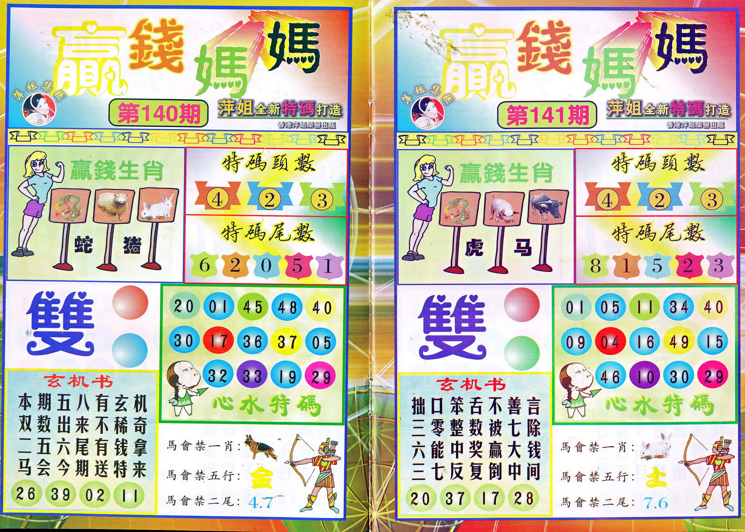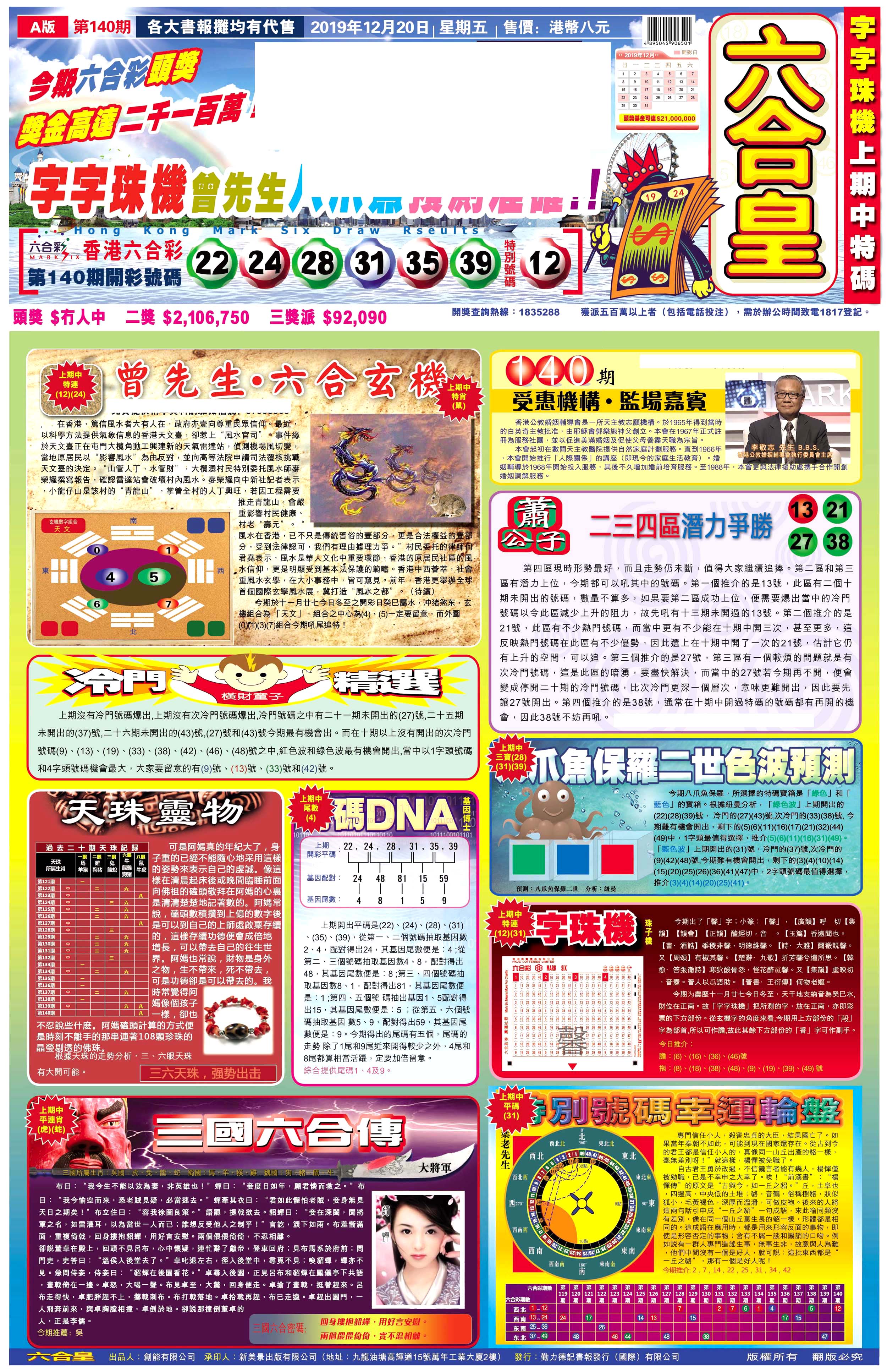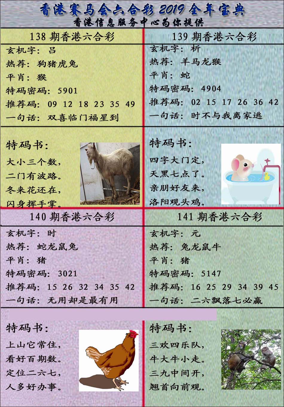 | 1765 | 黄大仙救世报 | 1766 | 香港马会专刊A | 1767 | 香港马会专刊B | 1768 | 赌王心经 |