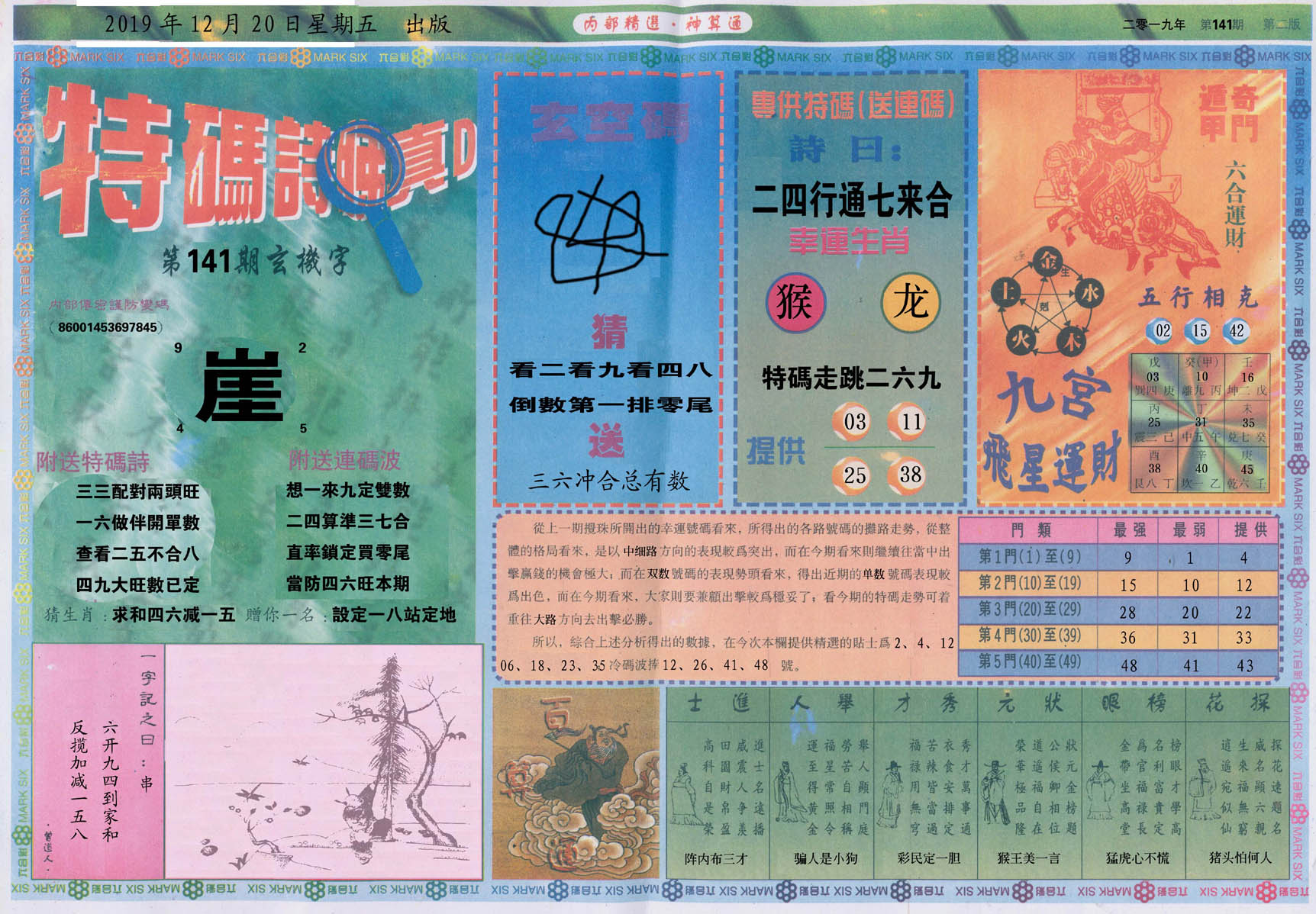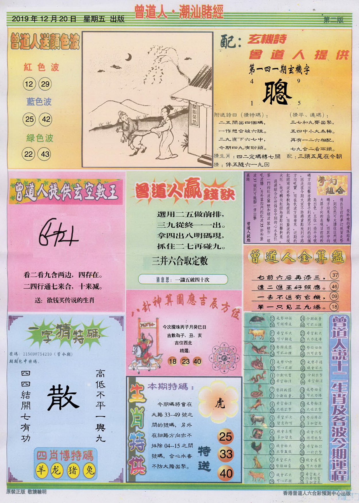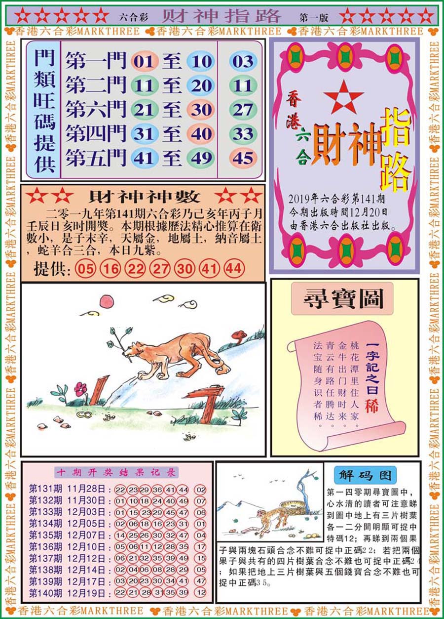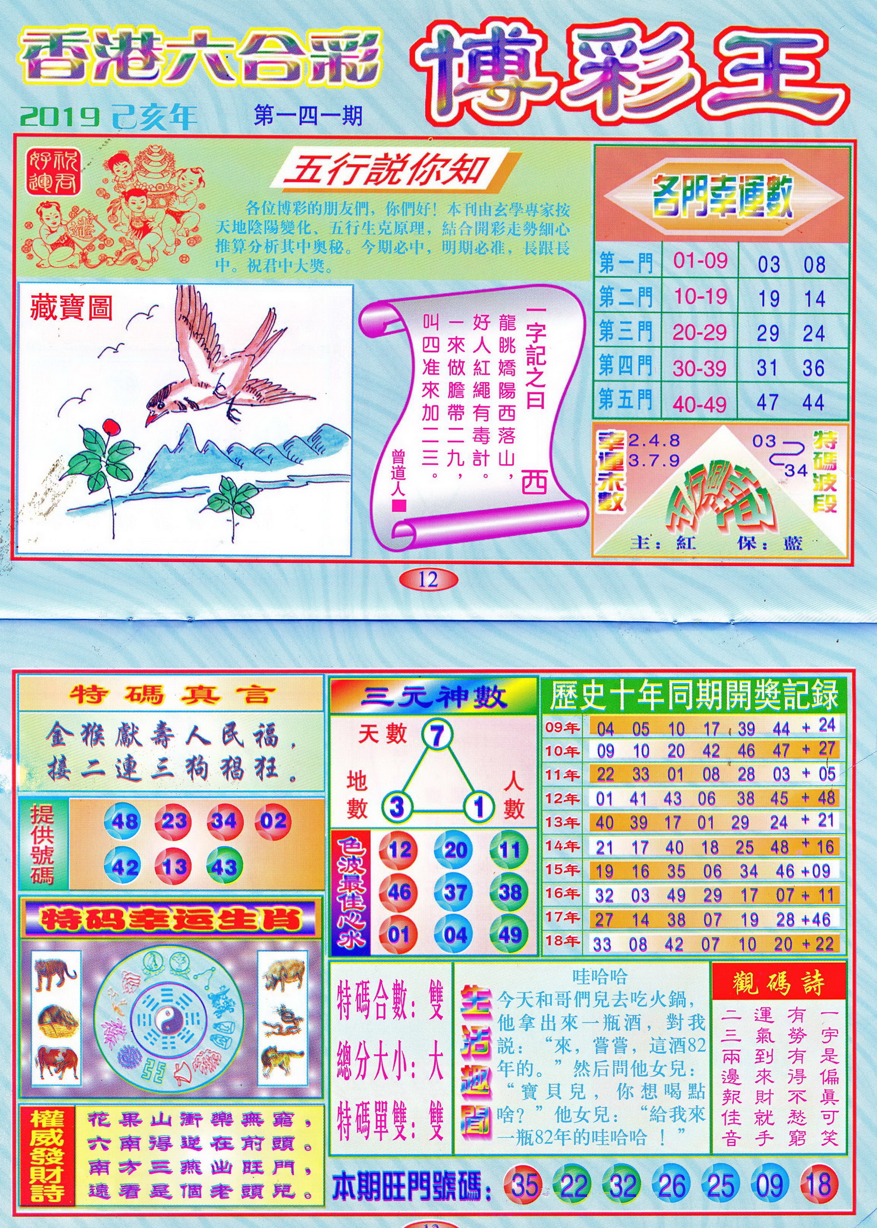 | 1765 | 黄大仙救世报 | 1766 | 香港马会专刊A | 1767 | 香港马会专刊B | 1768 | 赌王心经 |