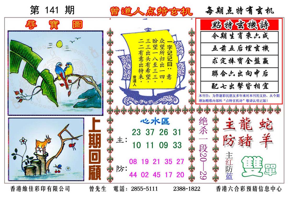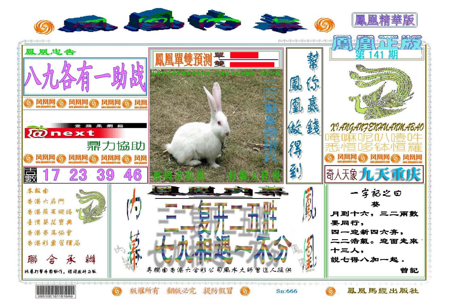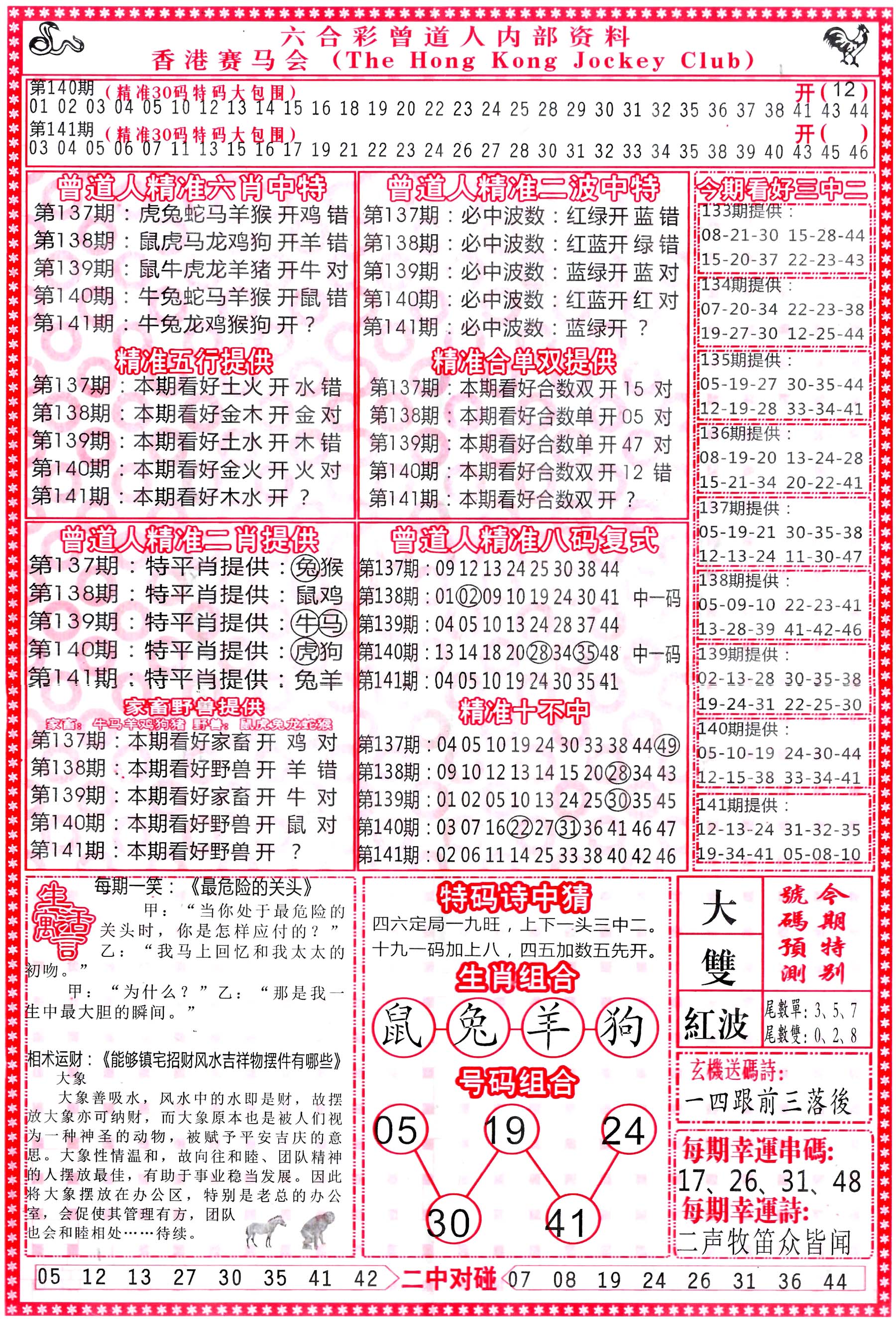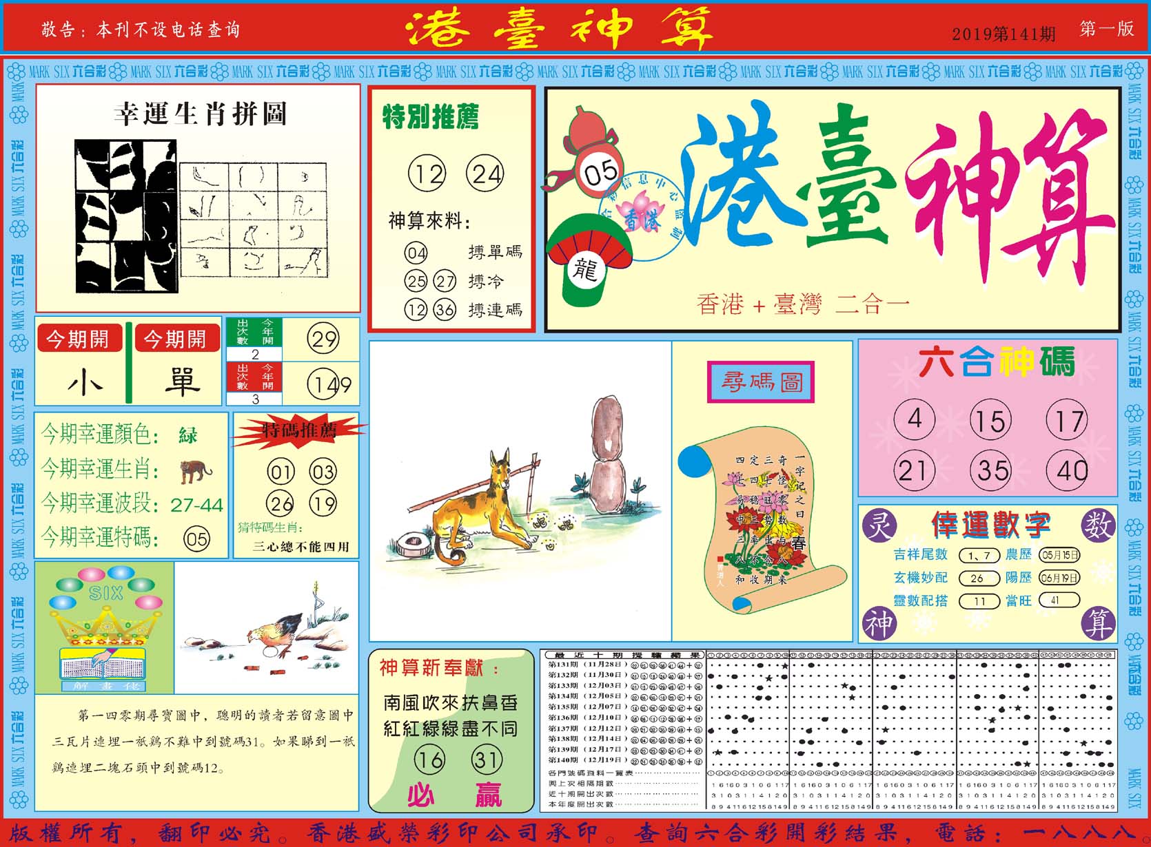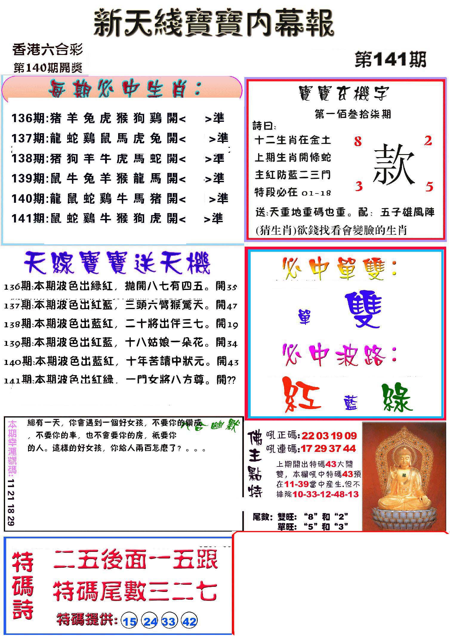 | 1765 | 黄大仙救世报 | 1766 | 香港马会专刊A | 1767 | 香港马会专刊B | 1768 | 赌王心经 |