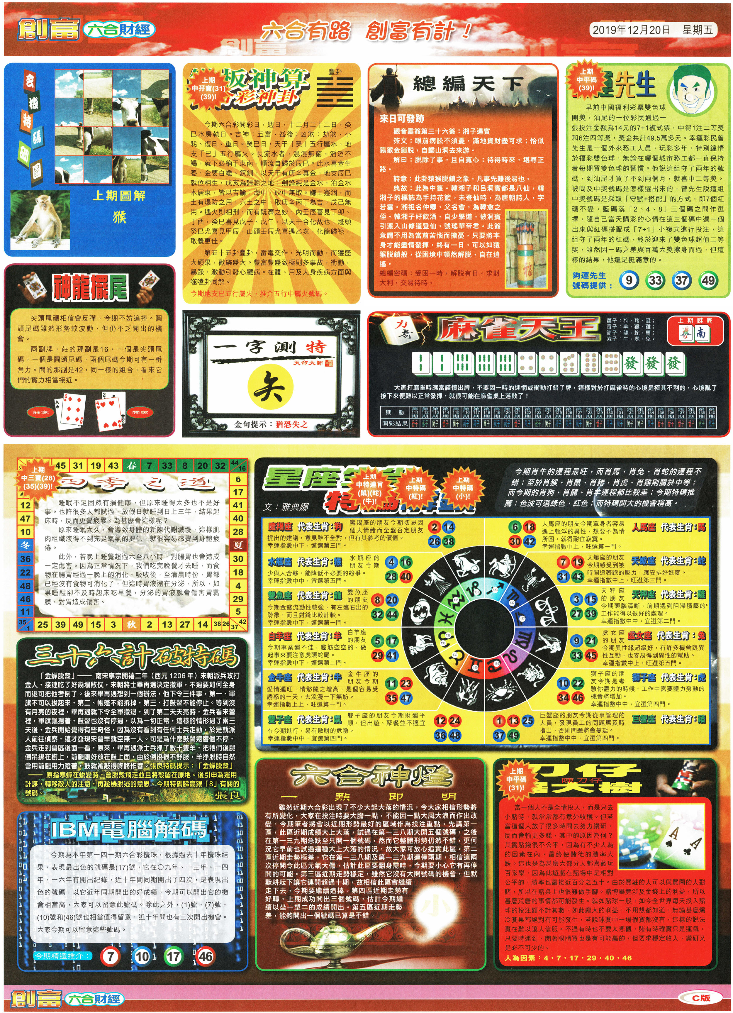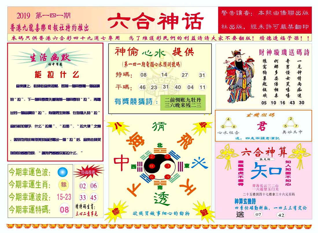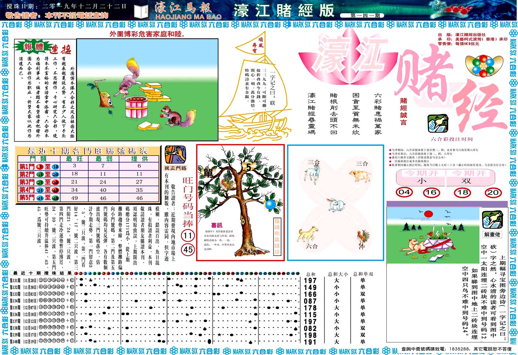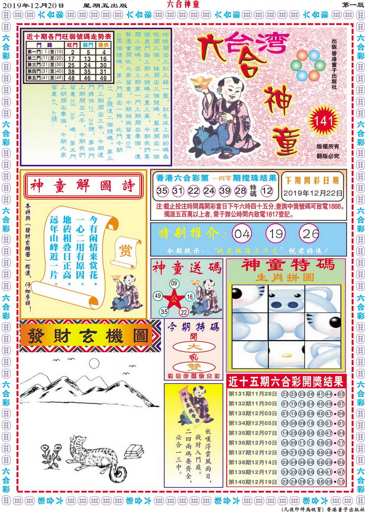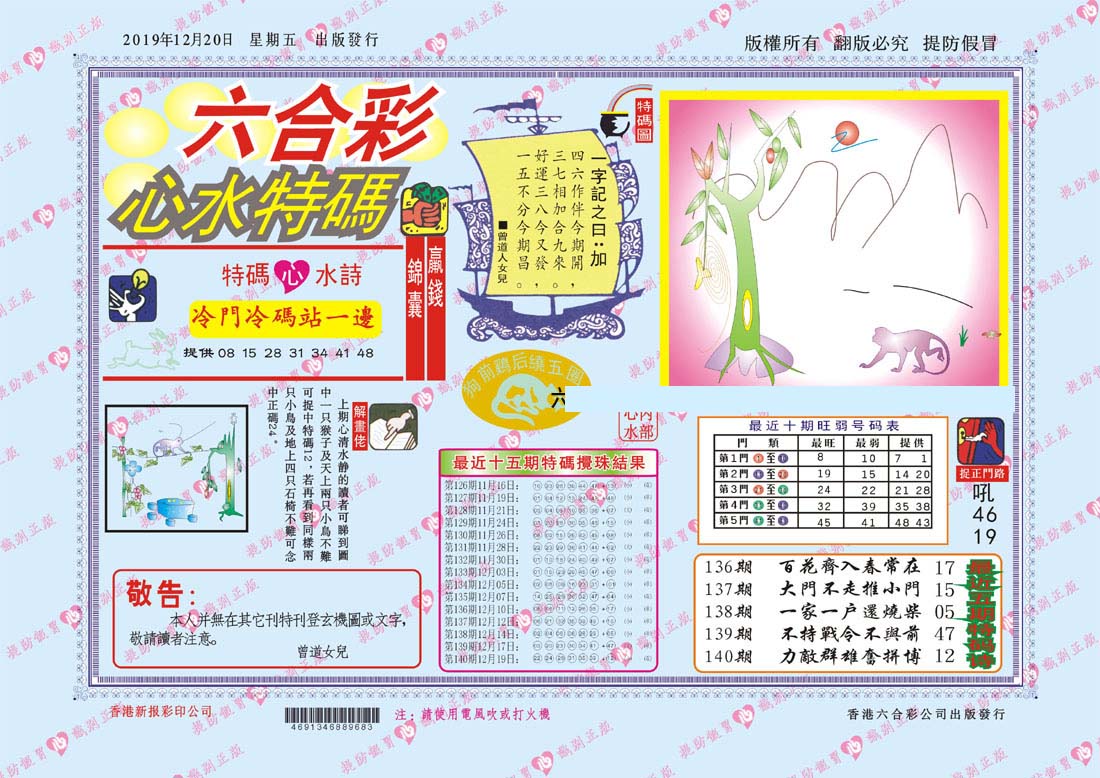 | 1765 | 黄大仙救世报 | 1766 | 香港马会专刊A | 1767 | 香港马会专刊B | 1768 | 赌王心经 |