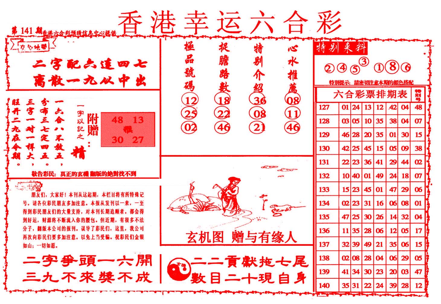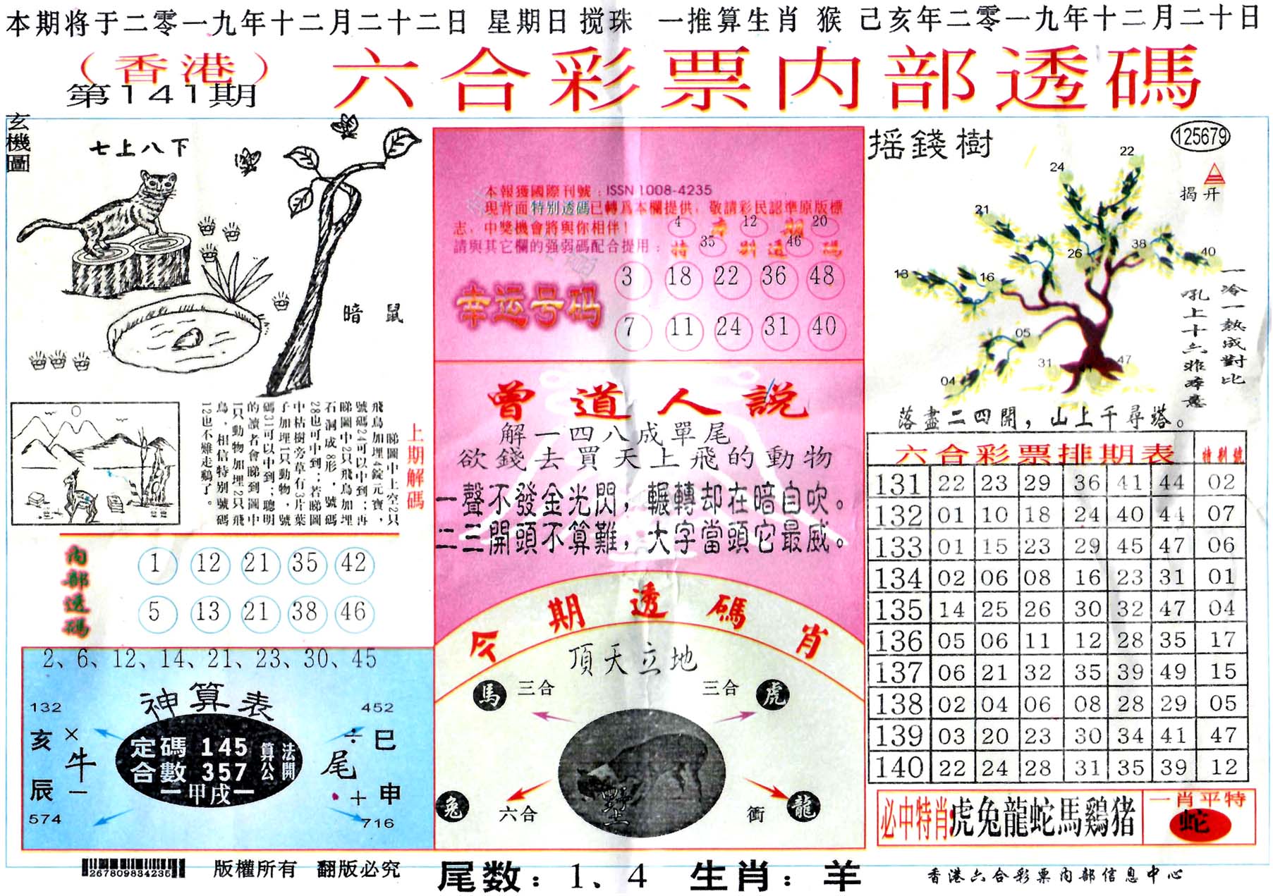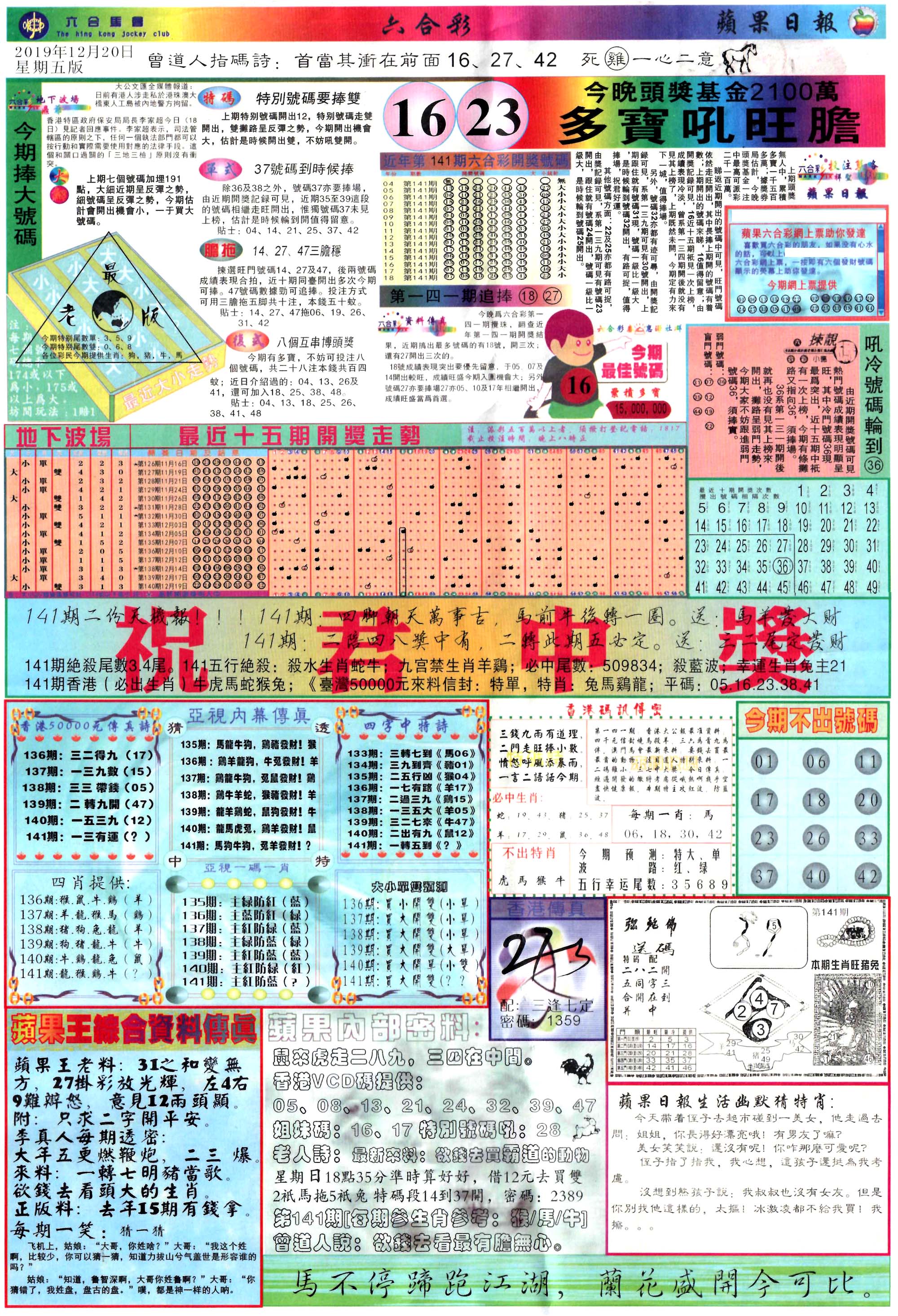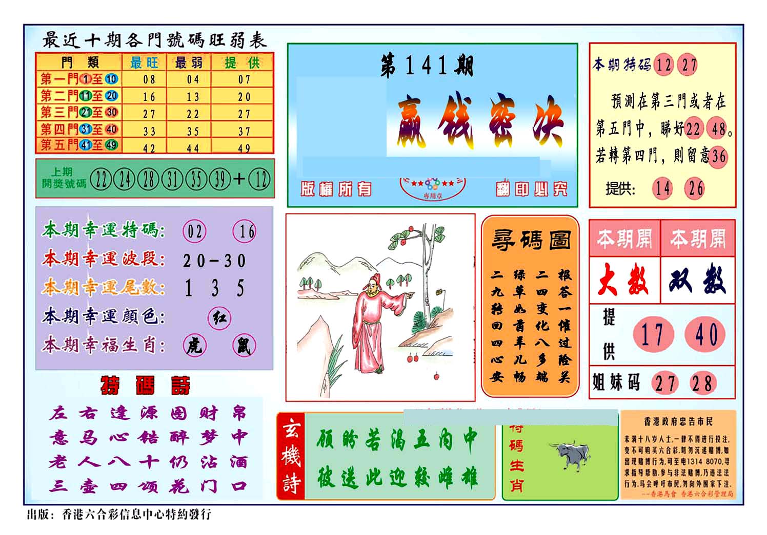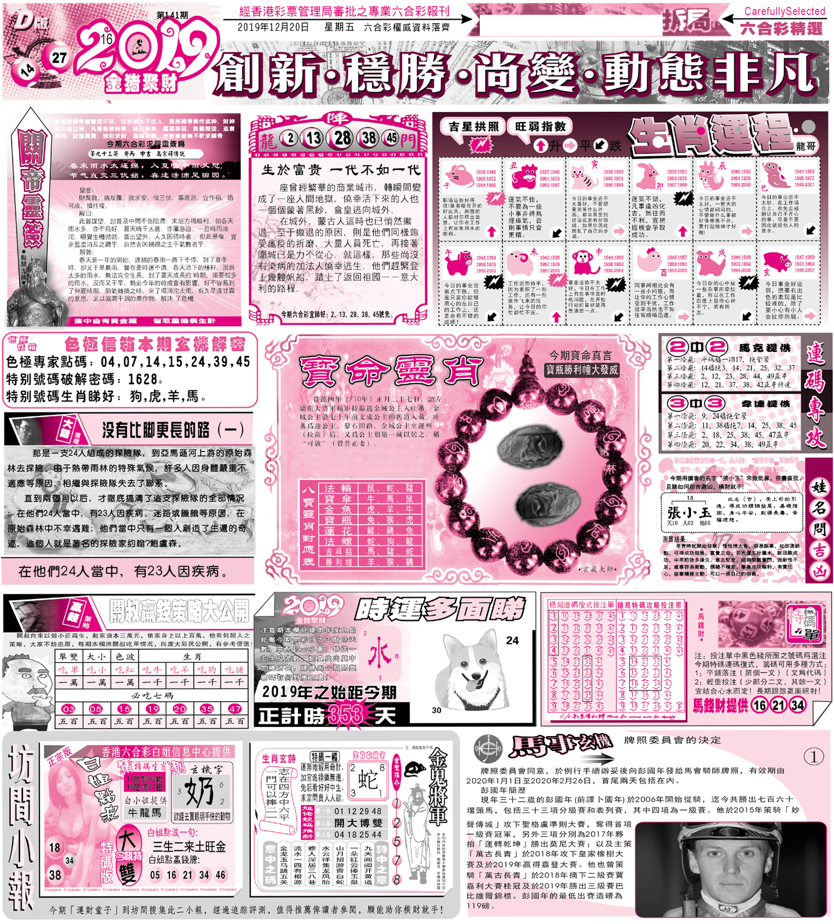 | 1765 | 黄大仙救世报 | 1766 | 香港马会专刊A | 1767 | 香港马会专刊B | 1768 | 赌王心经 |
