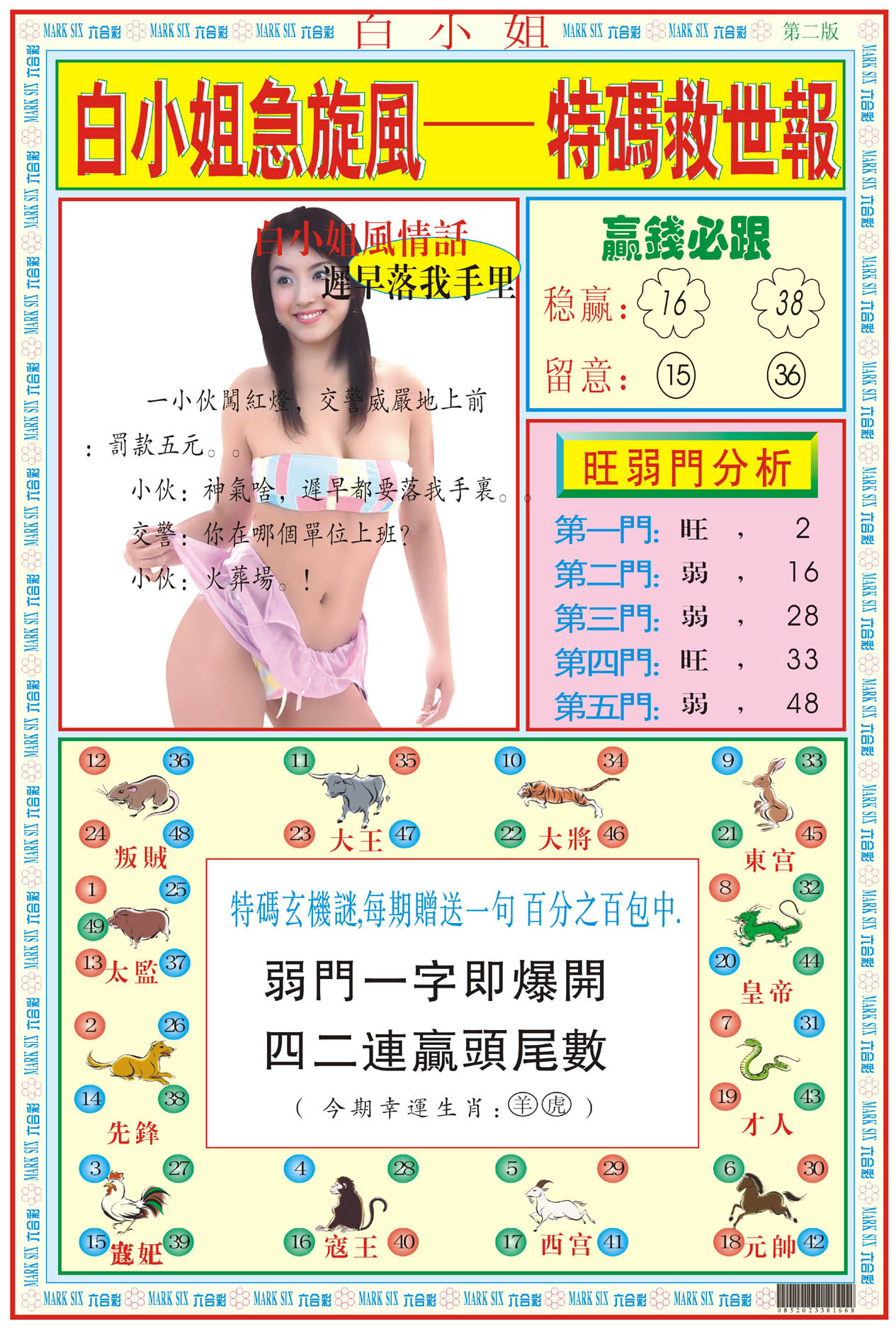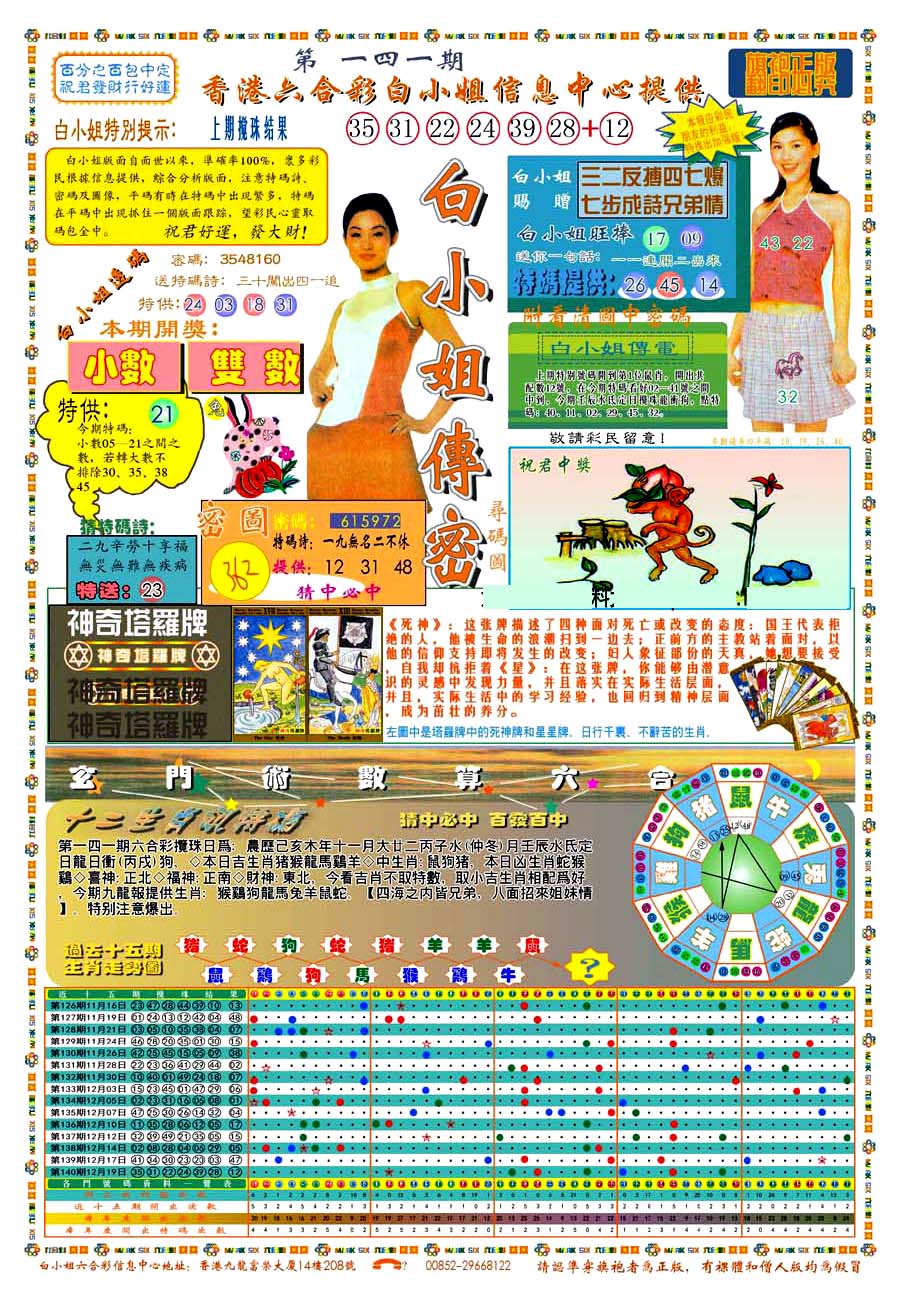 | 801 | 白小姐特刊 | 802 | 白小姐彩讯 | 803 | 白姐生肖a | 803a | 白姐生肖B | |||||||||||||||||||||||||||||||||||||||||||||||||||