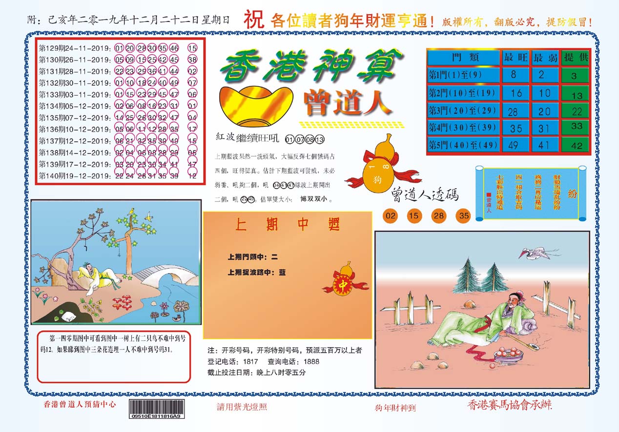 | 019 | 黄大仙救世报A | 020 | 黄大仙救世报B | 021 | 香港黄大仙报A | 022 | 香港黄大仙报B | |||||||||||||||||||||||||||||||||||||||||||||||||||