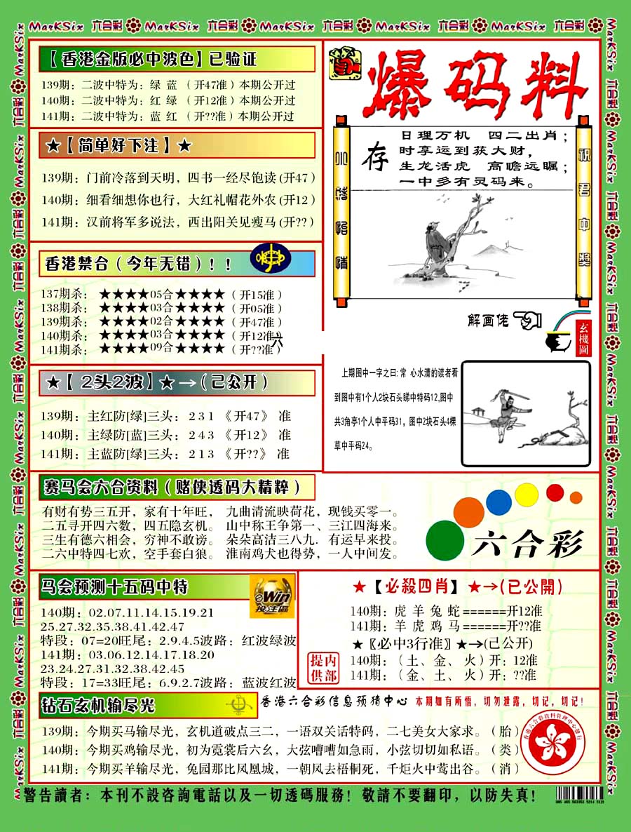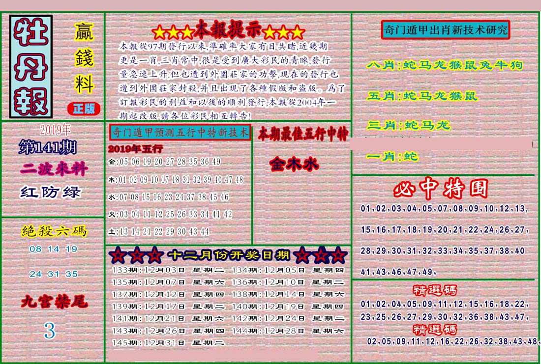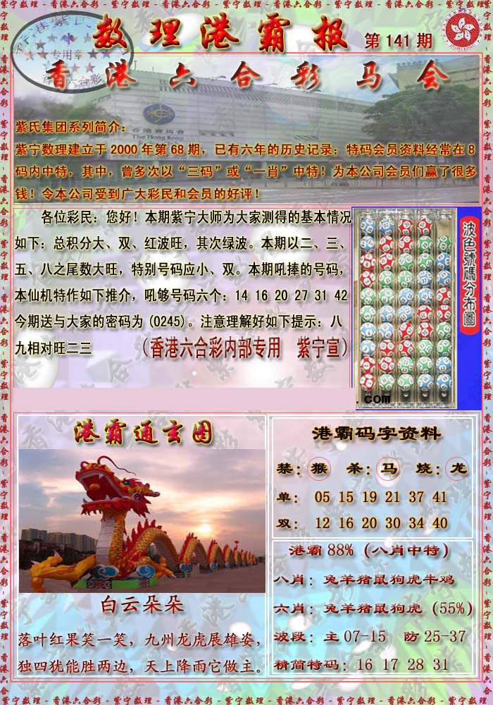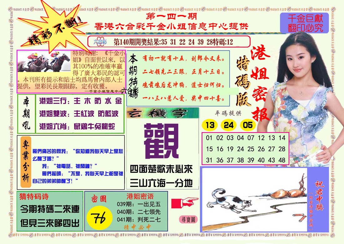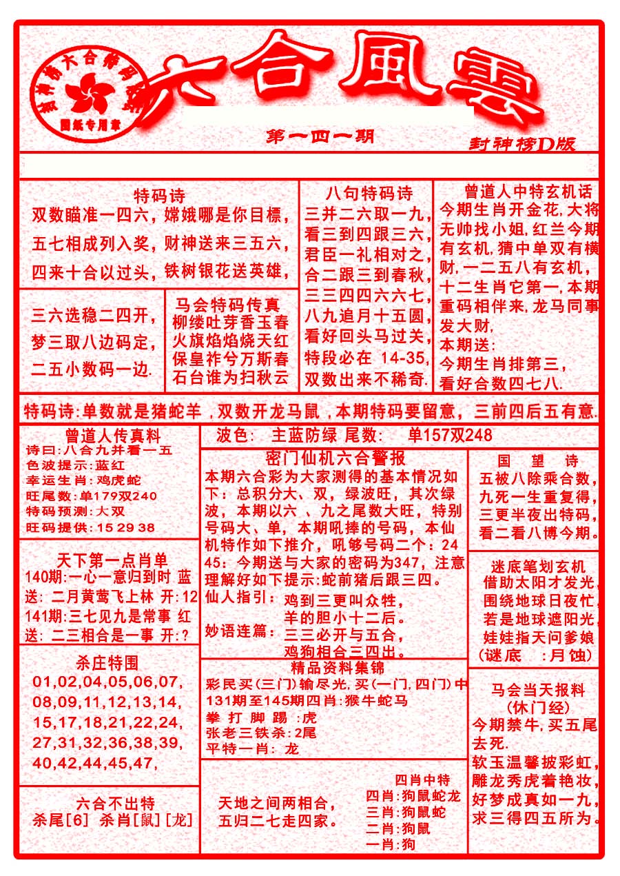 | 1336 | 统一玄机报 | 1337 | 正宗青龙五鬼报A | 1338 | 正宗青龙五鬼报B | 1339 | 美女六肖报 | |||||||||||||||||||||||||||||||||||||||||||||||||||