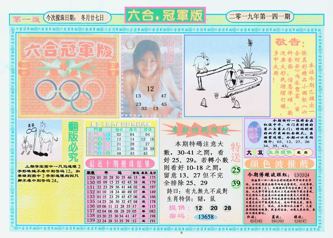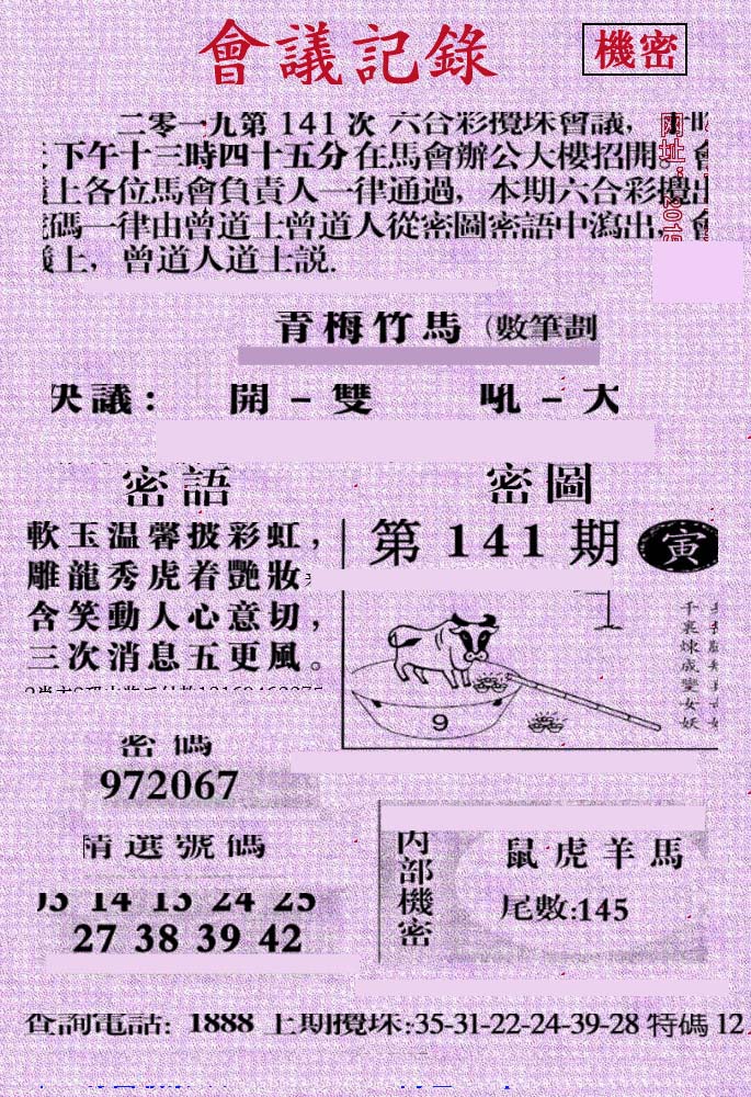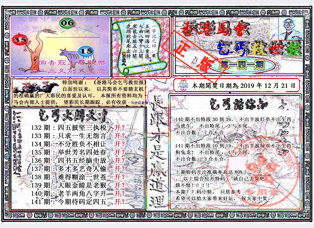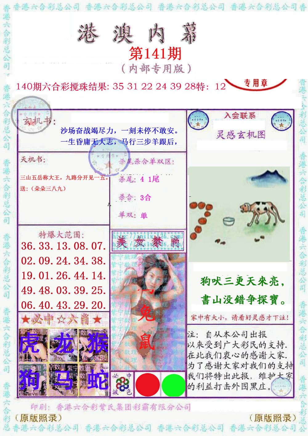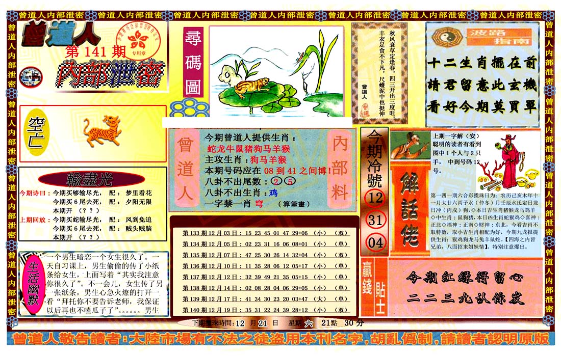 | 1336 | 统一玄机报 | 1337 | 正宗青龙五鬼报A | 1338 | 正宗青龙五鬼报B | 1339 | 美女六肖报 | |||||||||||||||||||||||||||||||||||||||||||||||||||