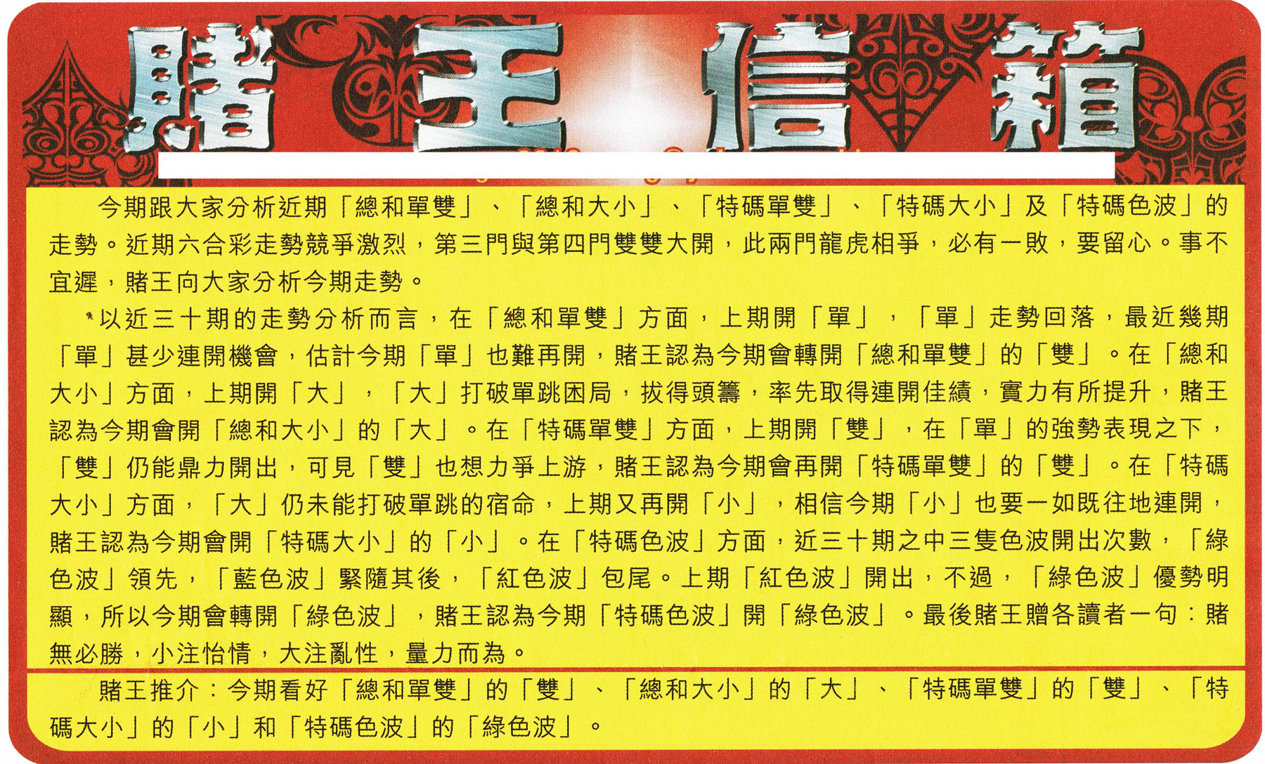 | 1356 | 赌神兔报(信封) | 1357 | 单双攻略(最老版) | 1358 | 藏宝图(最老版) | 1359 | 单双攻略(正版) | |||||||||||||||||||||||||||||||||||||||||||||||||||