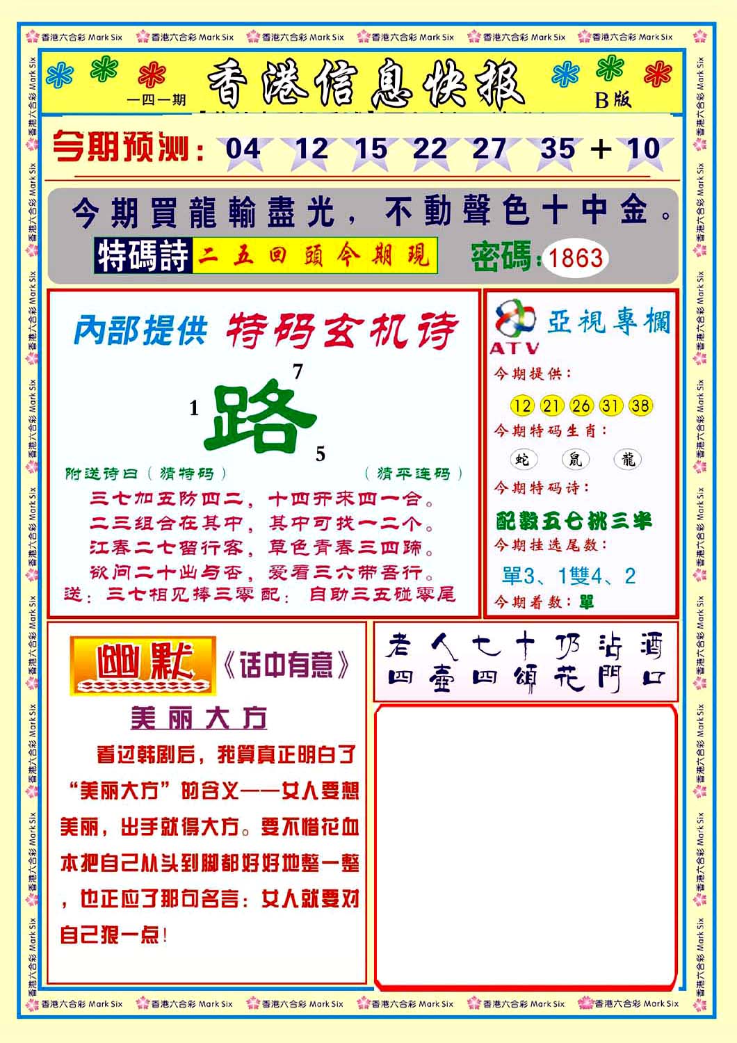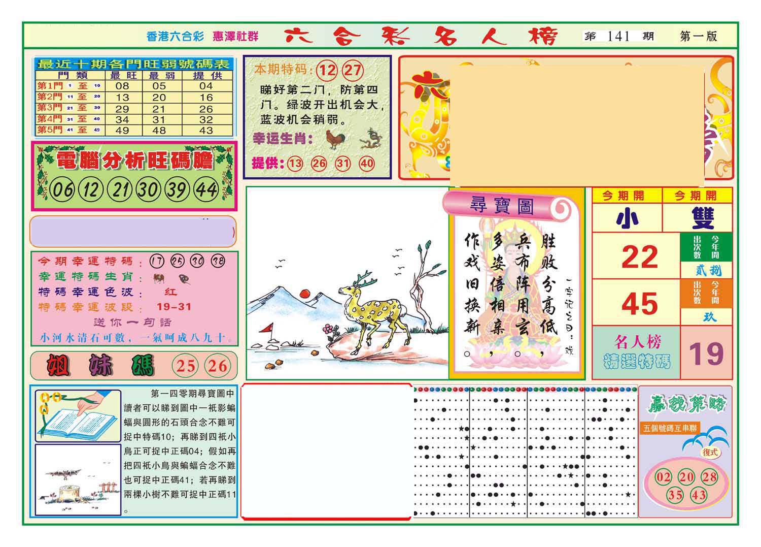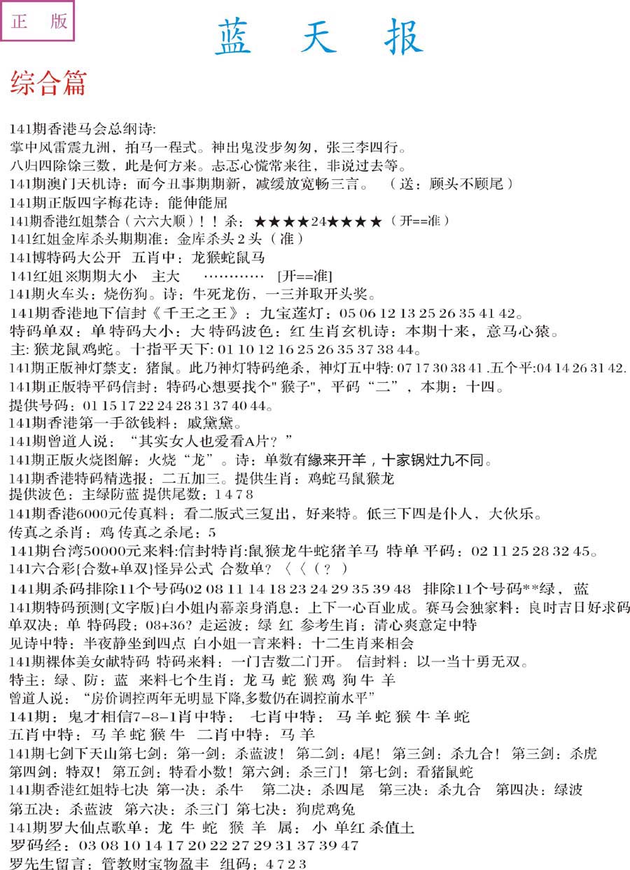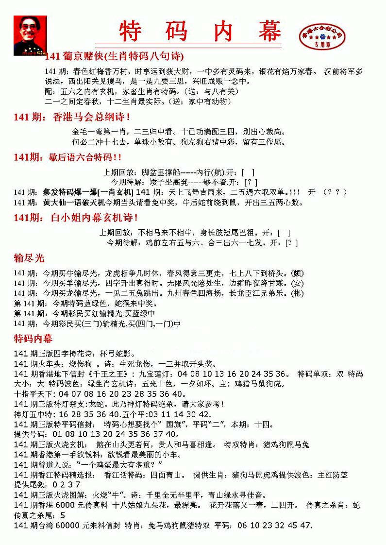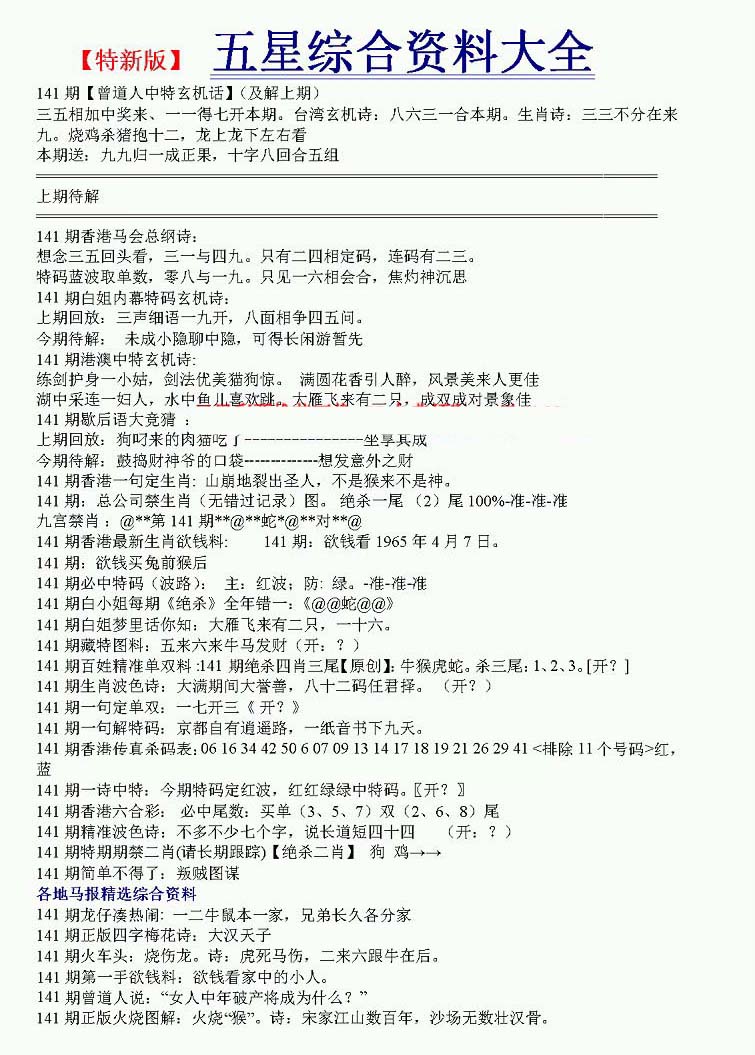 | 063 | 六合禅机A | 064 | 六合禅机B | 069 | 特 新 报A | 070 | 特 新 报B | |||||||||||||||||||||||||||||||||||||||||||||||||||