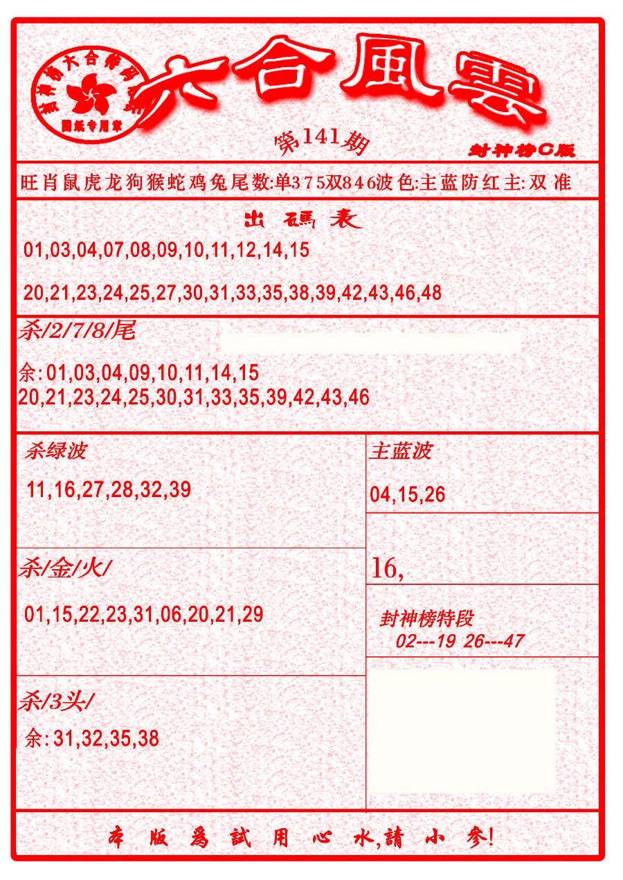 | 441 | 六合解霸A | 442 | 六合解霸B | 445 | 白姐特新刊A | 446 | 白姐特新刊B | |||||||||||||||||||||||||||||||||||||||||||||||||||