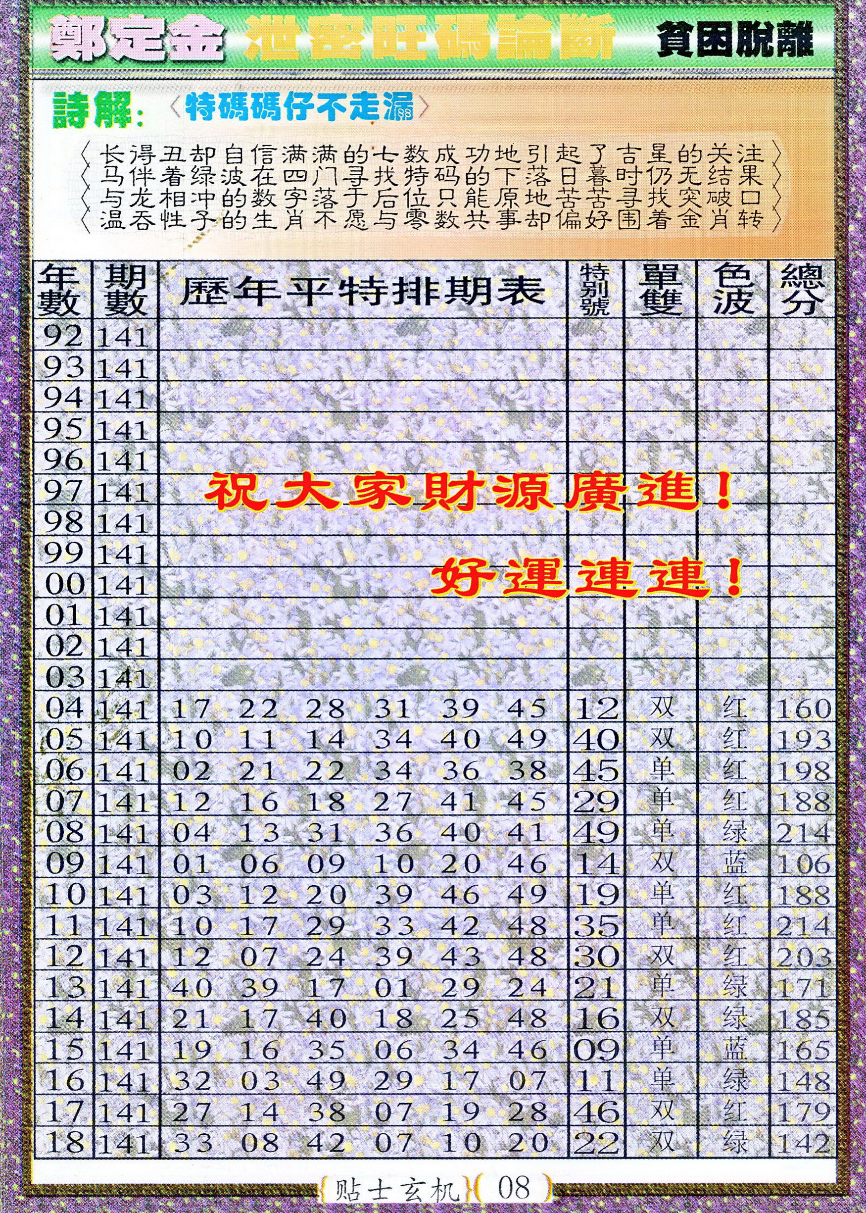 | 1708 | 内幕B | 1709 | 奇迹A | 1710 | 奇迹B | 1715 | 中特玄机料 | |||||||||||||||||||||||||||||||||||||||||||||||||||